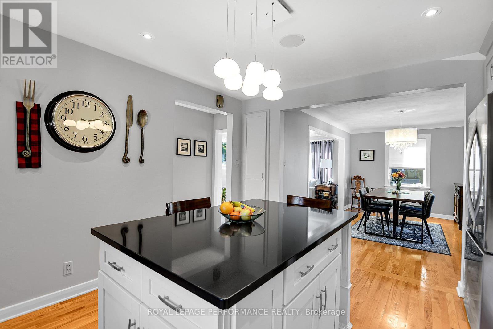 Impeccably maintained and fully renovated, this all-brick two-storey home sits on a beautifully landscaped 50 ft x 169 ft lot in the heart of Alta Vista. Pride of ownership is evident throughout. A tiled foyer opens to a bright and spacious main floor, featuring gleaming hardwood floors and abundant natural light. The large formal living and dining rooms offer elegant spaces for both everyday living and entertaining. The beautifully updated kitchen showcases Cambria quartz countertops, a complementary tile backsplash, white shaker cabinetry, stainless steel appliances, and a central island with breakfast bar seating-perfect for casual dining and conversation. Upstairs, you'll find three generously sized bedrooms, each with rich hardwood floors, and a tastefully renovated 4-piece main bathroom. The lower level is beautifully finished, featuring a welcoming family room with a gas fireplace, a versatile den or flex space, and a large utility area with laundry, cold storage, and a workshop. Step outside to a truly breathtaking backyard retreat-an outdoor haven complete with a raised deck, expansive interlock patio, and lush, meticulously maintained gardens. The yard is fully enclosed by a mix of fencing and mature cedar hedges, offering exceptional privacy and tranquility. This is an outstanding opportunity to own a move-in-ready home in one of Ottawa's most desirable neighbourhoods, close to parks, top-rated schools, and hospitals.