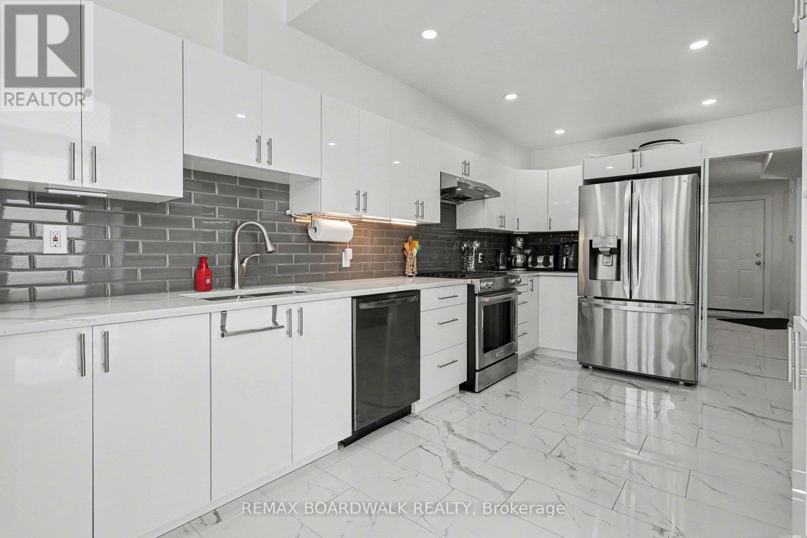 METICULOS! Welcome home to this bright and inviting 3-bedroom, 3-bath freehold townhome, thoughtfully built by Holitzner. New flooring throughout the house with beautiful ceramic tiles from the main entrance all the way to the kitchen and in all 3 bedrooms in the house. There is hardwood flooring in the living and dining room, and the stairs leading to the second floor. Beautiful laminate flooring as well in all 3 bedrooms on the upper level and the hallway as well as in the basement. The functional living area flows seamlessly into the dining space-perfect for everyday living and entertaining. The newly updated kitchen features a beautiful backsplash with white cabinets, quartz counter, double sink, and a generous eating area, and picturesque views of the large deck and fully fenced backyard. New spotlights in the hallway, kitchen, and the basement. The second floor has hardwood as well and continues on the stairs, leading into an impressively spacious primary bedroom complete with a versatile sitting area-ideal for a at home office or a reading nook and convenient cheater access to the main bath. The fully finished basement offers a large recreation room, and a 3-piece bathroom, and ample storage, providing flexible space for the whole family to enjoy. All windows in the house have been replaced by new 3 layers windows in March 2025. New tankless water heater installed in early 2023. An extended driveway that fits 4 cars plus a garage in the summer of 2024.