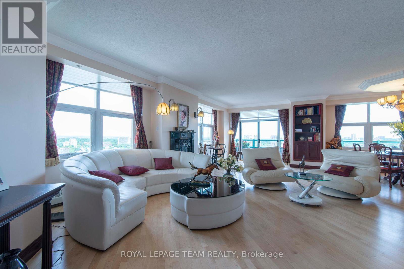 Your next move: inspired riverbank living in a top-of-the-world penthouse residence, where peace, refinement, and sophistication take priority the moment you step inside. From the first glance, you're welcomed by breathtaking 270+degree views that capture the best of Ottawa's beauty and Parliament Hills iconic silhouette, the dynamic city skyline, the shimmering Ottawa River, and the vibrant Gatineau Hills beyond. Whether you're entertaining guests, enjoying quiet mornings, or relaxing at days end, this ever-changing backdrop ensures you'll never tire of the scenery. Inside, a thoughtfully designed open-concept living, dining, and kitchen area sets the stage for stylish living. Maple hardwood flooring, rich cabinetry, high ceilings, recessed lighting, and custom built-ins combine to create an elegant yet comfortable space. A long hall designed as the perfect place to showcase your cherished art pieces, bringing a sense of gallery-like sophistication to daily life. Two spacious bedrooms offer privacy and autonomy, each with its own ensuite bath and generous closet space to ensure complete comfort. The primary suite enjoys its own private terrace, an exclusive retreat with unmatched views. Additional conveniences include a den or home office, in-unit laundry, study, and easy hallway access to all spaces. An expansive balcony invites you to unwind or host gatherings against the dramatic backdrop of the Gatineau Hills, with summer fireworks providing spectacular entertainment. Outdoor enthusiasts will appreciate proximity to Macdonald Gardens Park, riverfront trails, and bike paths. Business and cultural centres are just minutes away, catering to a vibrant urban lifestyle. With two parking spaces, visitor parking, and ample storage, comings and goings are effortless. Seize this rare opportunity for penthouse living at its finest where breathtaking views, inspired design, and unparalleled convenience await.
