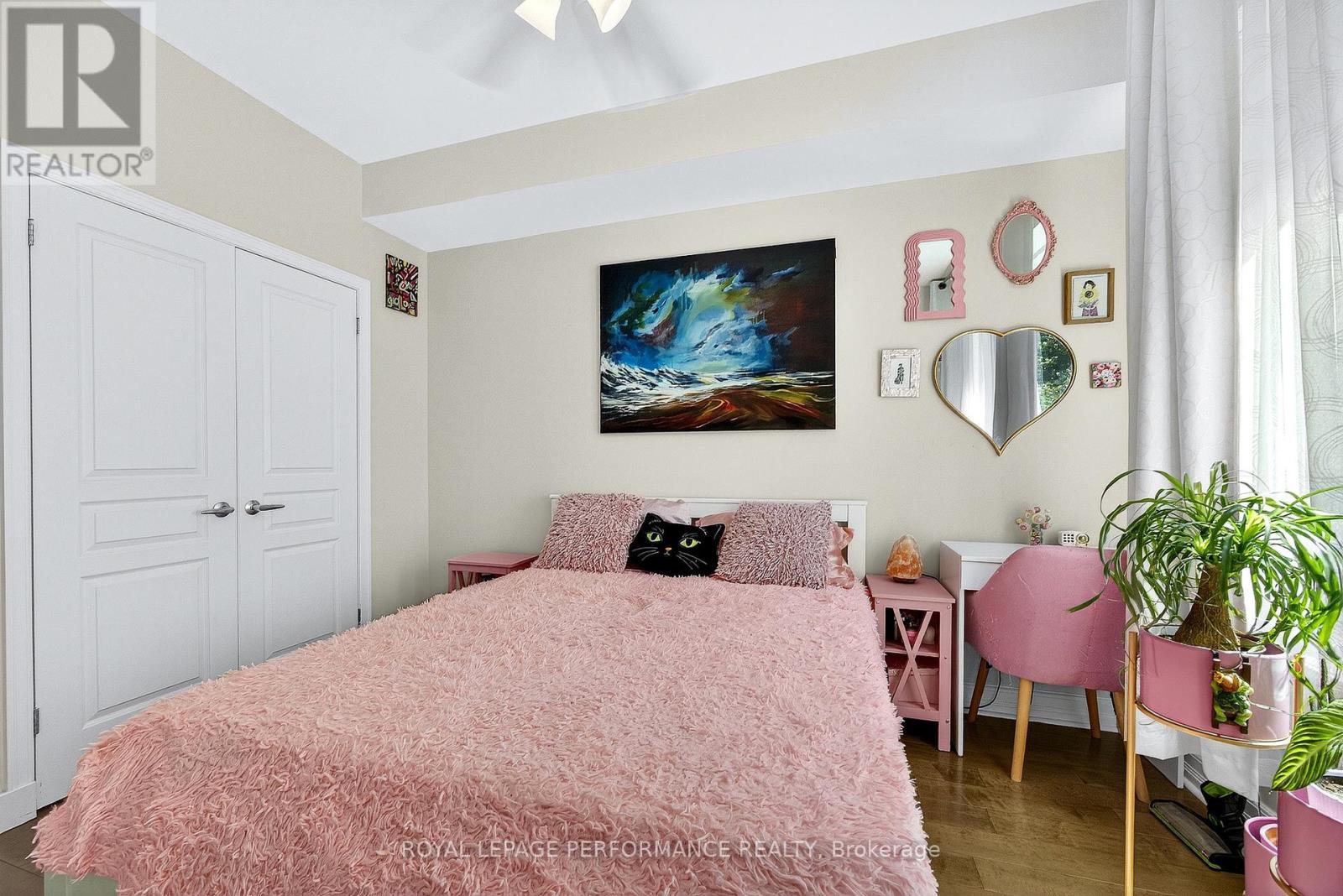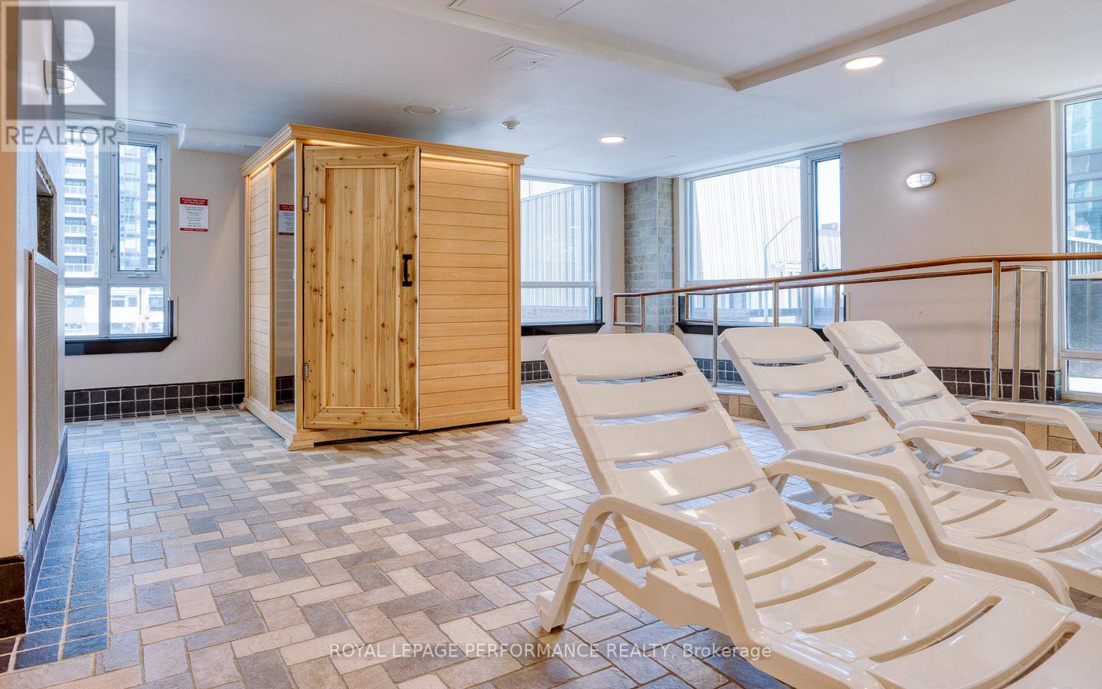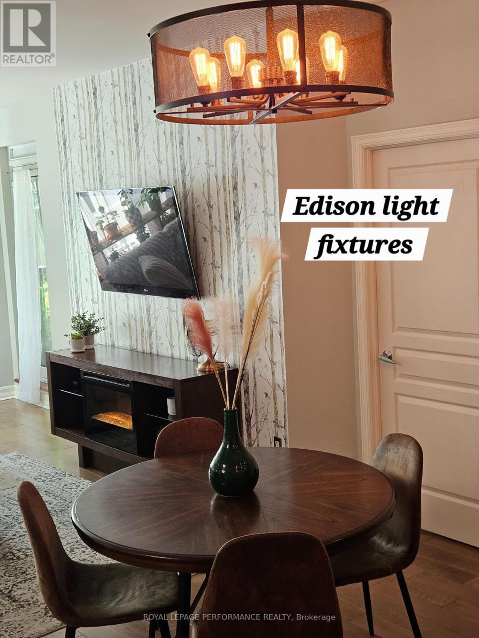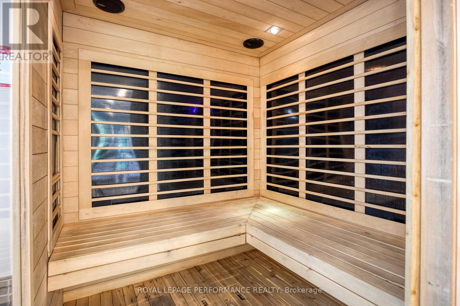Rarely offered, this modern and elegant 2 BEDRM condo also has a large DEN, 2 FULL bathrooms, 2 INDR underground parking spots & a storage locker. Approx. 1135 sq ft as per Builder's plan. The owner has lovingly added modern upgrades to embrace natural elements into the space; brick facade added to the granite breakfast bar, wood panels in the den, Edison light fixtures and metal and wooden shelving etc. Hardwood flooring throughout and open concept layout. Kitchen features granite countertops, convenient double sink, stainless steel appliances and hidden pantry. Full sized ,newer LG washer and dryer that offers durability while being quiet. Primary Bedrm has a wall of windows with views of the terrace, 2 sets of closet space and a 4 pc ensuite bathrm with a separate shower area. Have a roommate or a guest? 2nd bedroom also has a wall of windows with views of the terrace, & great closet space. Gym and sauna /lounge area on the 2nd floor. Parking P1-7, P1-3. Storage S4-20. Walking distance to grocery stores, LCBO, LRT etc. This building allows for pets - with some restrictions on size. Security - on site.This prime location is perfect for those who love the energy of being downtown. This unit has a walking score of= 99. Transit score =91, Bike Score =97.