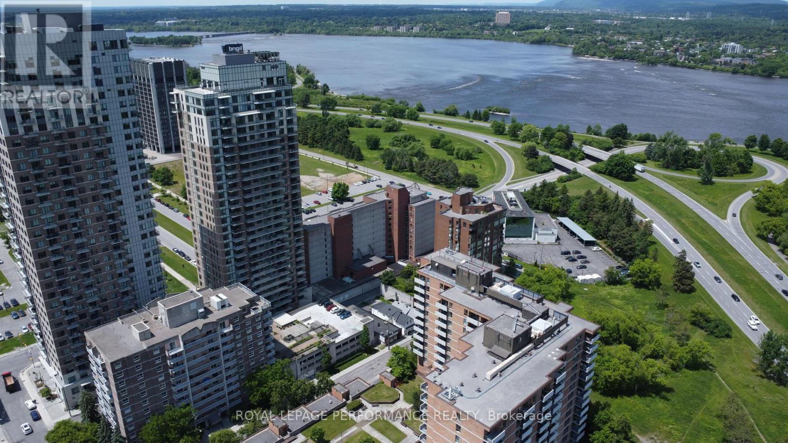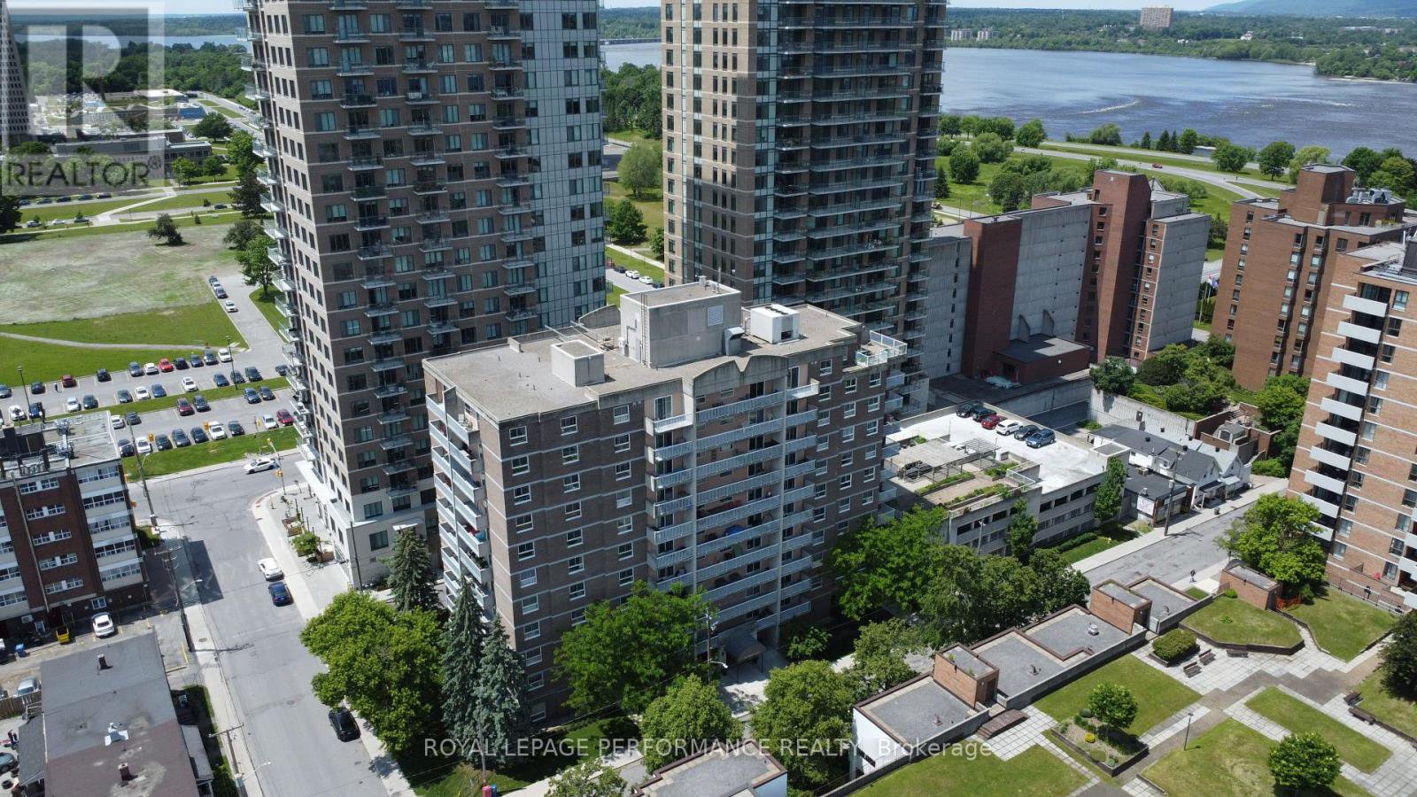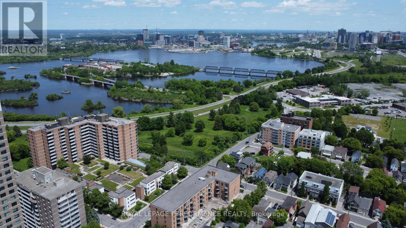 Located in one the most trendy and convenient neighbourhoods in the city, this spacious and affordable 2 bedroom condo is great value. This corner unit has North and East balcony views toward the Ottawa river and Gatineau Hills, and also overlooks the condo rooftop patio. However you want to get around, this condo is close to it all. By bike, you have easy access to the NCC trails along the Ottawa River and Kichi Zibi Mikan Parkway, you are an easy 10 minute walk to the LRT at Tunny's Pasture, and you're adjacent to onramps to the Parkway along the river, with easy access east, west, or across the Ottawa River at Island Park. You are a short walk to the Parkdale Market or the shops along Wellington Street. This well-maintained building boasts a gym (ground level), rooftop patio with BBQ (accessible from the 4th level), underground parking (spot 124 on the lower level accessed from the lobby), a bike storage room (ground level toward the parking garage), and additional storage lockers for rent, though you have your own storage room IN your unit with this model. Shared laundry is located just off the lobby. Inside the unit, both bedrooms are large and have eastern views of trees and a green roof beyond. Updates include fresh paint throughout (except kitchen) and some light fixtures in 2025. Enjoy a carpet free home, with laminate and tile foors throughout. Building IS PET FRIENDLY (MLS system has a glitch that does not allow that option to be selected).