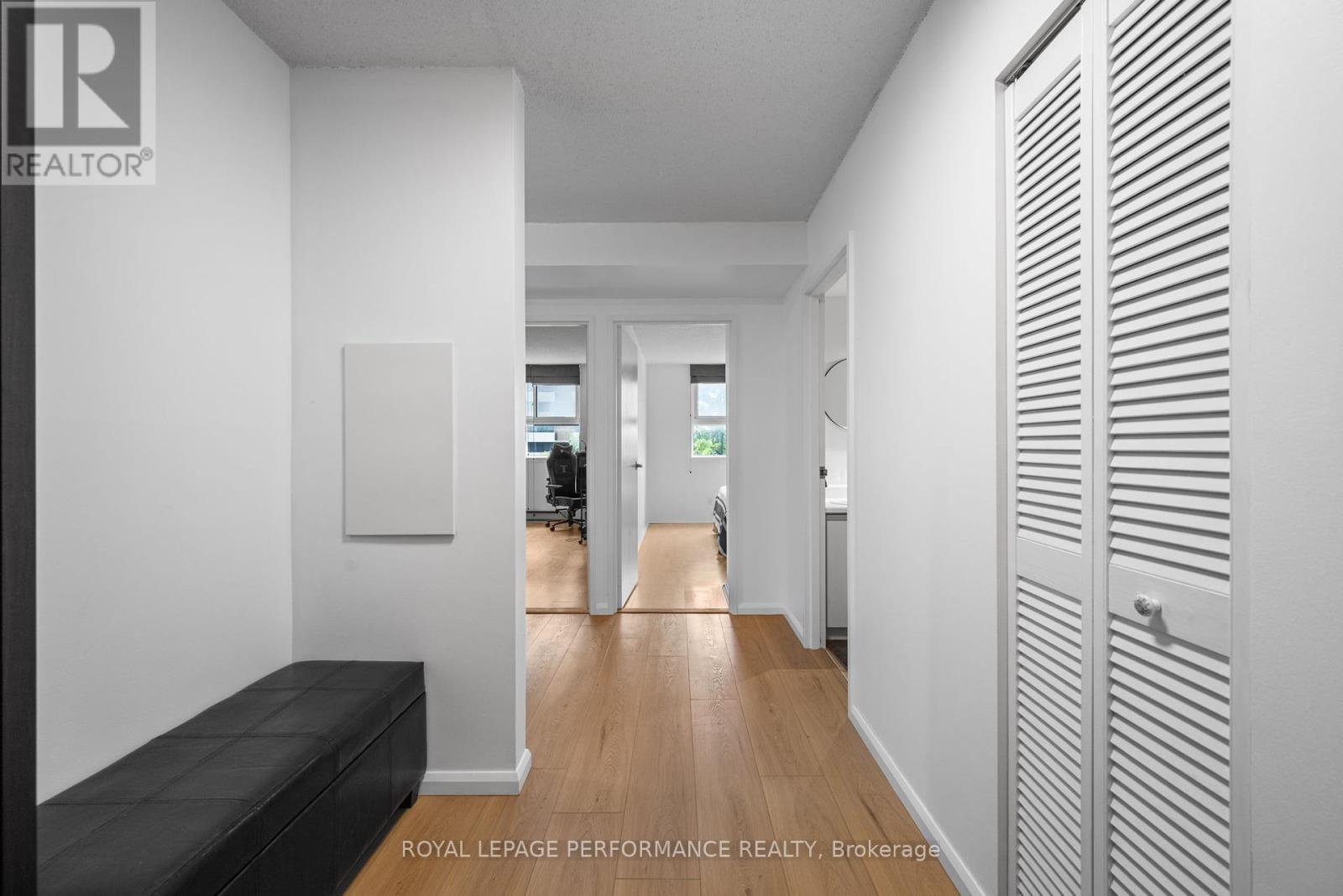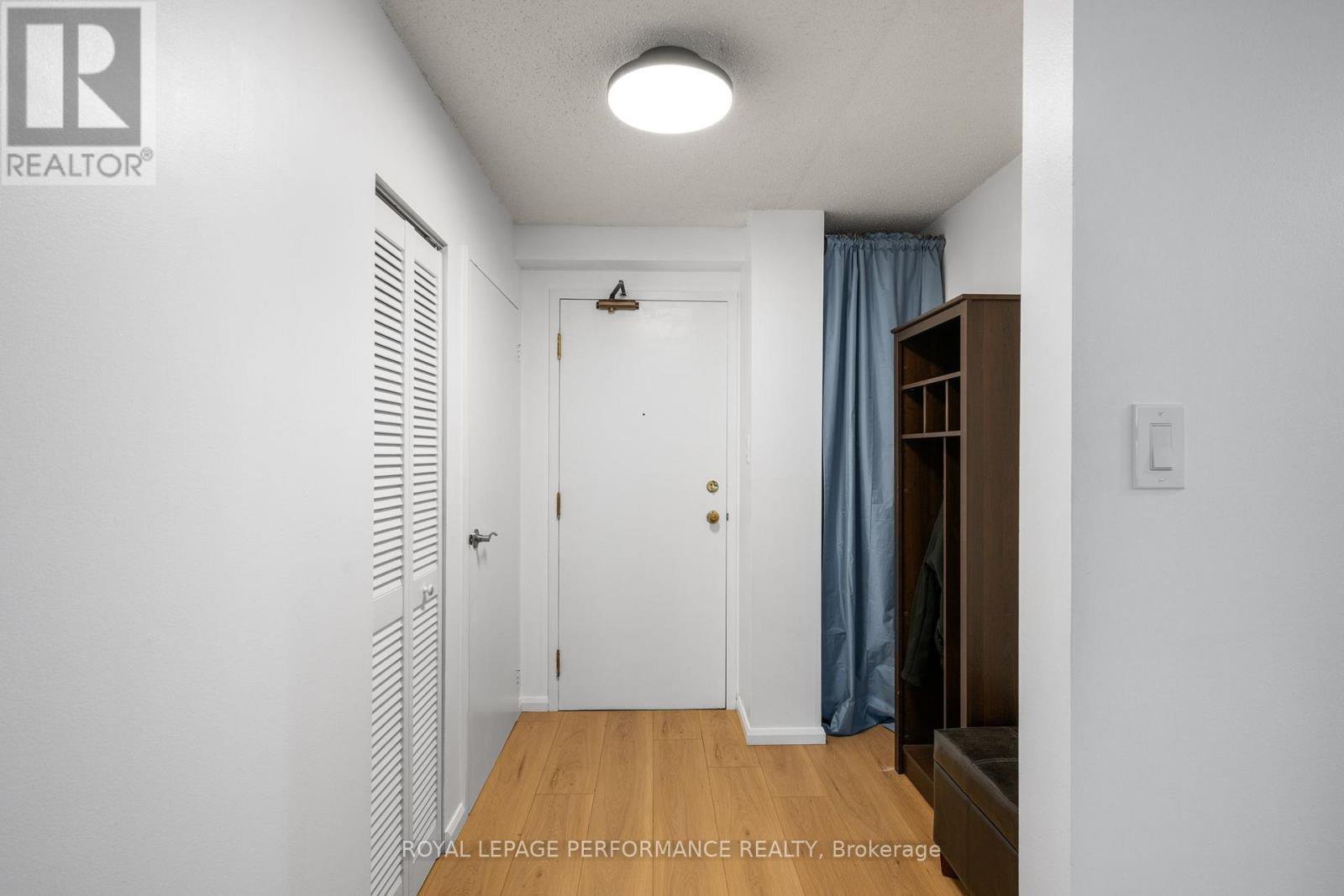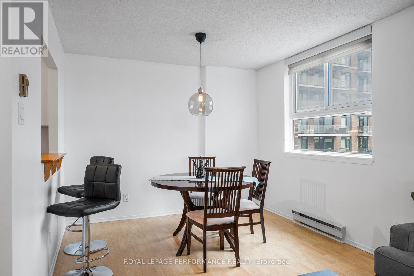 Located in one the most trendy and convenient neighbourhoods in the city, this spacious and affordable 2 bedroom condo is great value. This corner unit has North and East balcony views toward the Ottawa river and Gatineau Hills, and also overlooks the condo rooftop patio. However you want to get around, this condo is close to it all. By bike, you have easy access to the NCC trails along the Ottawa River and Kichi Zibi Mikan Parkway, you are an easy 10 minute walk to the LRT at Tunny's Pasture, and you're adjacent to onramps to the Parkway along the river, with easy access east, west, or across the Ottawa River at Island Park. You are a short walk to the Parkdale Market or the shops along Wellington Street. This well-maintained building boasts a gym (ground level), rooftop patio with BBQ (accessible from the 4th level), underground parking (spot 124 on the lower level accessed from the lobby), a bike storage room (ground level toward the parking garage), and additional storage lockers for rent, though you have your own storage room IN your unit with this model. Shared laundry is located just off the lobby. Inside the unit, both bedrooms are large and have eastern views of trees and a green roof beyond. Updates include fresh paint throughout (except kitchen) and some light fixtures in 2025. Enjoy a carpet free home, with laminate and tile foors throughout. Building IS PET FRIENDLY (MLS system has a glitch that does not allow that option to be selected).