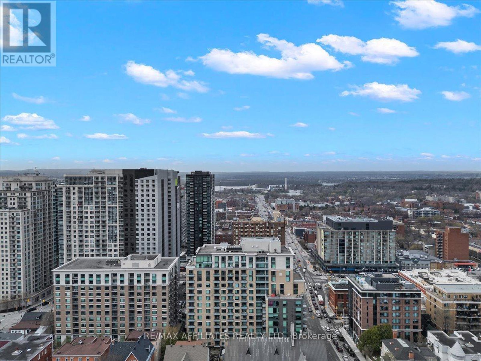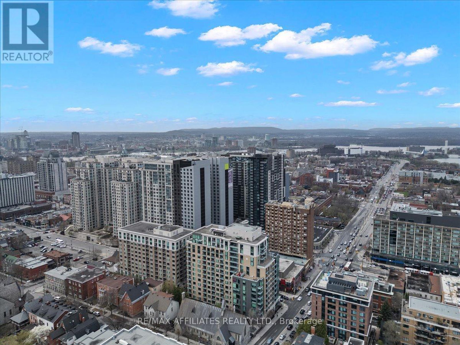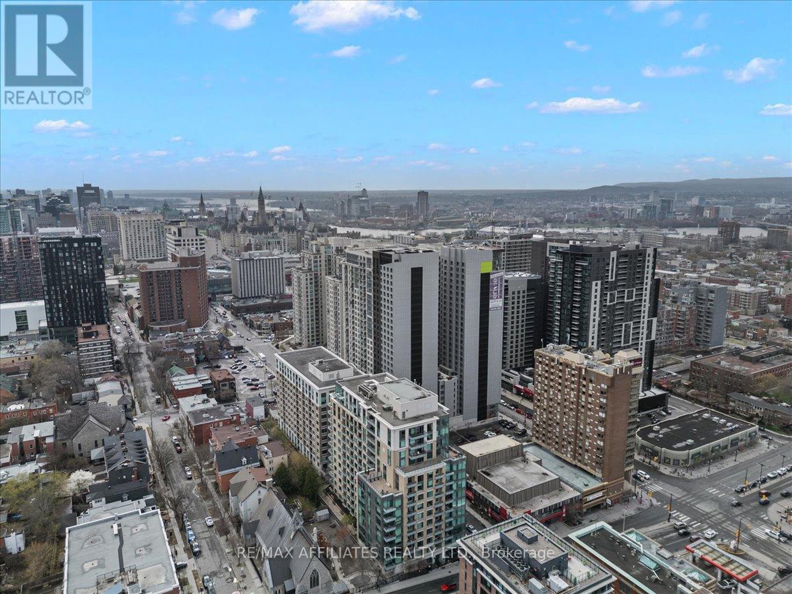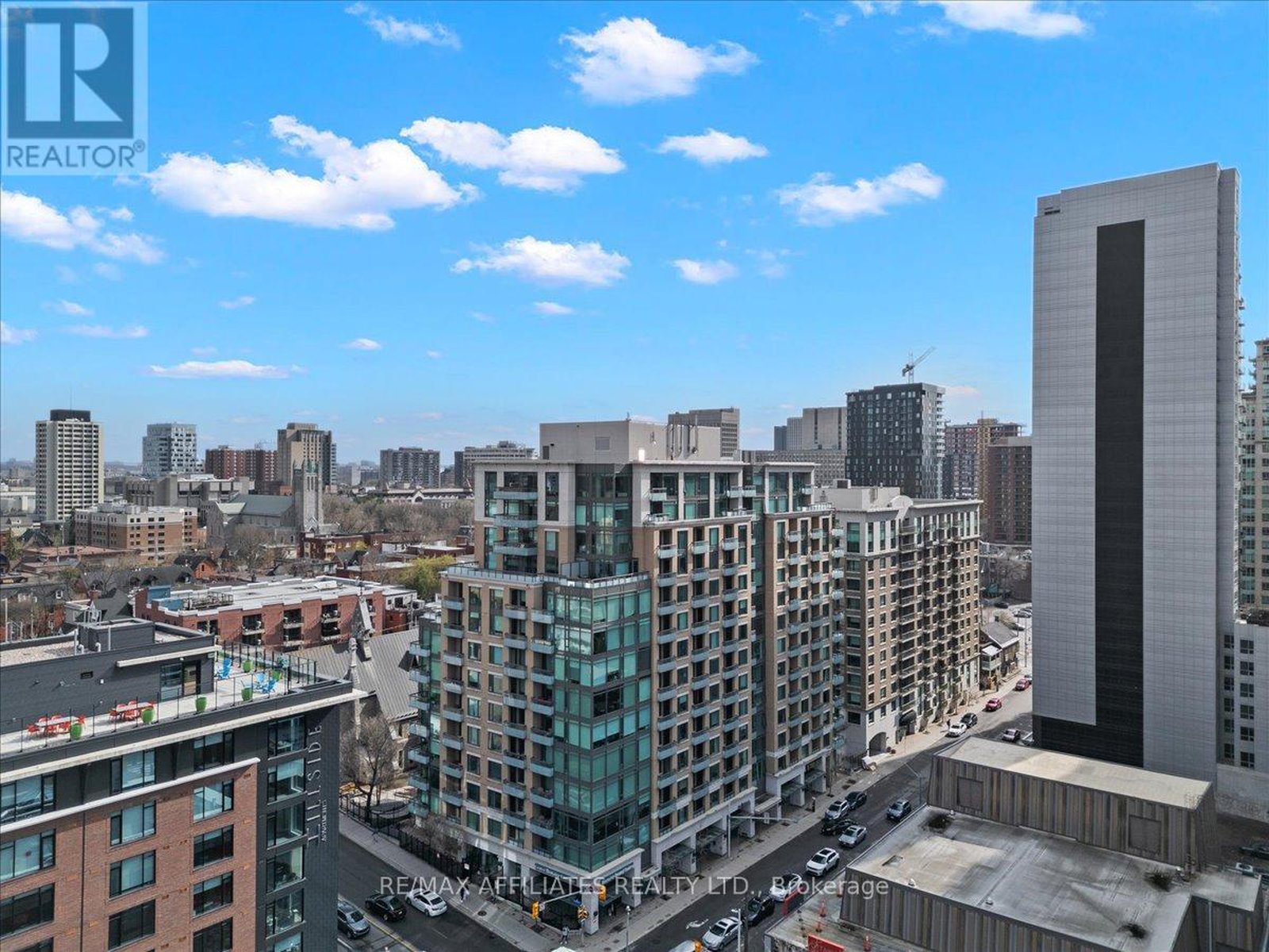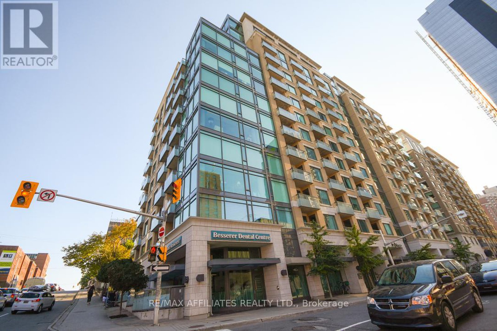 Bright and modern, the Largest 1-bedroom + den, 1-bathroom condo. Oversized Underground Parking with private bike rack. Located in the heart of downtown Ottawa, steps from the University of Ottawa and the Byward Market. The open-concept living space is highlighted by a stylish kitchen featuring a centre island with a breakfast bar, granite countertops, stainless steel appliances, and pot lights. The freshly painted interior offers a warm and inviting atmosphere, complemented by custom blinds and drapes. The spacious primary bedroom includes swing doors to the closet, while the den provides a versatile space perfect for a home office or additional storage. The full bathroom features a deep tub/shower combo with an under-mount sink and granite counter. Enjoy the convenience of in-unit laundry, underground parking, and a storage locker. Step outside onto the sun-filled balcony, perfect for savouring morning coffee or unwinding in the evening. With easy access to shopping, dining, entertainment, and public transportation, this condo is ideal for professionals, students, or investors. Book your private showing today! Parking P3-34