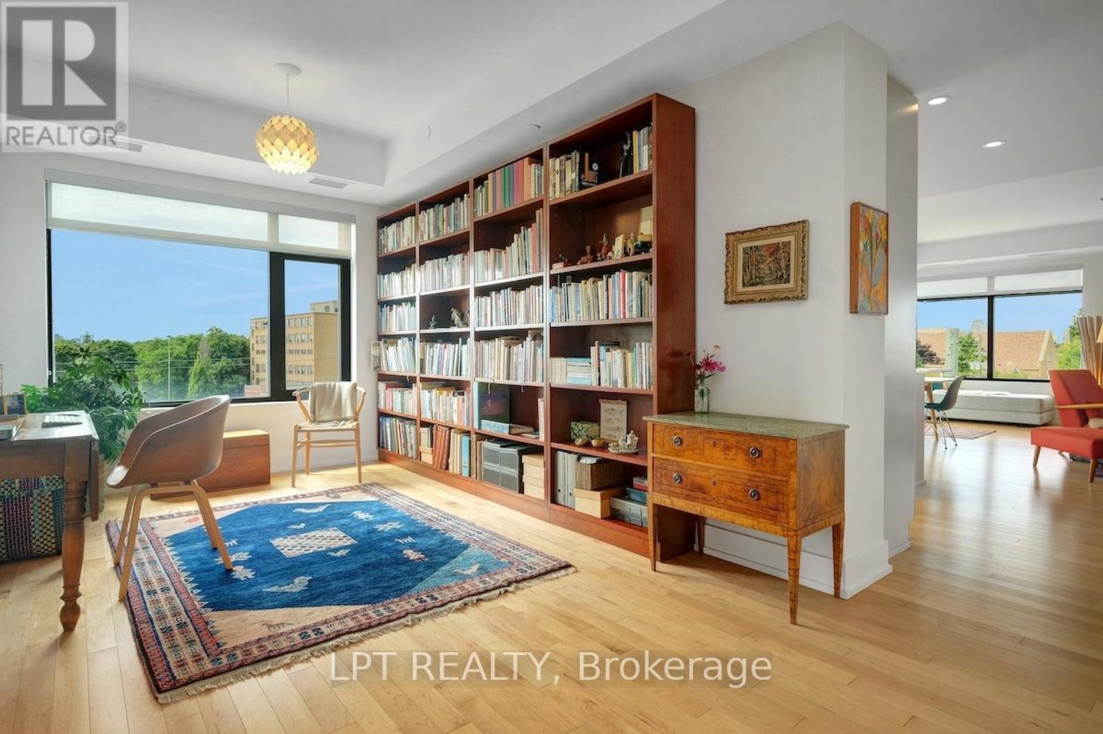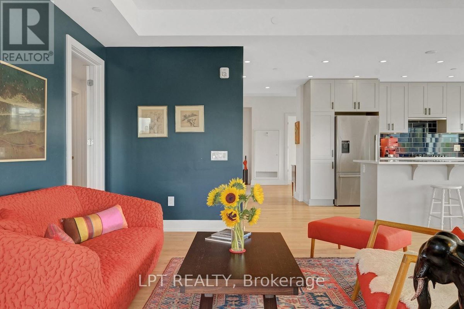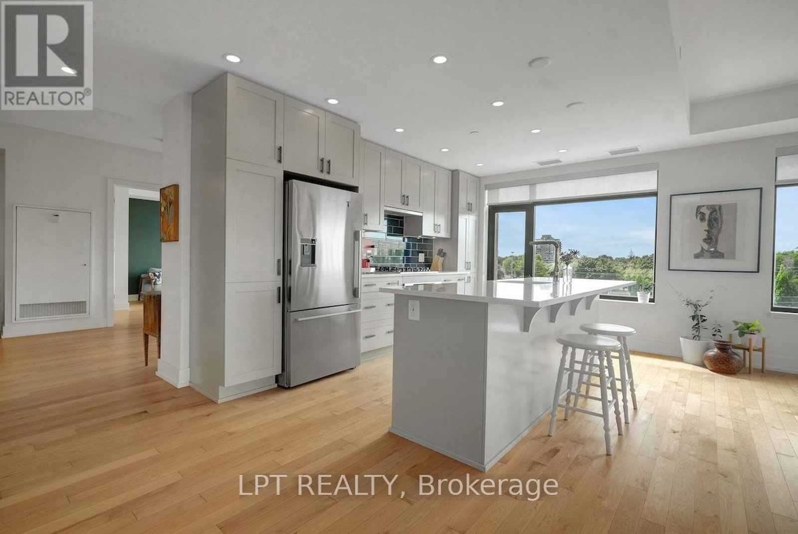 Experience "The Corners on Main" with 1,552 sq. ft. of beautifully finished modern urban living. This spacious 2-bedroom plus den, 2.5-bath condo offers an open-concept layout with hardwood floors, Montauk quartz countertops, and a designer kitchen featuring premium stainless-steel appliances, LED under-cabinet lighting, and soft-close cabinetry. The primary bedroom includes a walk-in closet and a luxurious 3-piece ensuite. Large windows throughout the unit provide an abundance of natural light. Positioned as a desirable northwest corner unit, the unobstructed views provide warm afternoon sun and breathtaking sunsets. Unique perks include a balcony with gas line hook up, an EV charger, private storage, and a convenient drive-through parking space with no cars on either side. Residents enjoy premium amenities, including a central garden and rooftop terrace, pet wash station, a fully equipped fitness room, yoga room, party/meeting space, two guest suites, bike storage, and visitor parking. All this, just steps from the Rideau Canal, Main Street shops and restaurants, Lansdowne Park, the Glebe, and a fabulous Saturday Farmer's Market right next door. This condo offers the perfect balance of comfort, convenience, and community.
