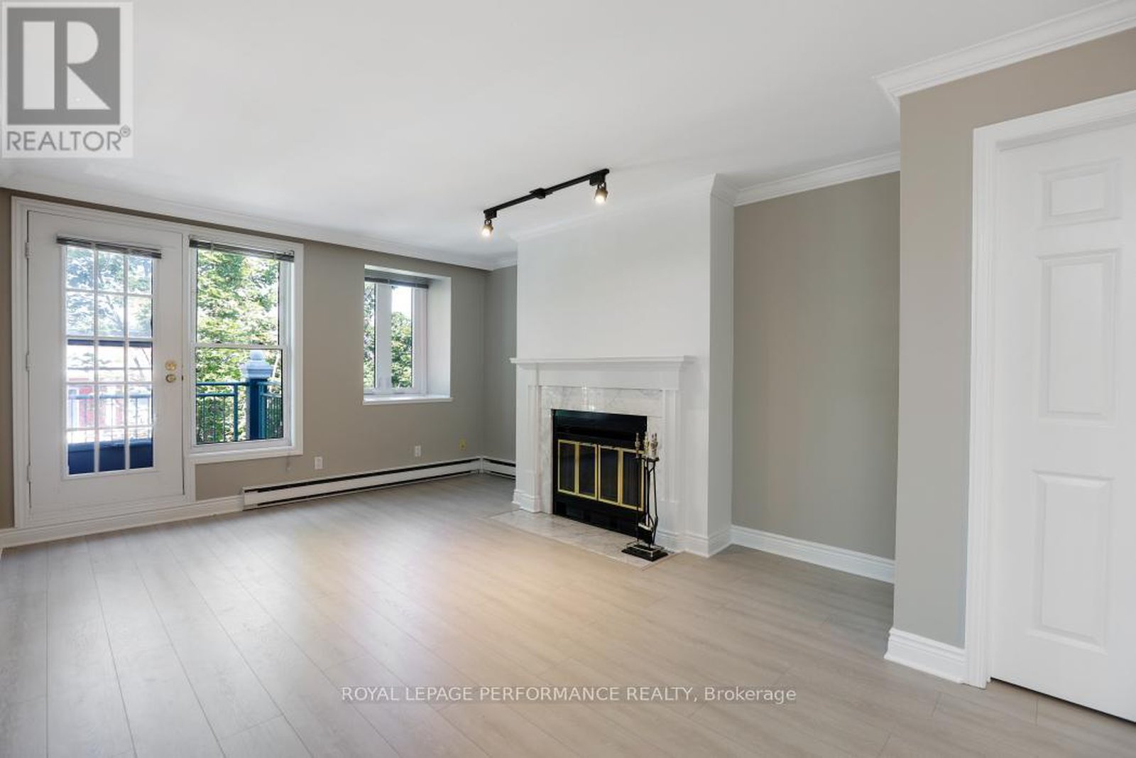 Welcome to this bright and spacious 3-bedroom condo nestled in a charming full brick building. This top-floor end unit is bathed in natural light thanks to twin skylights and expansive architectural windows with wide ledges - perfect for plants, decor or simply to enjoy the serene outlook. The open-concept living and dining area is designed for comfort and style, featuring a cozy wood-burning fireplace and direct access to a large private balcony that overlooks the peaceful end of Bruyere Street. The fabulously updated kitchen offers beautiful quartz counters, stainless steel appliances, ample cabinetry and modern finishes that will delight any home chef. The primary bedroom is a true retreat, highlighted by oversized windows with deep sills that not only enhance the airy feel of the room but also provide a charming space for decorative accents. A full bathroom with a double-sink vanity sits conveniently nearby. Two additional bedrooms offer flexibility for children's rooms, guests or a home office, ensuring plenty of space without compromise. Practicality meets convenience with in-unit laundry, one underground parking space and a private storage locker. Residents also enjoy access to a shared outdoor patio with seating and the use of a barbeque - creating the perfect setting for entertaining or unwinding with friends. Whether you're seeking a smart investment property or a family-friendly home with room to grow, this home delivers exceptional value. Ideally located within walking distance to cafés, artisan bakeries, numerous restaurants, shops along Sussex Drive, the Royal Canadian Mint, Embassies, the National Art Gallery and the ByWard Market. The lifestyle open to you here is unmatched. Some photos have been virtually staged