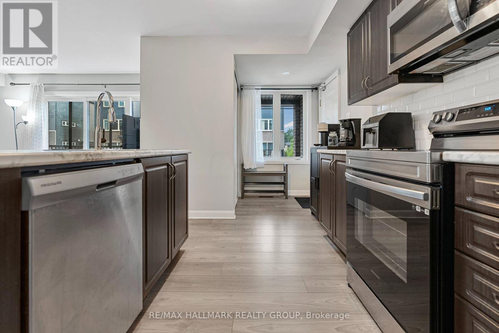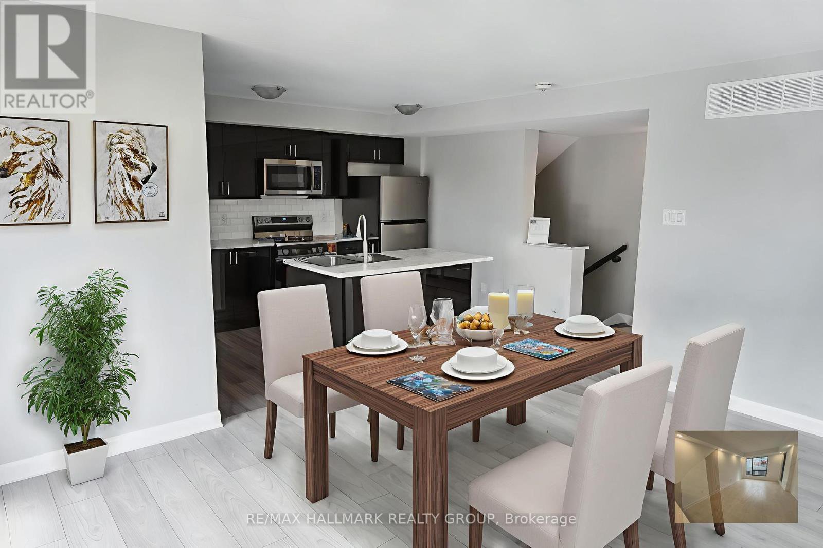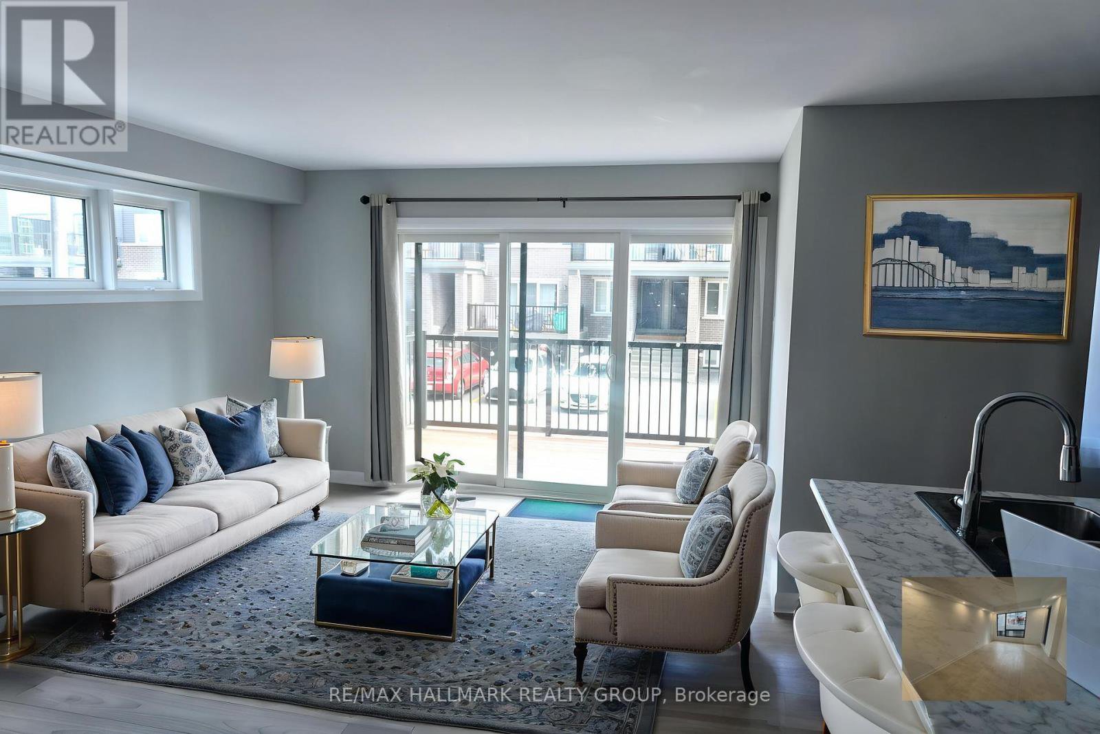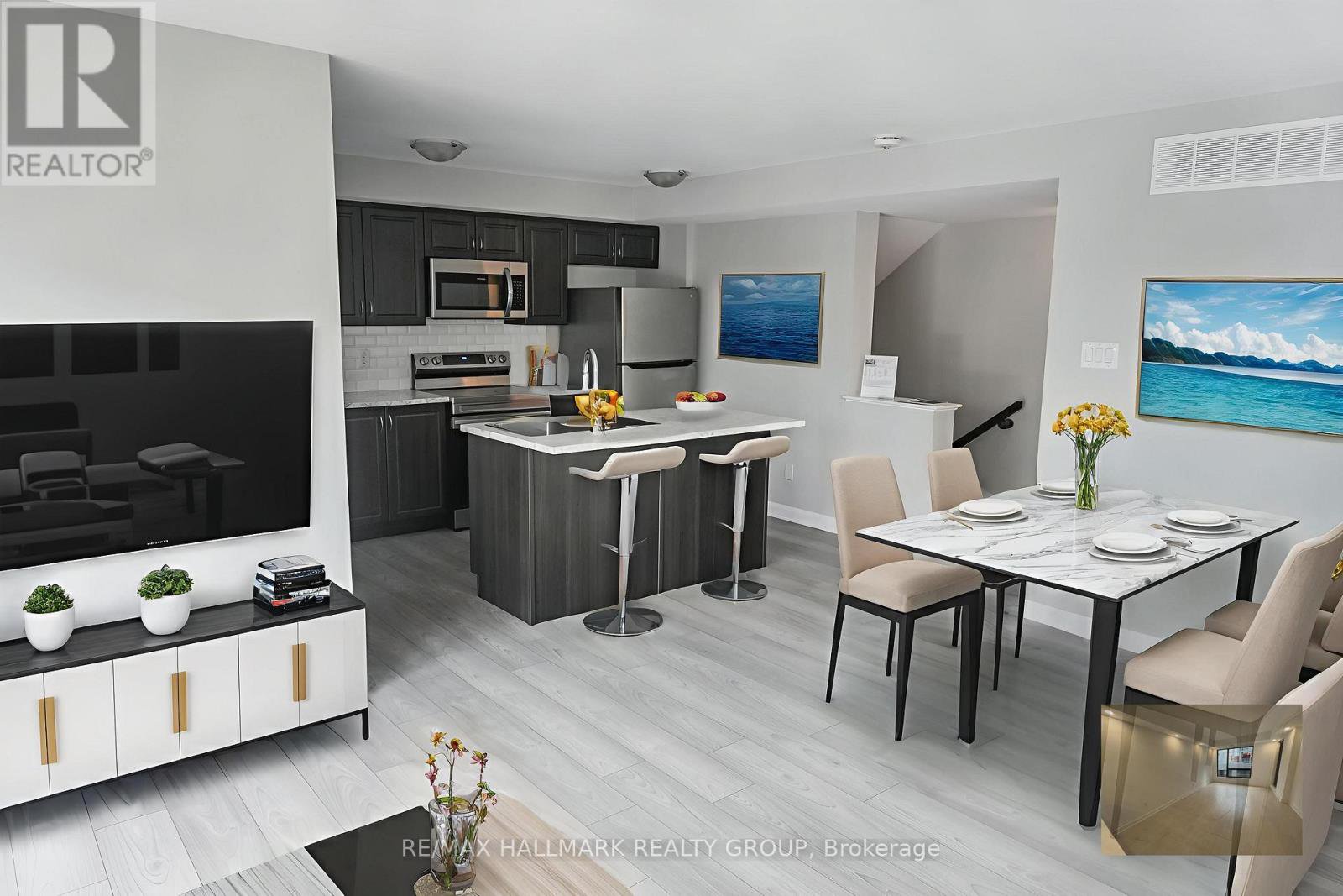 Modern & Affordable Living in the Heart of Kanata, with low condo fees of only $206/month (including Building Insurance)! This bright and stylish corner lower stacked terrace home offers incredible value, perfect for first-time buyers, downsizers, or investors. Featuring 2 spacious bedrooms, 2 bathrooms, this well-maintained unit is move-in ready. Enjoy a sun-filled, open-concept layout with modern finishes throughout. The main level features large windows, sleek ceramic and laminate flooring, a contemporary kitchen with stainless steel appliances, an island with breakfast bar, and a cozy living area with access to your own private balcony. A convenient powder room completes the main floor. Downstairs, you'll find two generous bedrooms, a full bathroom, laundry area, and additional storage, all with oversized windows that bring in natural light. Located in a vibrant and walkable neighbourhood steps to grocery stores, restaurants, parks, schools, transit, and more. Just a 5-minute drive to Kanata's tech hub, Marshes Golf Club, and South March Highlands for hiking and biking. Don't miss your chance to own a modern, low-maintenance home in a prime Kanata location!