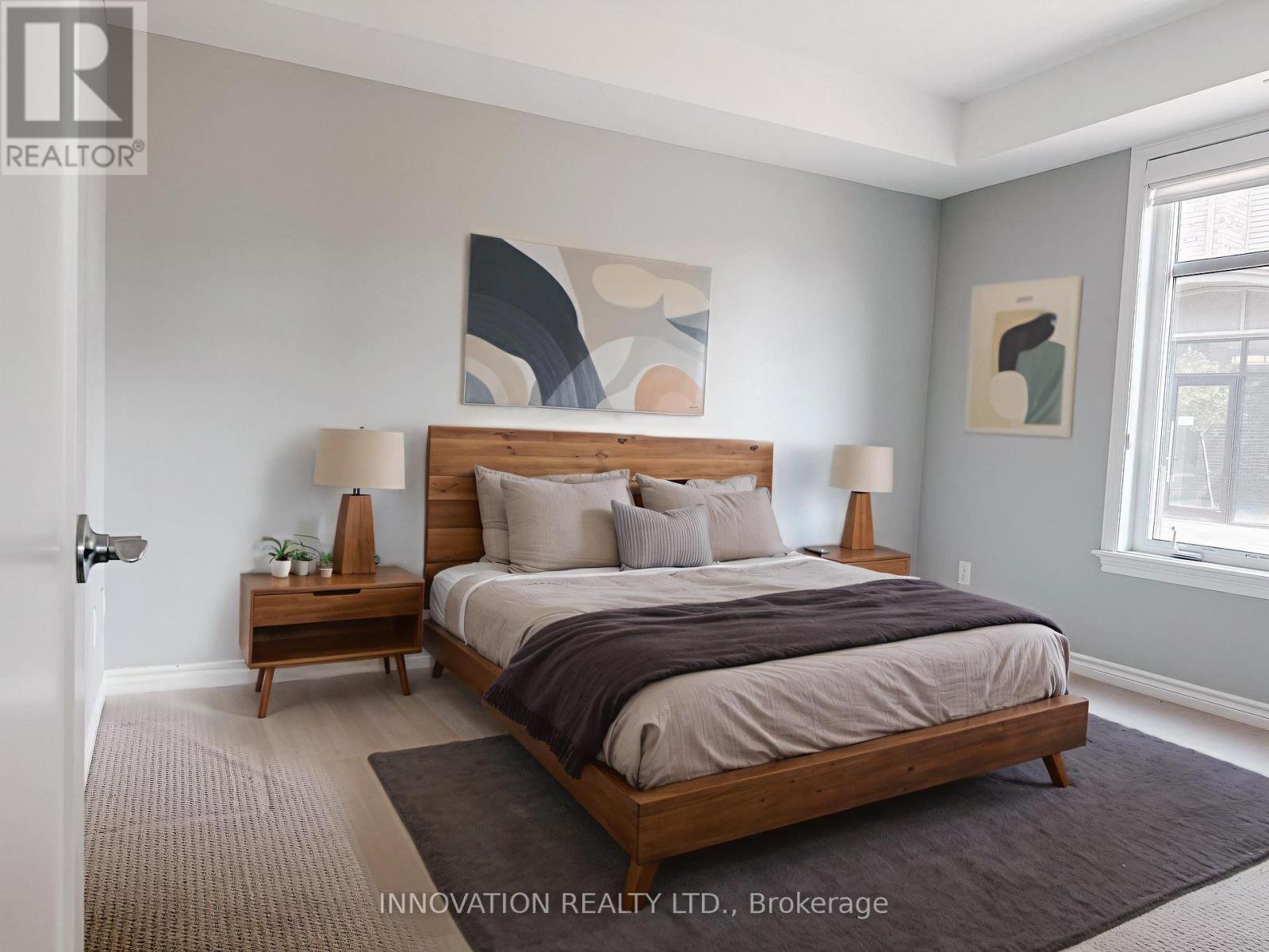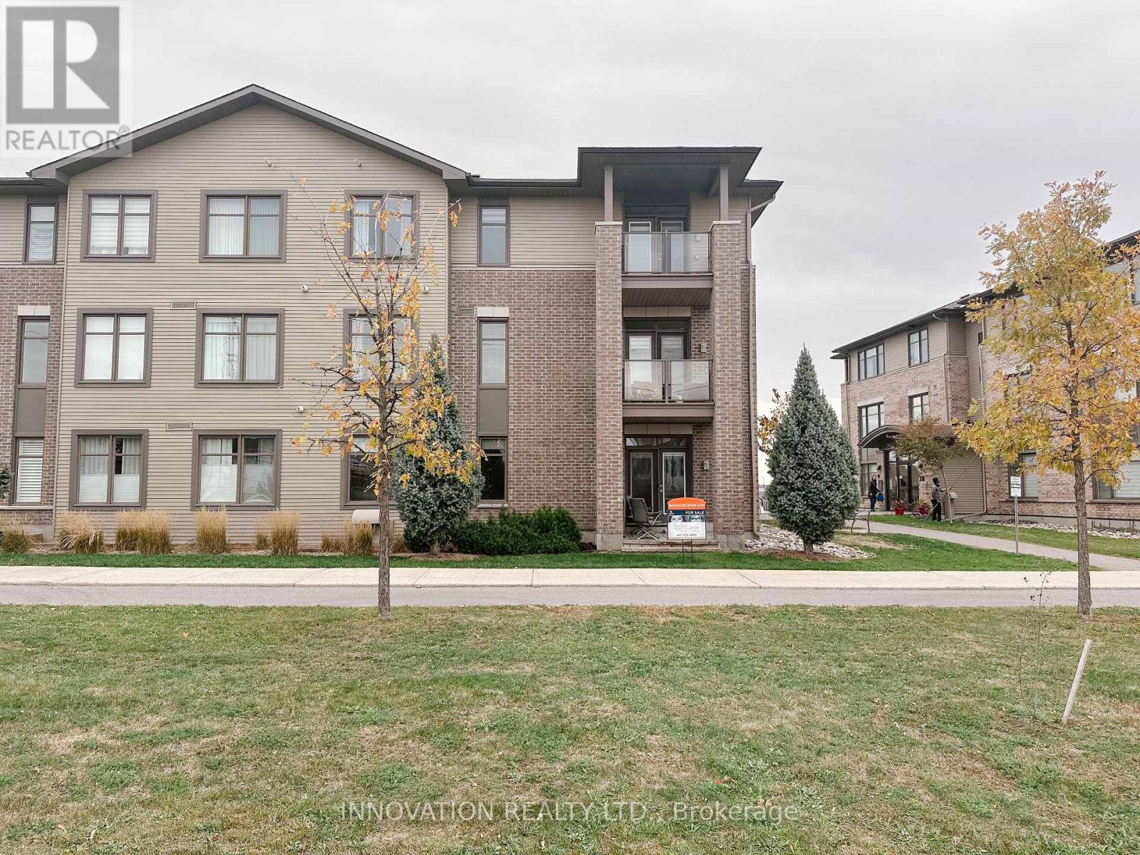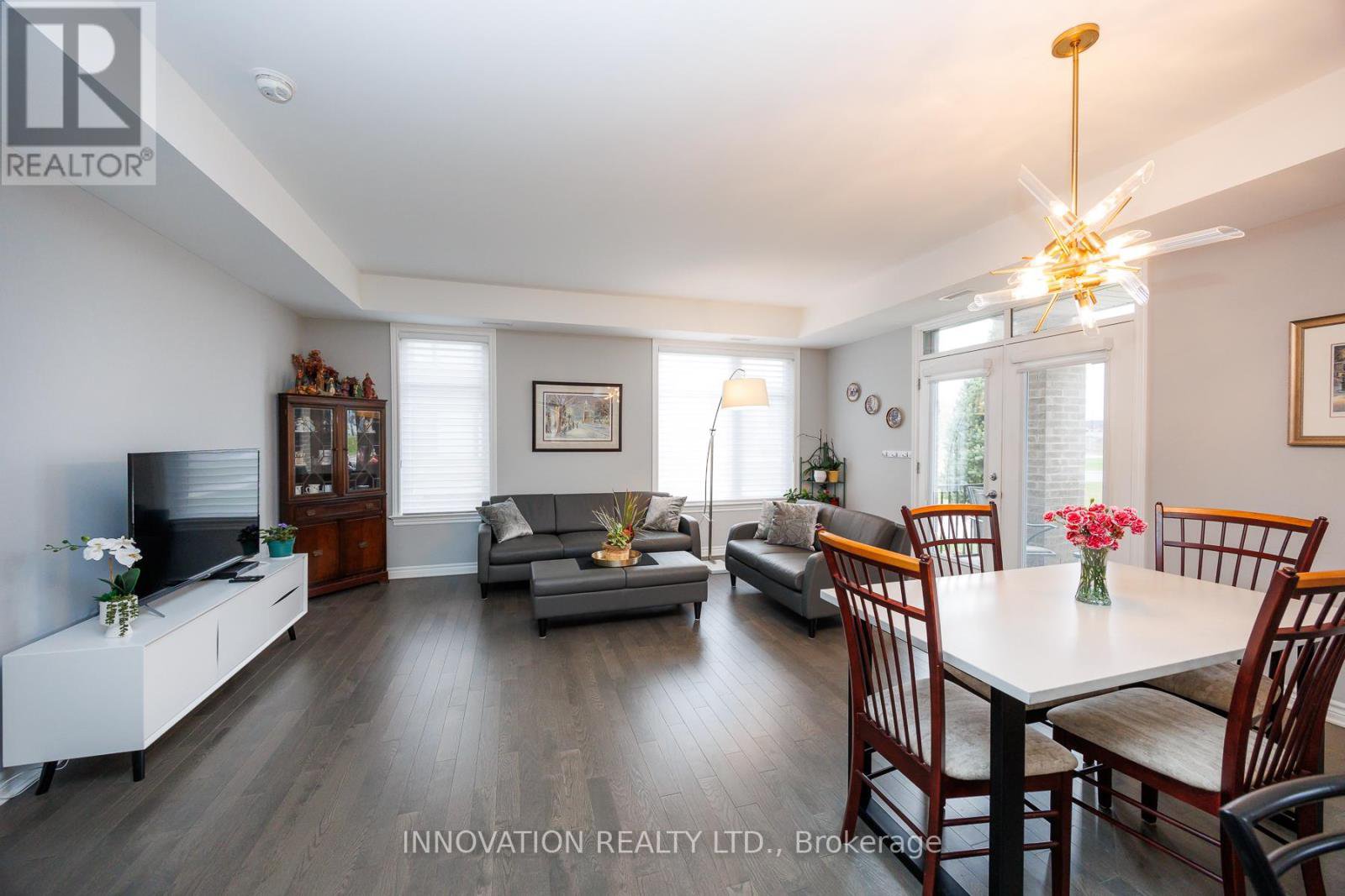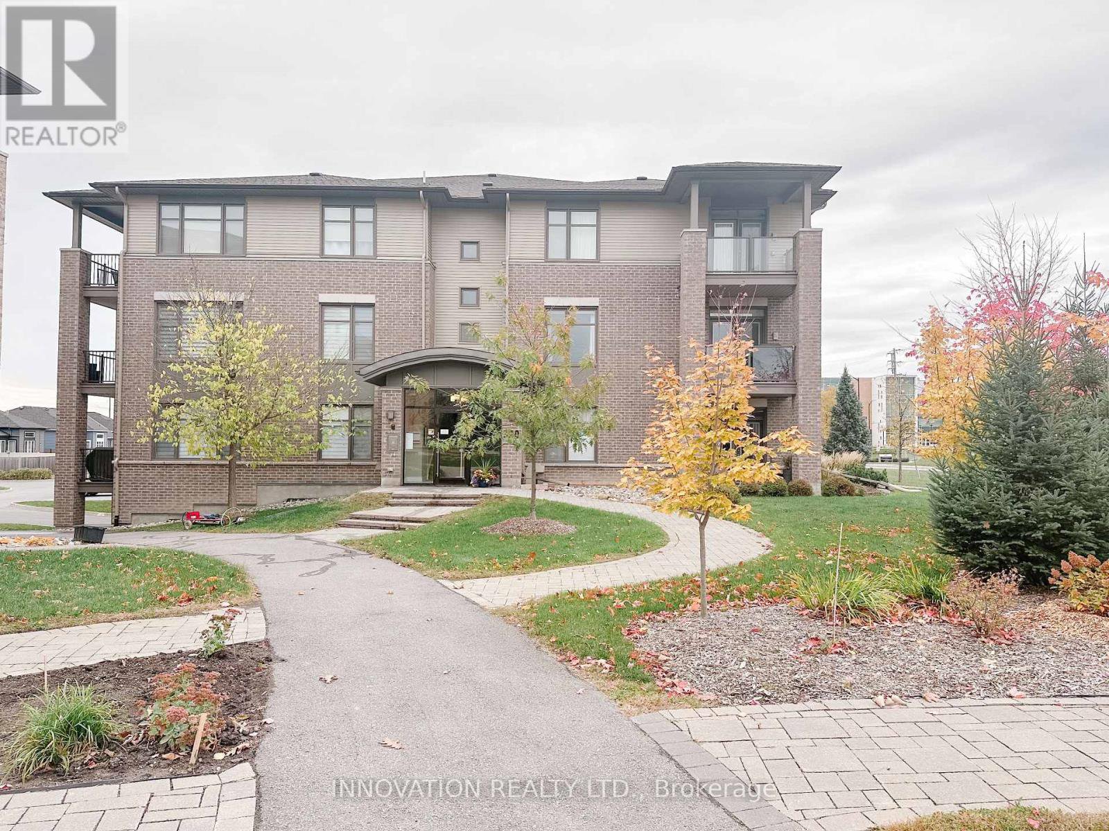 Spacious and bright ground level end unit condo with 2 parking spots, 2 bedrooms, 2 bathrooms and a den! Have a dog? Walk out your patio door and go for a walk! Single parent? Security here with great schools in the area for kids to walk to. This EQ Cypress model offers 1200 square feet of modern living space with lots of natural light all day long from southwestern facing windows that still catch morning light. Spacious foyer with tile flooring and lots of storage space. Tasteful hardwood floors are through the open concept living space with access to your outdoor patio with immediate access to grass and walking - perfect for those with pets! Upgraded kitchen with quartz countertops, soft close cabinetry and stainless steel appliances. The primary bedroom offers Berber carpeting with a walk-in closet and 3 piece ensuite. The second bedroom also has Berber carpeting and is right next to the 4 piece main bath. The den also has hardwood flooring and is the perfect spot for an office and/or reading/media area. There are TWO parking spaces that come with this unit including one underground and one surface parking. Elevator access to underground parking spot. This unit also comes with a good sized storage locker and there is shared bike storage for the building as well. Located in Blackstone, adjacent to the amenities of both Kanata and Stittsville you can easily access grocery stores, retail, restaurants, Cardel Rec Centre, Goulbourn Lawn Bowling Club, biking and walking trails and more. Lovely!