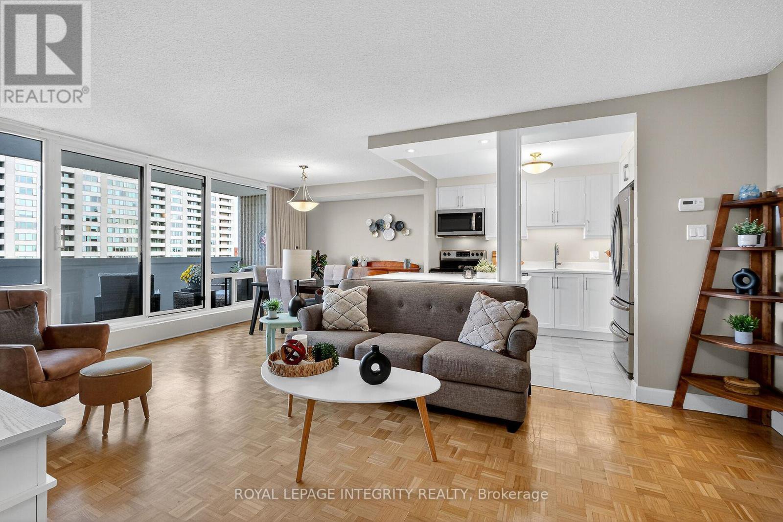 Attention Nature Lovers: This bright updated condo is for you. With astonishing views of the Ottawa river, NCC bike paths at your door, short walk to Britannia Beach where you can catch stunning sunsets, steps to Mud lake with its well-known bird sanctuary, you will be well served. Top it off with a unique unit offering a beautiful OPEN-CONCEPT KITCHEN with sought-after QUARTZ countertops, eating bar, elegant white cabinetry and undermount lights, multiple spacious PULL-OUT DRAWERS to accommodate all your storage requirements and top of the line Stainless Steel appliances. Step inside your renovated bathroom with its convenient WALK-IN SHOWER with glass doors and tiled surround, updated vanity and ceramic floor. The Spacious bedroom with its large window offers lots of storage. Enjoy your morning coffee while appreciating the views of the river and the manicured lawns from your 20 x 6 balcony. In addition to the great outdoors, this complex offers great indoor amenities, including a large recently updated saltwater pool and sauna, workshop, a well equipped gym, library, a party/meeting room hosting many social events,  billiards and table tennis rooms and convenient guest suite. You will also love the convenience of your indoor heated parking garage and on-site car wash. Ideally situated a short walk to an off-leash dog park for your furry friend (welcomed in the complex if less than 25 lbs),  the popular Farm Boy store and Lincoln Field with Metro, drug stores and the soon to open LRT transit station.