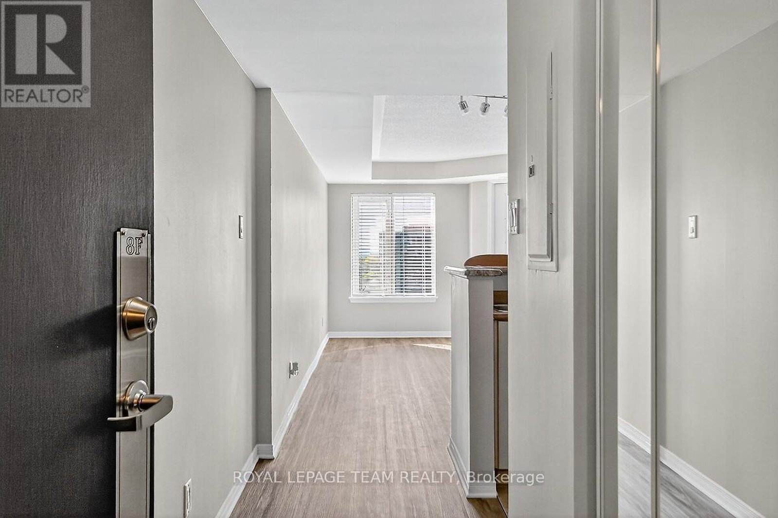 Move in ready bright open concept condominium situated across from the experimental farm and bike paths in desirable Central Park with covered parking and in suite laundry. Enjoy beautiful sunsets on the 8th floor with a patio overlooking a pond, park and tennis courts. Includes five appliances with custom blinds, ceramic in kitchen, bathroom and foyer. Minutes from the Civic hospital, downtown, universities and within walking distance to shopping and restaurants.