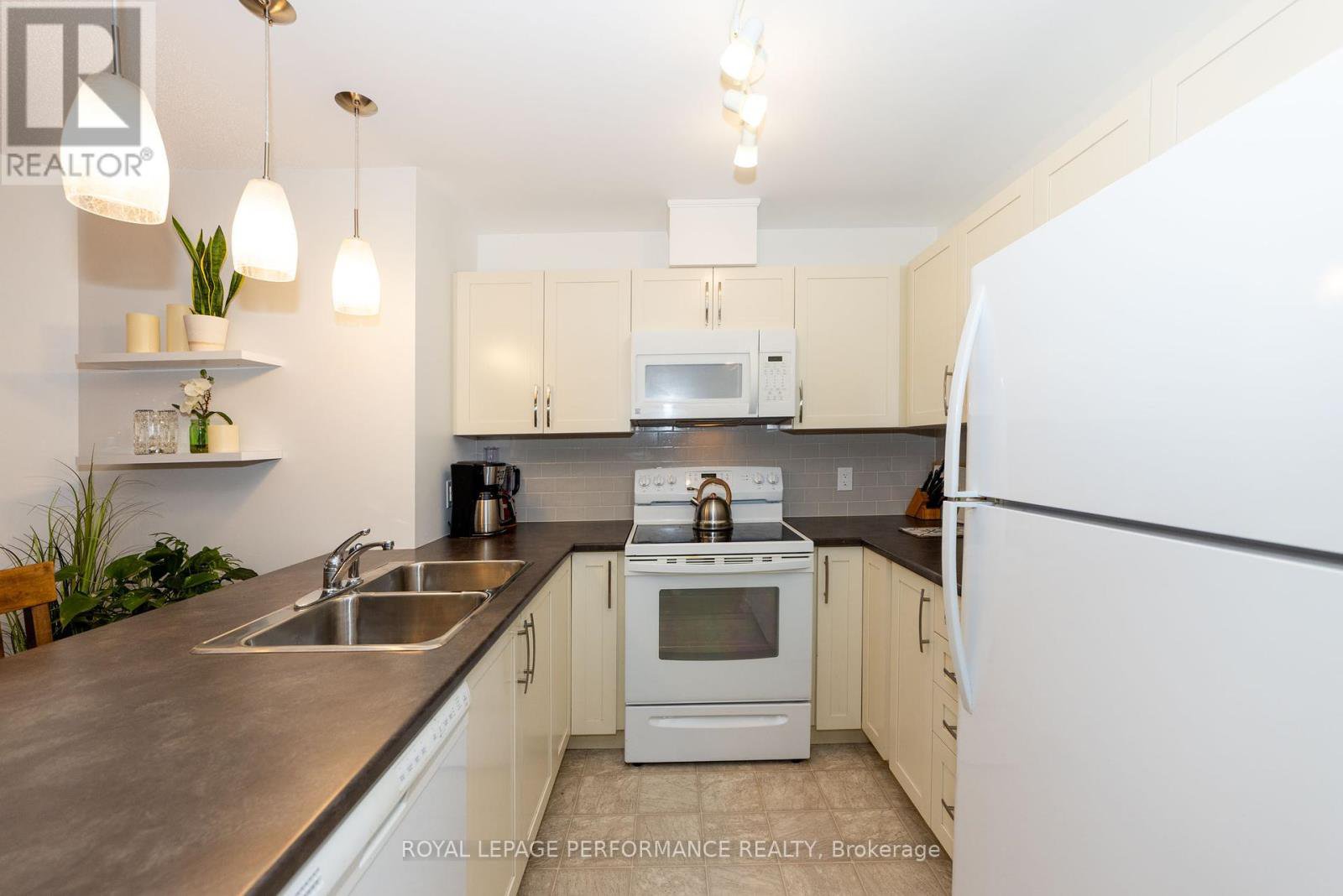 Welcome to 141 Potts in Notting Hill South, located in the heart of Orléans! This quiet condo complex, built by Cardel in 2013, is ideal for adult living and offers a prime location within walking distance to the Trans Orleans Pathway, Millennium Park (with its large playground and sports fields), a shopping plaza with Sobeys, Starbucks, Tim Hortons, LCBO, CIBC, restaurants, and more. You'll also enjoy quick access to gas stations, pharmacies, health centers, and convenient commuting options via the highway, Brian Coburn Boulevard, and the Trim Road LRT. Situated on the second floor, this spacious 2-bedroom, 2-bathroom unit (approx. 900 sq ft) features an open-concept layout with a kitchen that flows seamlessly into the dining and living areas, and a private covered balcony overlooking green space. The primary bedroom includes a well planned closet and an ensuite with a walk-in shower, while the second bedroom is located next to the main bathroom, which features a tub/shower combo. Radiant in-floor heating (included in condo fees) and two heat pumps (in the primary bedroom and living room) for air conditioning. Additional features include in-unit laundry, a deep closet closet/pantry, an elevator and two stairwells, secure heated underground parking with adjacent locker (211), a heated garage ramp for winter safety, and a well-managed building. Perfect for those seeking a peaceful, low-maintenance lifestyle in an unbeatable location close to all amenities.