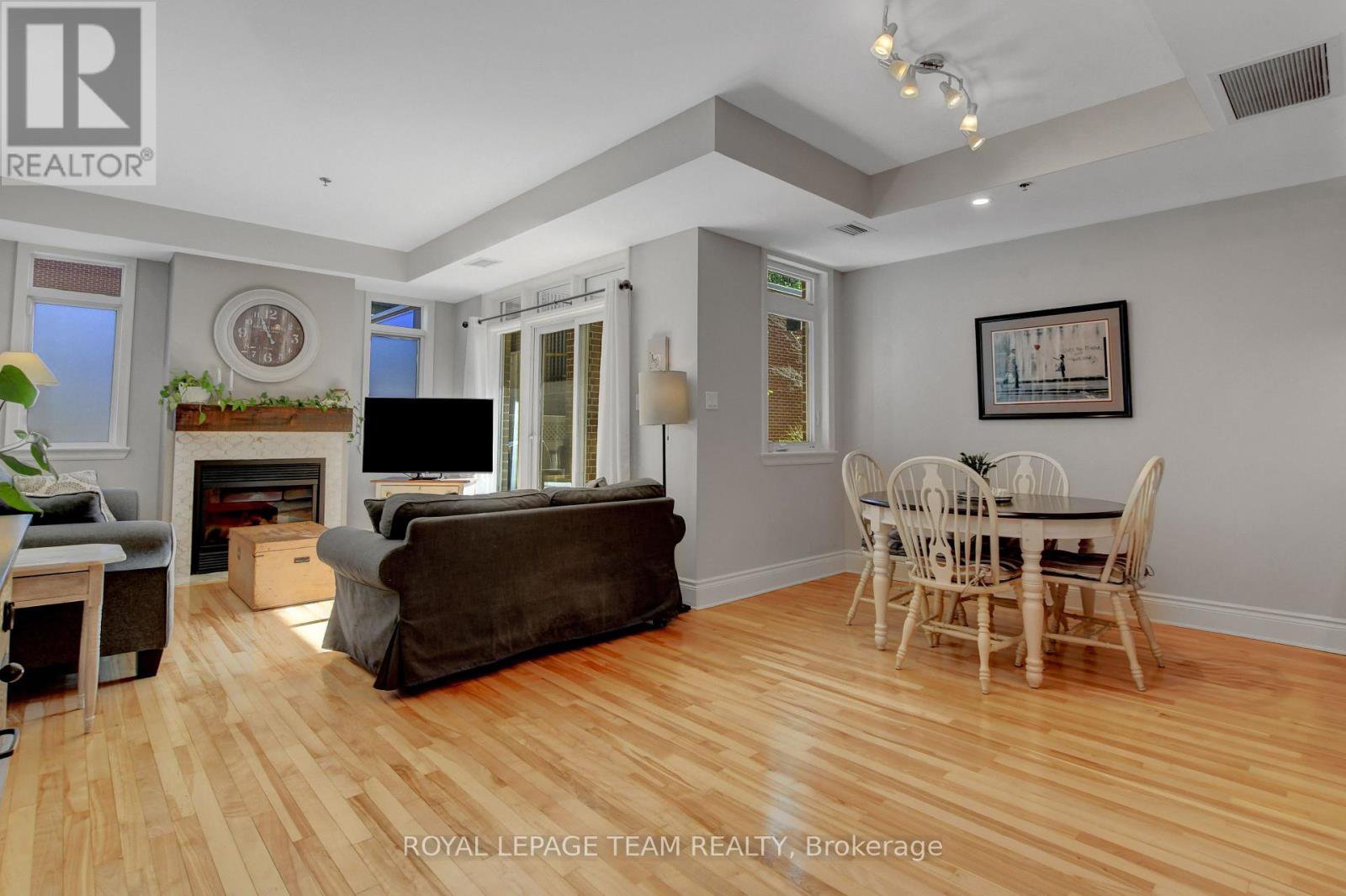 Welcome to Unit 102 at 400 McLeod Street! This absolute gem in the heart of Ottawa is tucked away on a quiet street, just off Bank Street. It perfectly balances city living convenience with the comfort of your own private space. Lansdowne Park and Parliament Hill are both within a 20 minute walk, making this location ideal for enjoying the city without sacrificing peace and privacy. It is also surrounded by numerous restaurants and shops that add charm to this location.This spacious 1 bedroom + den condo offers over 1,065 sq ft. This is larger than most 1bedrooms in the area. The updated kitchen features custom cabinetry, stone countertops ,stainless steel appliances, and an open layout that was carefully remodelled. The enclosed den works great as an office, guest suite, or reading retreat, complete with a pull-down Murphybed. The bathroom is fully remodelled with a new vanity, modern tile, and a curbless walk-in shower.The hardwood floors were also refinished throughout and are in fantastic condition. The design offers a blend of elegance and functionality.The fireplace was upgraded with a tiled surround and custom ledge, adding warmth and style to the heart of the condo. From the living room, step out onto the private patio with a custom added a gate leading to the shared courtyard. A rare, private feature in this building.A brand new air handler and air conditioning system installed in September 2025 provides year round peace of mind for the new owners.This condo is ideal for professionals, downsizers, or anyone seeking low-maintenance condo life in one of Ottawas most desirable neighbourhoods. Don't wait! Make it yours today!