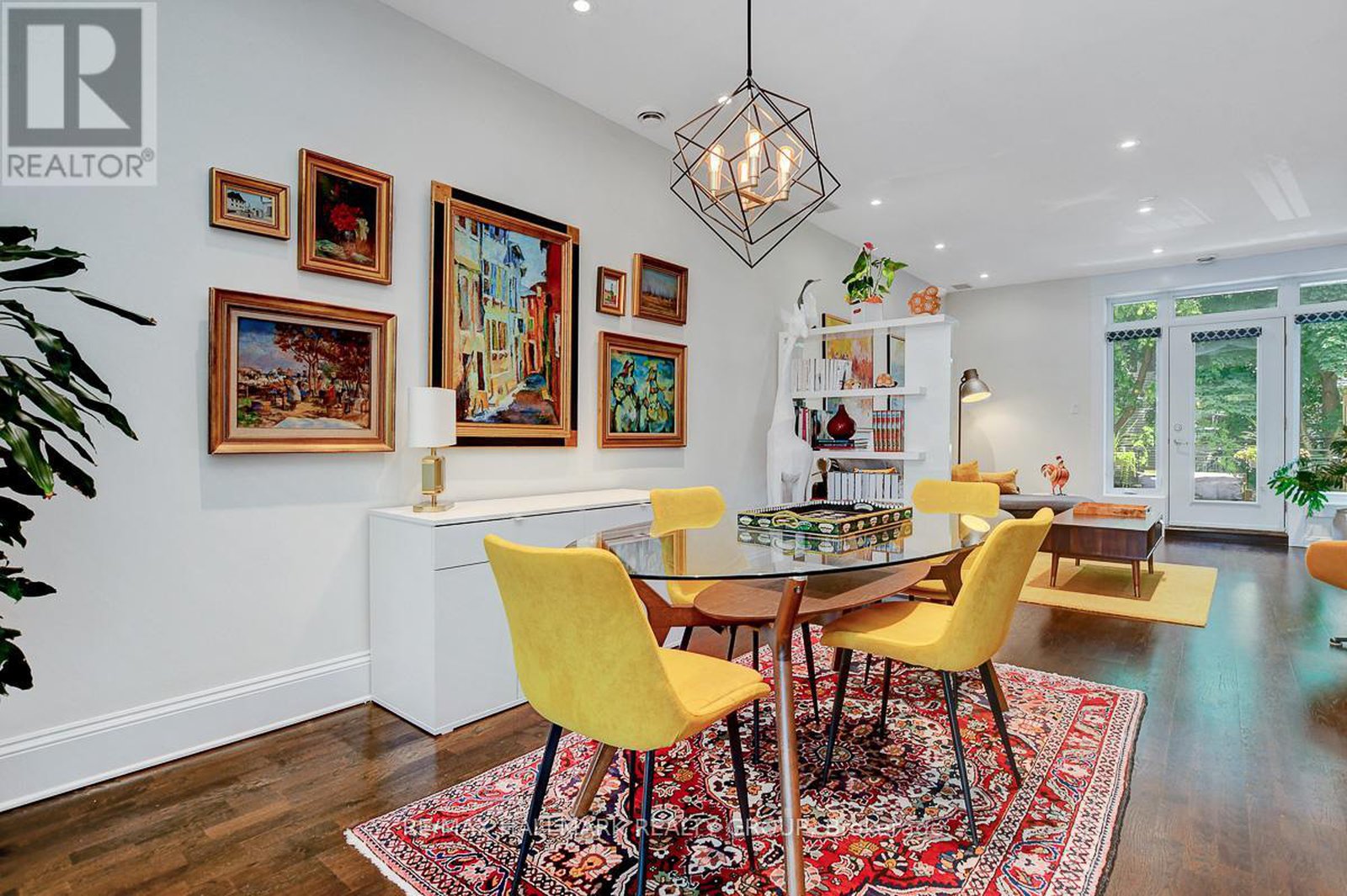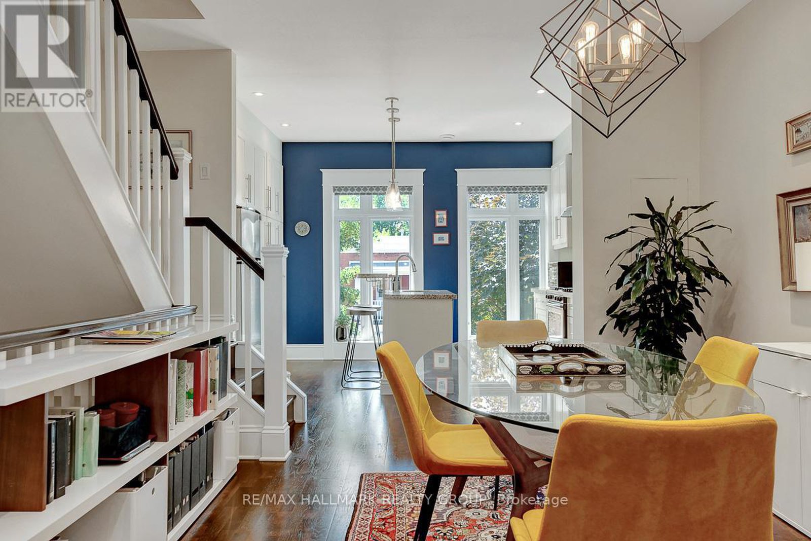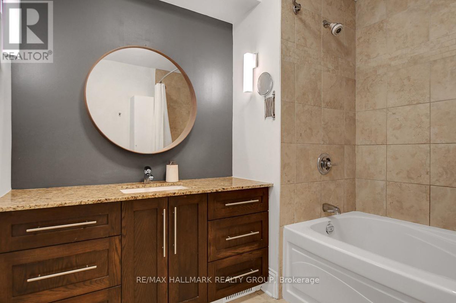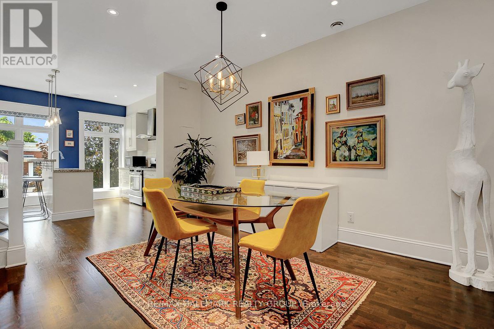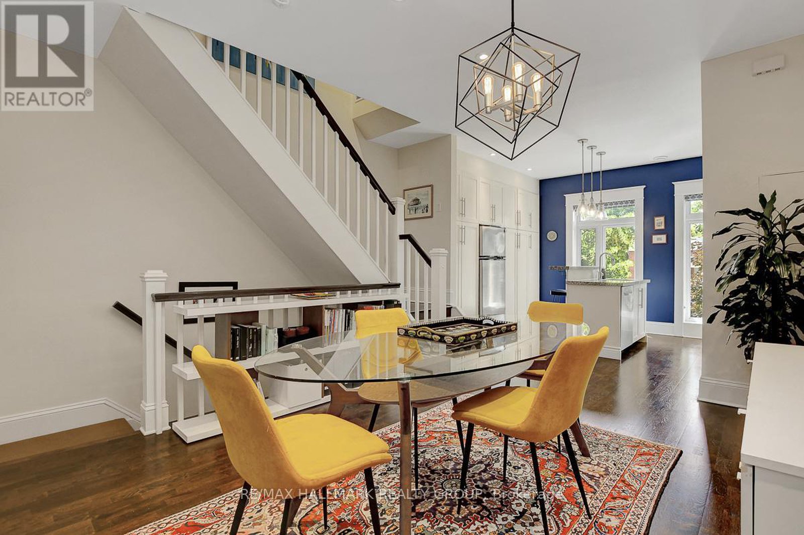 Chic, stylish, and inspired by classic NYC brownstones, this beautifully maintained Upper 2-bedroom townhouse is just steps from Beechwood Avenue. The light-filled main floor features soaring 9' ceilings, radiant heated engineered hardwood floors, LED lighting throughout, and a cozy gas fireplace framed by custom built-ins with exquisite glass shelves. The open-concept layout includes a modern kitchen with granite counters, a gas stove, island seating, and eye-catching glass pendant lights. Step out to your private rear balcony oasis - perfect for relaxing or entertaining, complete with extra storage. Upstairs, the spacious primary bedroom boasts two well-appointed closets, a luxurious 4-piece ensuite, and French doors leading to a second private balcony retreat. The second bedroom features oversized windows, a custom closet, and a built-in Murphy bed, making it ideal as a guest room or home office. A second full bathroom and in-unit laundry with Blomberg washer/dryer add to the convenience. Located in a vibrant walkable neighbourhood near shops, restaurants, Stanley Park, and Global Affairs. Easy access to downtown and a short walk to Rideau Hall Grounds or a meal at Tavern on the Falls with friends. A rare opportunity to enjoy refined urban living in one of Ottawa's most sought-after communities. Recently updated: front concrete stairs, freshly painted stair handrails and balcony railings. Bosch Silence Plus dishwasher (4 yrs old), newer vanity in 2nd bathroom (2024). Features include: surround sound in living room, retractable screen on main balcony, storage shed on main balcony, interior painted with high quality Sherwin Williams washable paint. Pets are welcome (certain restrictions apply). No smoking inside/outside. Condo fees cover: building insurance, water/sewer, maintenance & repairs, landscaping, snow removal, reserve fund.