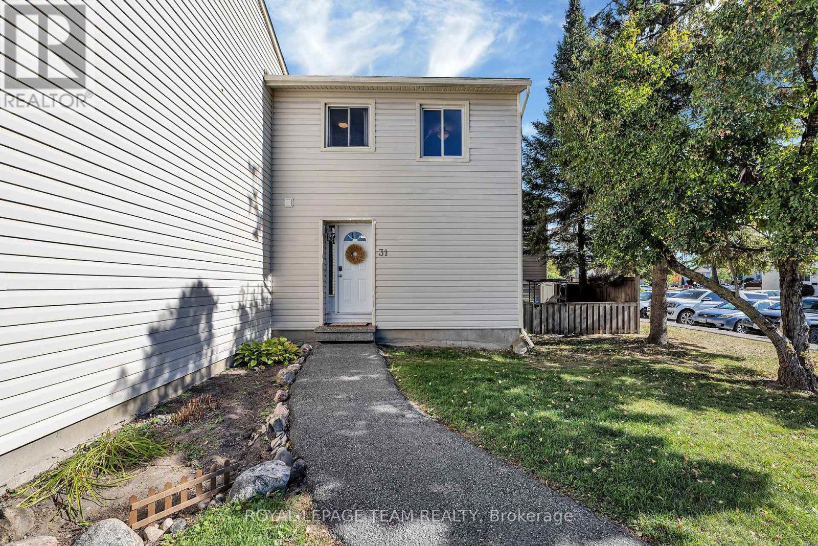 Great Value in Barrhaven only 2 owners since 1977! Welcome to this 3-bedroom, 2-bathroom townhome condo with parking, located in a highly walkable Barrhaven neighbourhood close to schools, parks, shopping, and transit. The main level features hardwood floors that flow through the dining room and sunken living room, with a walkout to a private side yard complete with a storage shed and lovely mature tree. Hardwood continues on all staircases and the upstairs hallway. Escape to your large primary room with wall of closets. The home has been freshly painted for the new owner. Recent updates include a new roof (2024), fencing (2022), powder room (2020) paint (2025) and a furnace serviced in 2024. Additional parking spaces may also be available to rent for $50/month (buyer to confirm waitlist availability). An affordable opportunity in a fantastic location perfect for first-time buyers, investors, or down-sizers alike! All exterior improvements, landscaping, snow removal, parking, exterior building insurance, common area expenses and water included in the $420.00 a month condo fee.