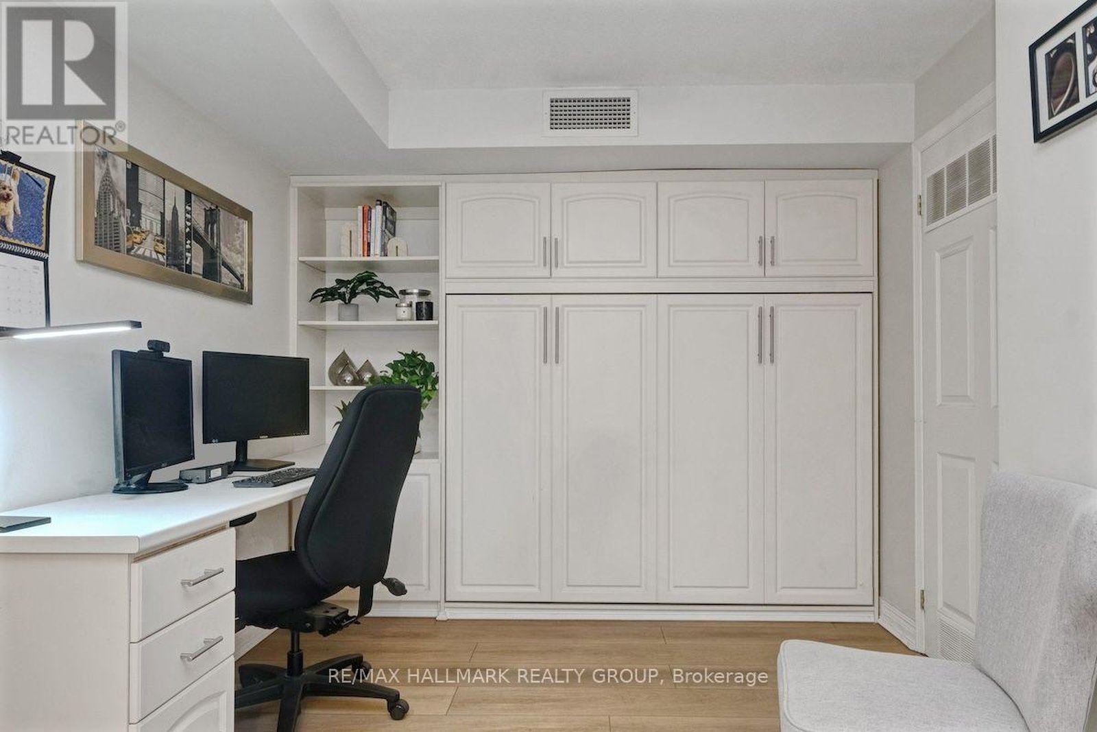 Welcome to The Strand, where this beautifully appointed 820 sq. ft. condominium offers the perfect blend of style, function, and location!The upgraded kitchen boasts a smart layout ideal for both cooking and entertaining, while the dining area comfortably fits a full-sized table beneath a modern designer fixture. A versatile den features a custom built-in office and a stylish Murphy bed with storage perfect for working from home by day and hosting overnight guests by night.The spacious primary bedroom easily accommodates larger furniture and offers a full wall of closet space. Additional highlights include upgraded flooring throughout, in-suite laundry, and underground parking in one of the buildings best spots.This well-maintained, centrally located building provides excellent walkability to shops, restaurants, transit, and downtown amenities. Residents also enjoy access to an outdoor BBQ area, party room, and meeting room.Practical comforts include individually controlled heating and cooling, exterior-vented bathroom exhaust fans, and a kitchen range hood vented to the exterior.Dont miss your chance to own in this sought-after building book your showing today!