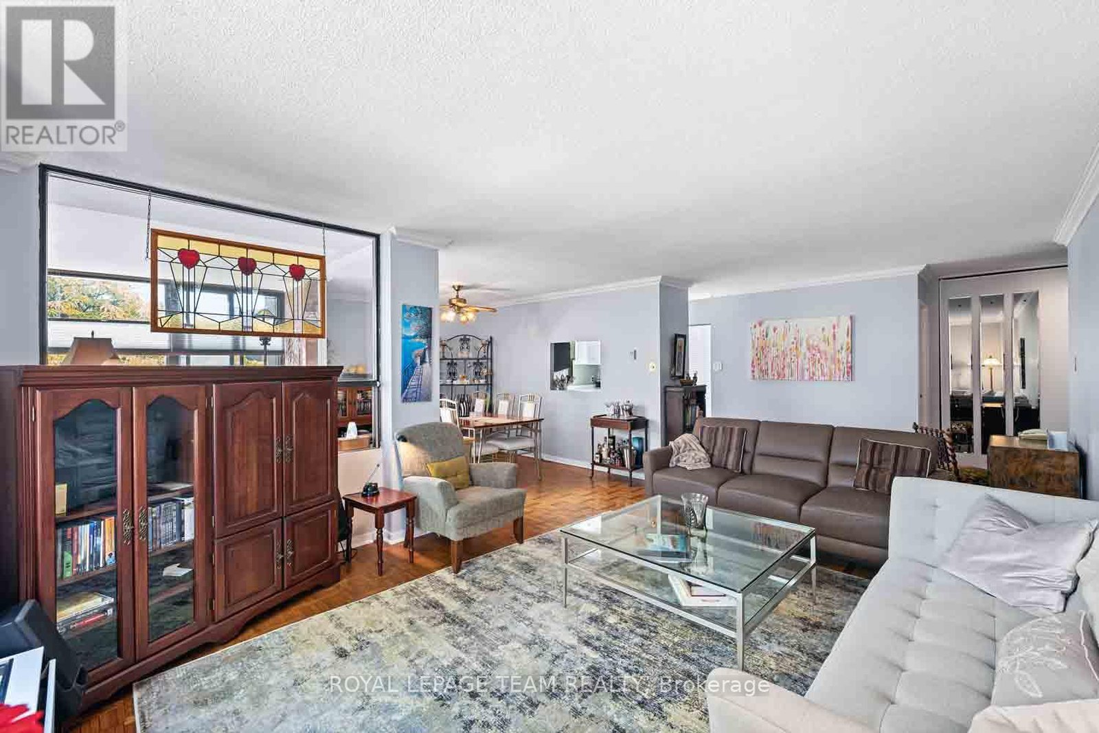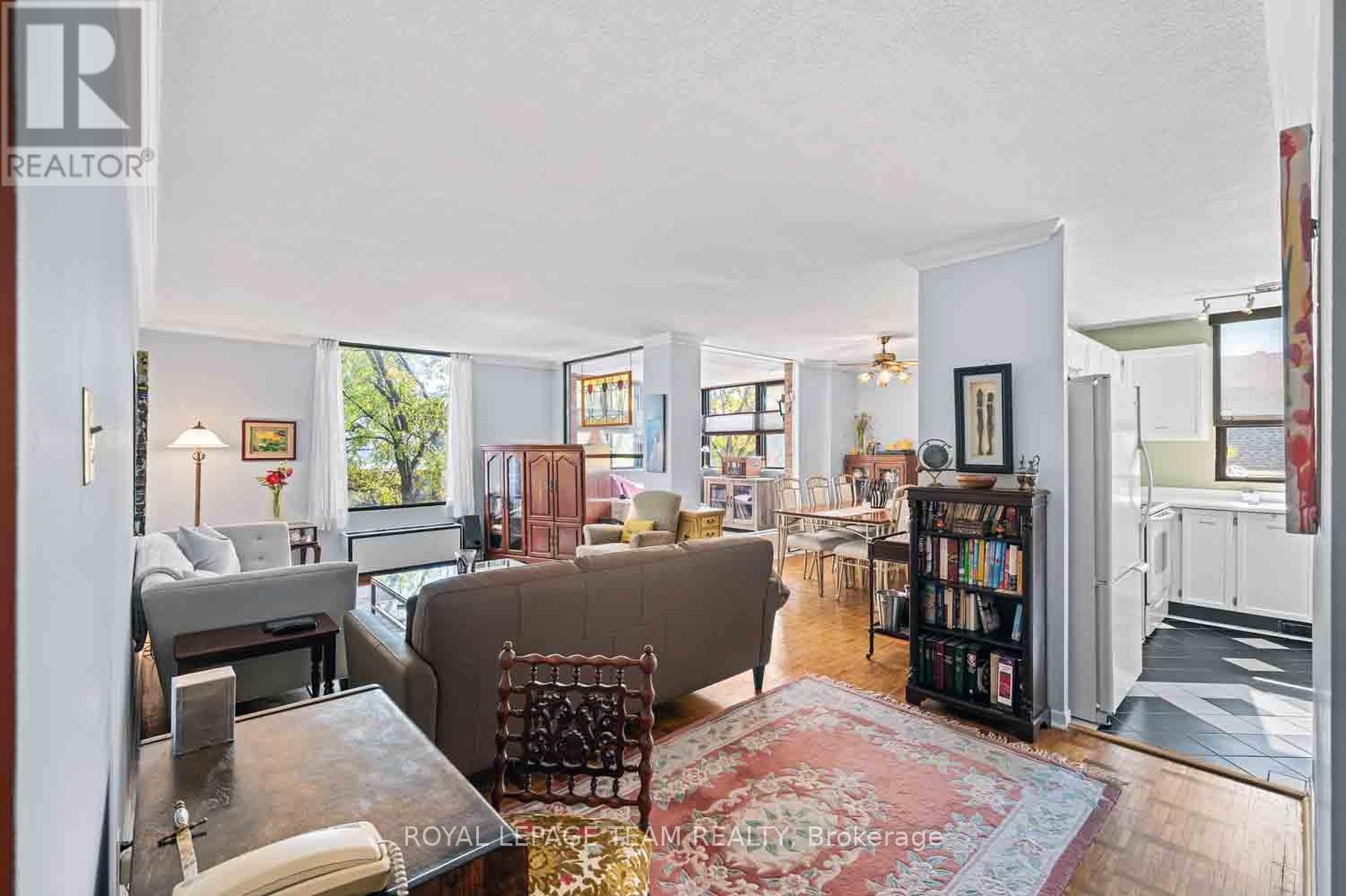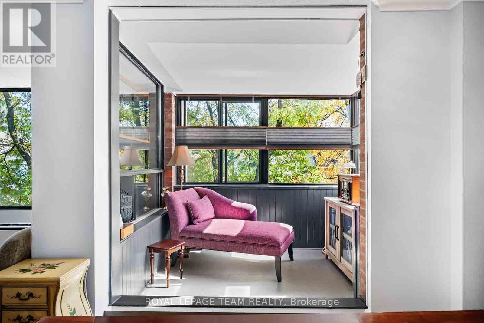 Welcome to Unit 303 at 40 Arthur. Step into a bright southeast corner suite that feels truly connected to its surroundings. Nestled on a lower level, this home offers a rare perspective: generous windows frame mature trees and greenery, creating a calming outlook that's both private and tranquil. The thoughtful layout is ideal for entertaining or quiet evenings at home, with elegant details such as cove moulding adding a touch of architectural refinement. A well-designed kitchen with ample storage and workspace keeps everything within reach. Two spacious bedrooms, including a serene primary suite, offer comfort and privacy. The second bedroom is perfect for guests, a home office, or a creative studio. One of the highlights of this home is its solarium set against a canopy of trees; it's a peaceful space for morning coffee or evening relaxation. Unlike higher-floor units with skyline views, this suite immerses you in natural surroundings while still delivering the convenience of city living. Located in a sought-after building at 40 Arthur, residents enjoy excellent amenities, secure entry, and a welcoming community atmosphere. Step outside and you're moments from the vibrant restaurants of Chinatown, the cultural life of Little Italy, and easy access to transit, bike paths, and downtown Ottawa. Unit 303 offers more than just a place to live, it's a lifestyle, blending urban accessibility with nature's serenity.