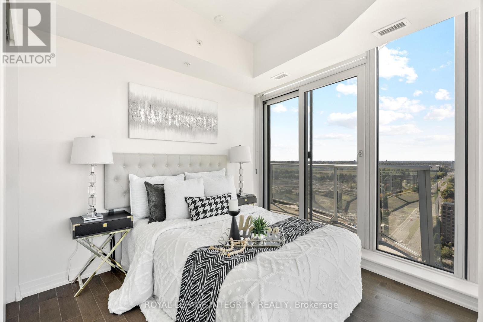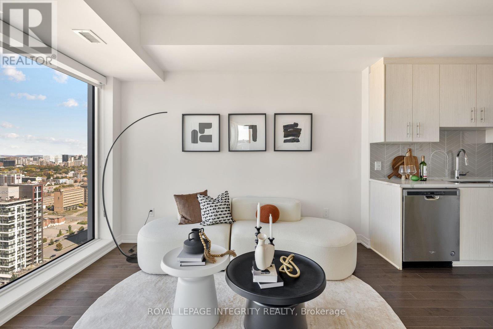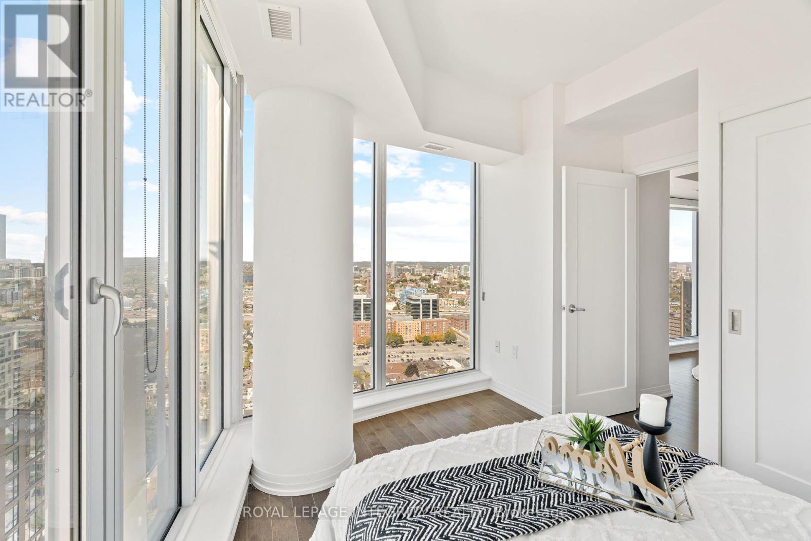 ** OPEN HOUSE: Sunday, October 5 at 2-4 PM** Welcome to elevated living at The Icon - Ottawa's most prestigious address. Perched on the 29th floor, this freshly painted corner-unit residence offers breathtaking views of the Gatineau Hills and radiant sunsets over the city. Designed for the discerning buyer, this 2-bedroom, 1-bath home is a masterclass in sophistication and comfort. Step inside to a bright, open-concept layout adorned with soaring 9-ft ceilings, floor-to-ceiling windows, and timeless finishes. Sleek hardwood floors flow throughout, anchored by the chefs kitchen complete with gleaming quartz countertops, modern cabinetry, and high-end stainless steel appliances. Both bedrooms offer large closets and access to a private, shared balcony - perfect for your morning coffee or evening wine with panoramic views. Enjoy the ease of in-unit laundry, underground parking, and a spacious storage locker. Resort-style amenities elevate your lifestyle: fully equipped gym with lake views, yoga studio, indoor pool, sauna, theatre, party room, rooftop terrace with BBQs, and 24-hour concierge service. Located beside Dows Lake and vibrant Little Italy, you're surrounded by Ottawa's best dining, cafés, festivals, and outdoor activities - skating, kayaking, cycling and more. Just minutes from downtown. Live above it all - luxury, lifestyle, location. Book your private showing today!
