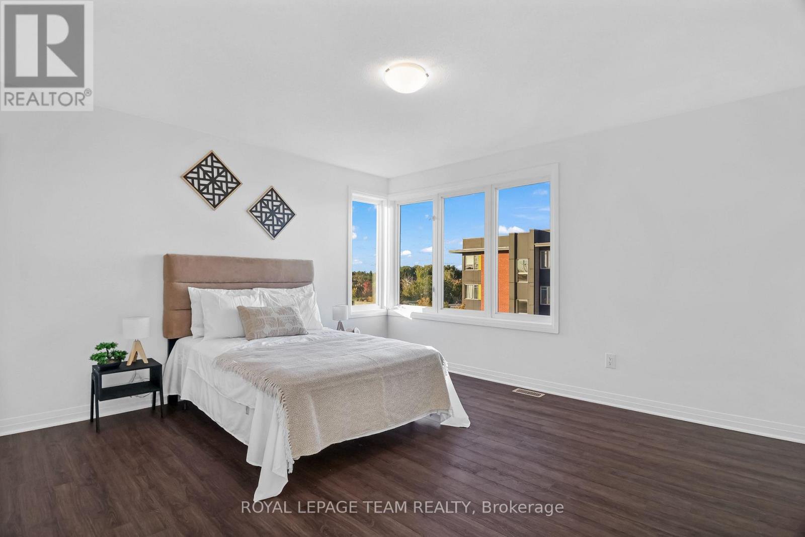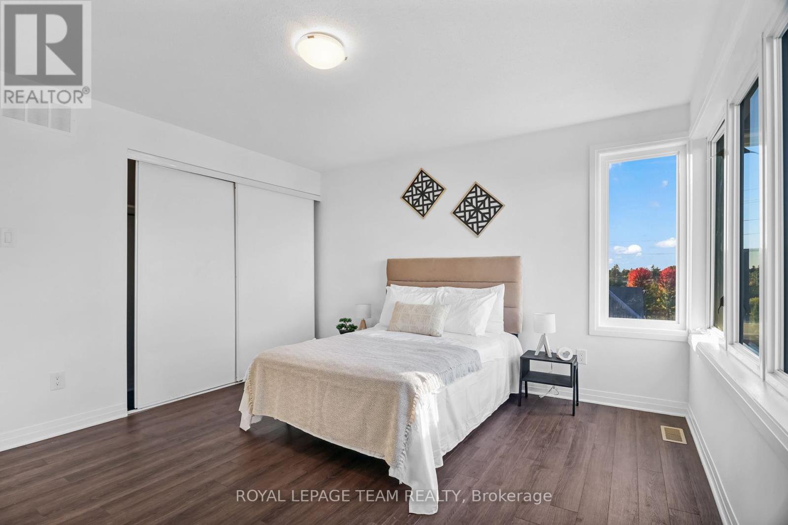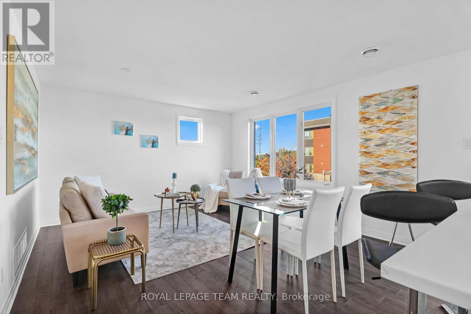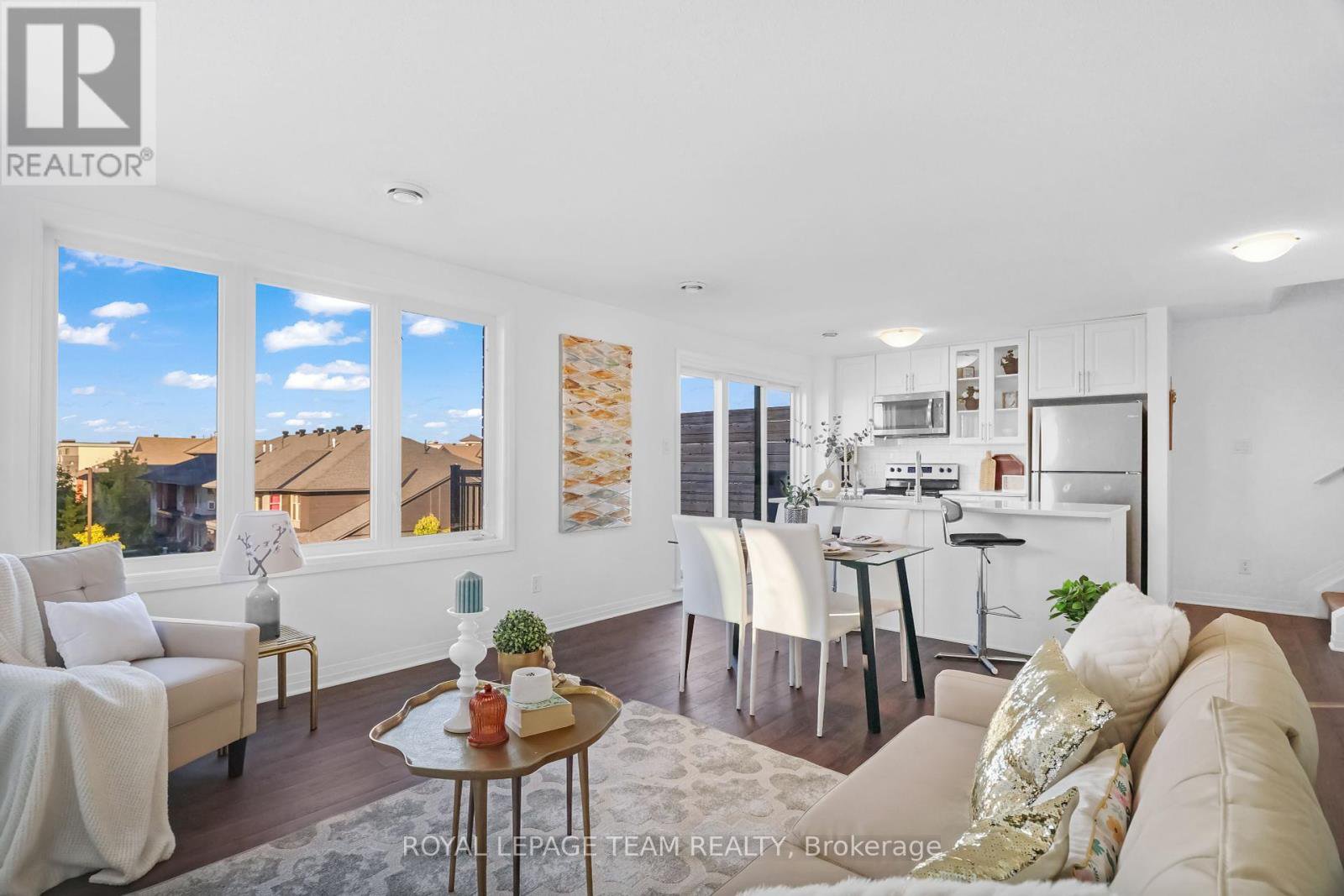 Welcome to this modern two-storey condominium situated in a highly sought-after neighbourhood, close to schools, parks, and just a short drive from the Barrhaven Marketplace Plaza. The open-concept main floor offers a sleek kitchen with stainless steel appliances, a cozy dining area, and a bright living room with patio doors leading to a spacious deck, perfect for entertaining or relaxing outdoors. A convenient two-piece bathroom completes this level. Upstairs, you'll find two generous bedrooms filled with natural light. The primary bedroom is impressively big, while the second bedroom is equally inviting. A beautiful three-piece bathroom and a laundry cupboard provide both comfort and convenience. With its modern design, functional layout, and ideal location, this home is an excellent choice for first-time buyers, downsizers, or investors.