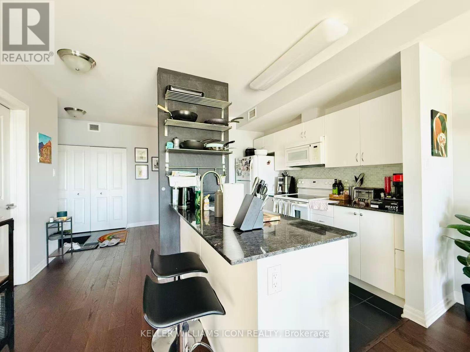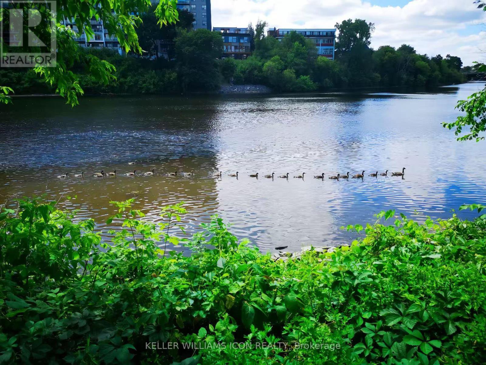 ONE OF THE LARGEST 1 BEDROOM UNIT PLUS DEN IN THE BUILDING! Walk to restaurants, FOUR grocery stores, cafés, with quick access to HIGHWAY 417. Experience urban living at its best - with SUMMER CASINO FIREWORKS from your balcony! This Bennett model 1-BEDROOM + DEN condo features BRAND NEW PREMIUM SOUNDPROOF FLOORING and breathtaking views of the Rideau River, parks, and downtown. Oversized windows fill the open-concept layout with natural light, offering a spacious living area, versatile den, dining space, and a PRIVATE BALCONY. The GOURMET KITCHEN boasts granite countertops, a central island with breakfast bar, and ample cabinetry. The primary bedroom includes a WALK-IN CLOSET and cheater ensuite with whirlpool tub. Added convenience with IN-UNIT LAUNDRY, UNDERGROUND PARKING, and a LOCKER. Enjoy FIRST-CLASS AMENITIES: concierge service, elegant lobby, fitness centre, indoor pool, party/meeting room, and bike storage. CONDO FEES INCLUDE HEAT & WATER.