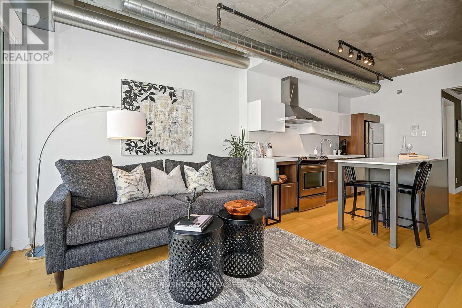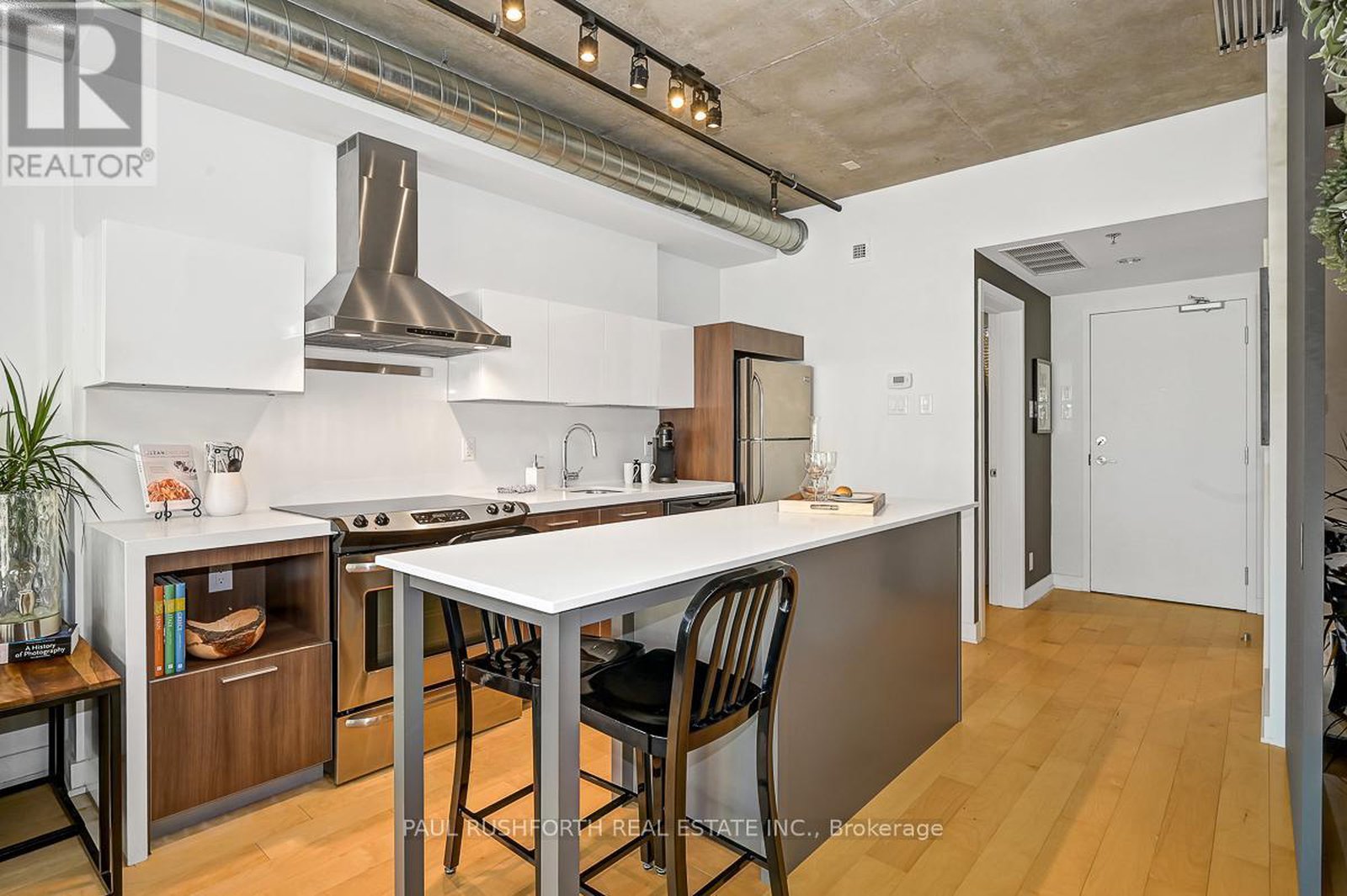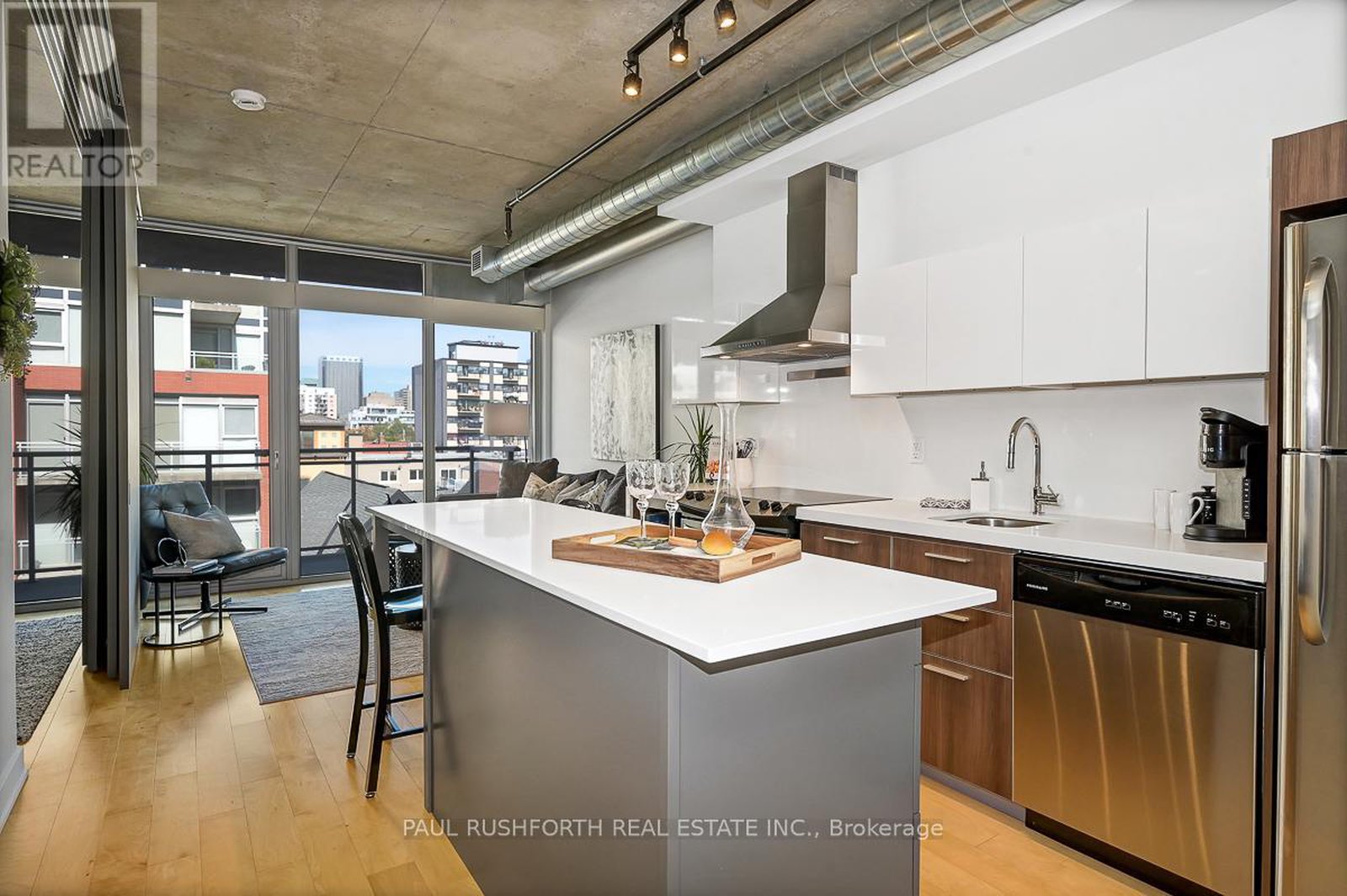 Welcome to this stylish 1 bedroom + den, 1 bathroom condo offering modern living in the heart of the city. Featuring floor-to-ceiling windows, 9-foot ceilings, upgraded sliding door system, and hardwood floors throughout, this home is filled with natural light and contemporary finishes. The open-concept kitchen boasts a quality custom designed island, stainless steel appliances, and in-suite laundry for ultimate convenience. Perfectly situated just steps to Bank Street, Elgin Street, Lansdowne Park, shopping, dining, and transit, you'll enjoy the best of downtown living at your doorstep. The building offers resort-style amenities including an outdoor pool, fitness center, party room, and media room, a true lifestyle experience. Underground parking and a storage locker are also included. This condo is move-in ready and ideal for first-time buyers, professionals, or investors.