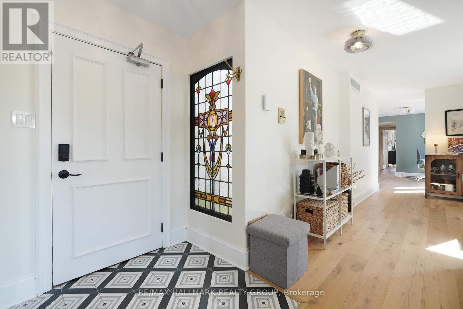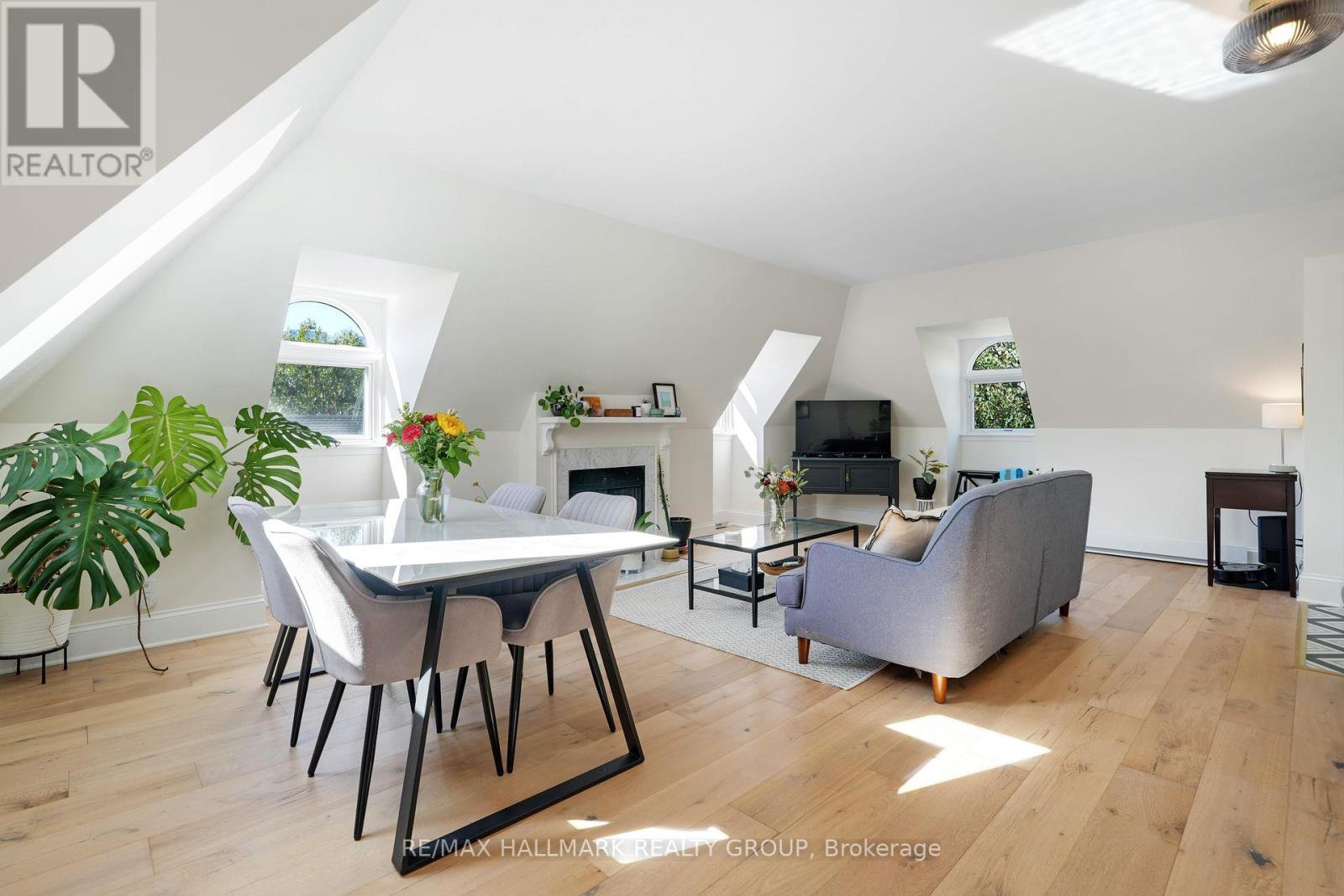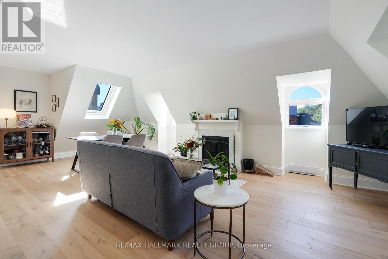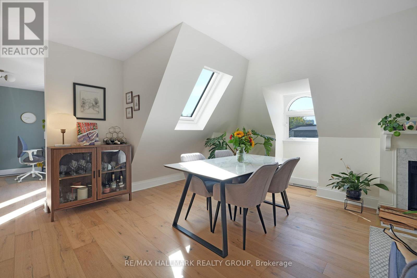 This is a rare opportunity in a Heritage home nestled amidst the gardens and tree lined streets of historic, bustling Sandy Hill. The Tupper House, originally built for the Besserer family, is the former home of two past Prime Ministers, a father of Confederation, Premiere of Nova Scotia, Cabinet minister, and a former Mayor of Bytown. In 1983 Barry Hobin redesigned the building into a lovely 6 unit residence. This 2bed +den third floor walk up has plenty of character, with a gorgeous stained glass window in the unit's foyer, dramatic sloped walls and dormer windows, and a luxurious primary suite! Relax with a cup of coffee on one of two balconies and wander back in time to imagine the history and nation building that happened here. Featuring many upgrades since 2021, including new hardwood floors, heated ensuite bath, kitchen and laundry room floors, all new light fixtures, plugs & switches. The kitchen and ensuite were tastefully renovated in 2025, making the apartment feel luxurious with modern elegance. (1 parking, 2 visitor parking and a storage locker in the basement)