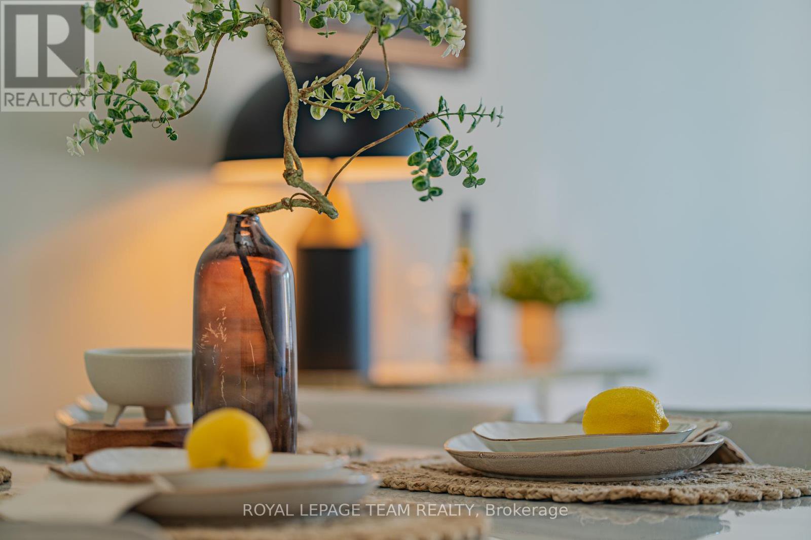 This upgraded upper terrace home in the desirable Beacon Hill North community combines resort-style views, modern upgrades, and a location that balances tranquillity with convenience. Offering about 1,344 sq ft across 2 sun-filled levels, this lovingly maintained residence features 2 spacious balconies overlooking the outdoor pool and landscaped park - no rear neighbours and perfect East-West exposure for all-day light. The main level welcomes you with a generous living and dining area centred around a cozy gas fireplace, enhanced by crown moulding and a beautiful upgraded chandelier. Walk onto the large balcony through patio doors off the living room, and Enjoy the beautiful view. On the other side, the kitchen blends elegance and practicality with stainless-steel appliances, ceramic flooring, ample cabinetry, and a bay-window breakfast nook that captures the morning sun. A powder room, and a large finished walk in storage room add daily comfort. Upstairs, 2 oversized bedrooms, one is with expansive closets and a private balcony, while the 4pc bath includes a rare Jacuzzi tub for spa-like relaxation. In-unit laundry is also on this level. Additional highlights include central air, central vacuum, gas heating, an owned hot water tank, and one convenient parking spot by the entrance, plus ample visitor parking & potential additional rental parking. Professionally managed, the building offers an outdoor pool, a kid's play area, and a peaceful, safe environment. Families will love being within walking distance to Colonel By Secondary School (IB program) and other top-rated schools. It's a five-minute walk to the future LRT station, a short 15-minute drive to downtown Ottawa, and minutes to Costco, Metro, Shoppers, and gyms. Naskapi Ridge Park is steps away from winter tobogganing, with NRC, CSIS, and the Ottawa River Parkway nearby. Bright, quiet, and great "Feng Shui", this home perfectly blends style, comfort, and location - an exceptional find in Ottawa's east en