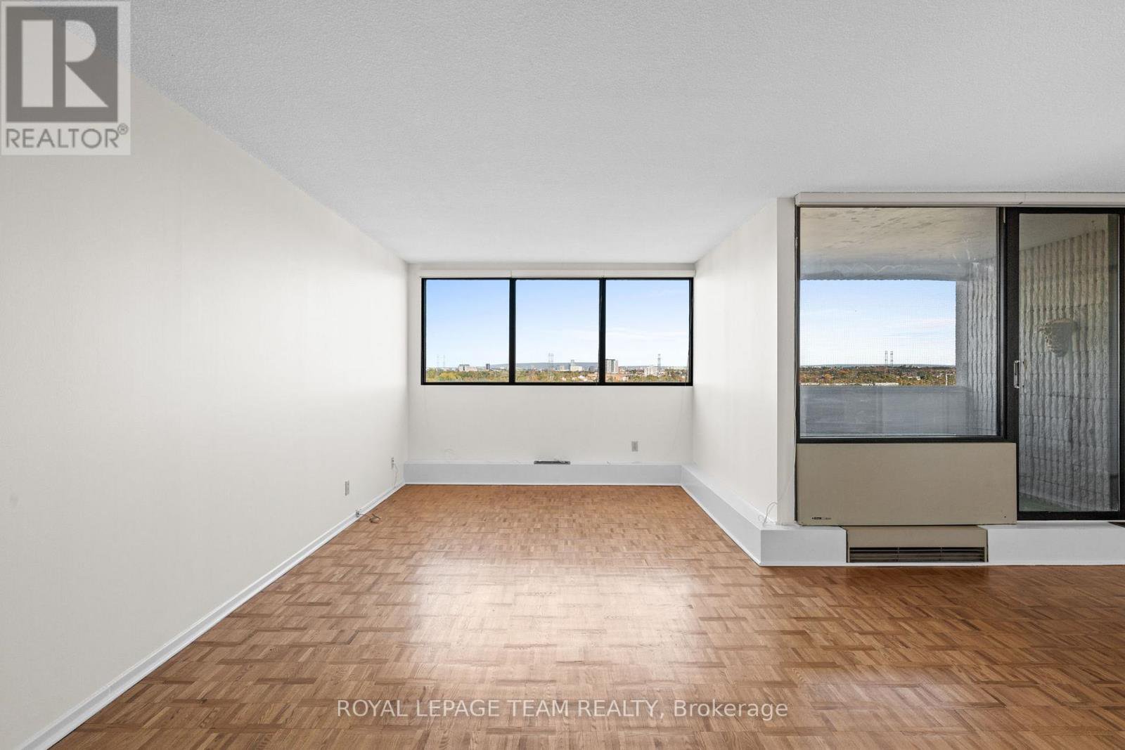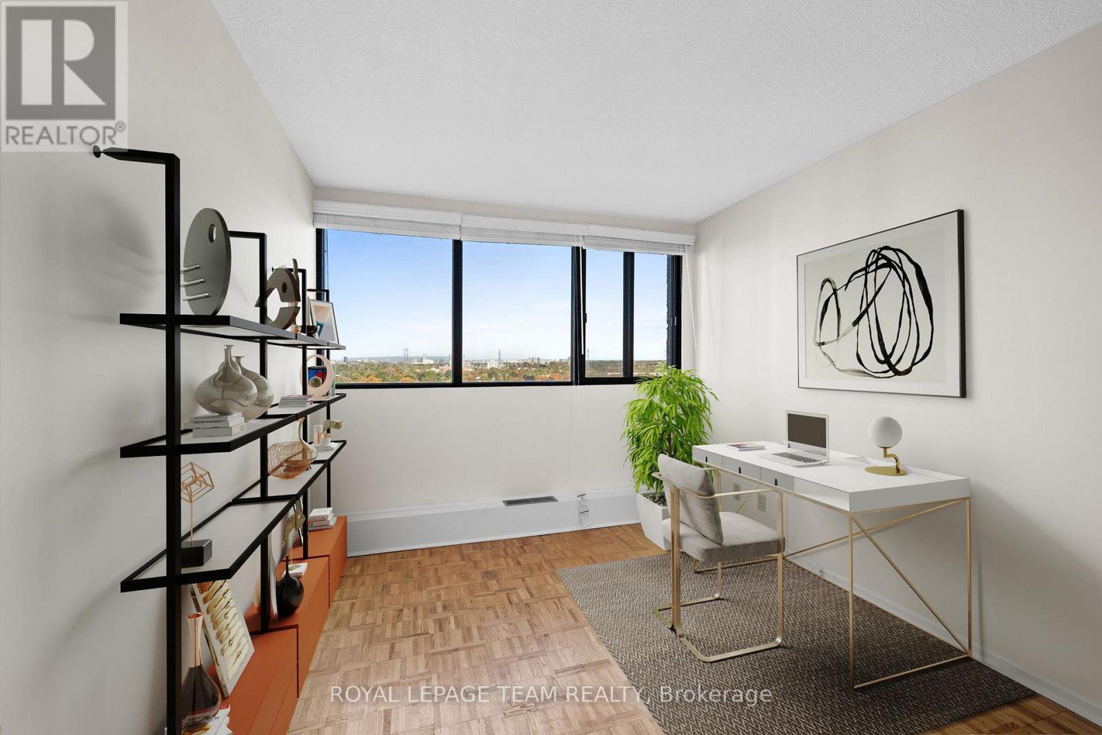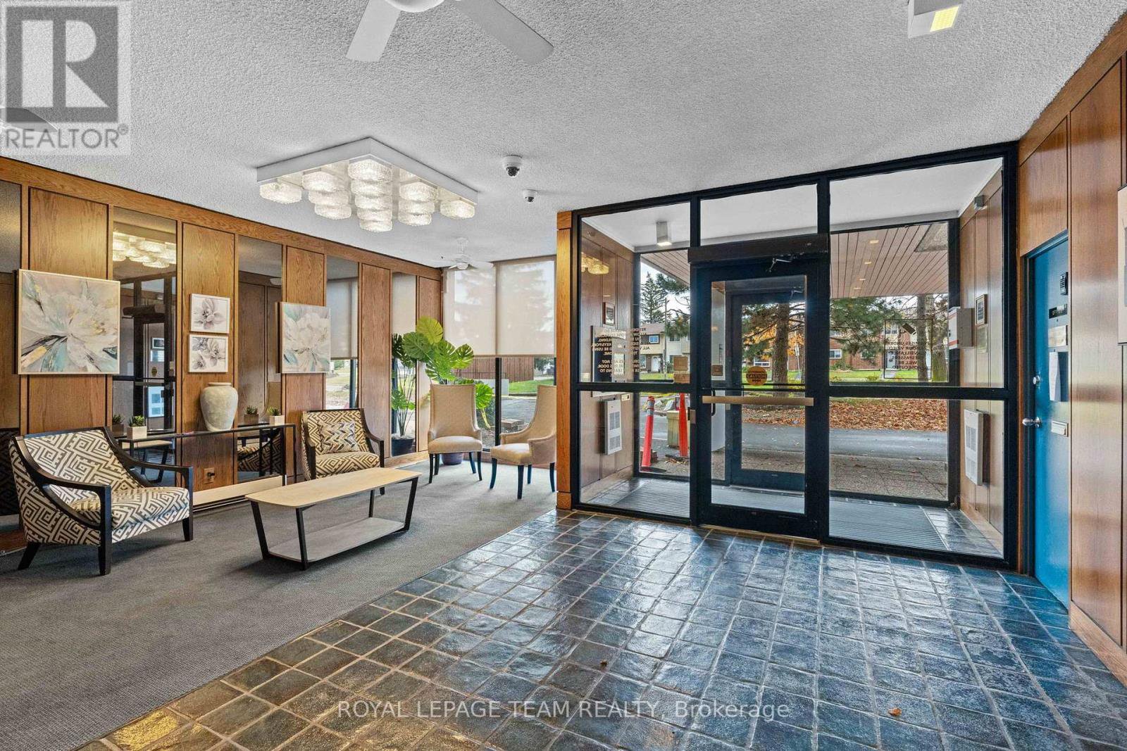 Welcome to Strathmore Towers! Beautifully maintained and perfectly located, this spacious 2-bed, 1-bath condo offers exceptional walkability just steps to South Keys Shopping Centre, restaurants, banking, coffee shops, and everyday essentials. The nearby LRT Transitway provides quick access to downtown, Carleton University, and the University of Ottawa, making this a truly convenient and connected lifestyle. Inside, a welcoming foyer with ceramic tile flooring leads to a bright, open living and dining area with rich parquet flooring and large windows that fill the space with natural light. A generous balcony extends your living area outdoors perfect for morning coffee or evening relaxation. The updated kitchen features raised-panel oak cabinetry, stainless-steel appliances (stove, dishwasher, hood fan), a white refrigerator, and an additional section of upper and lower cabinets for extra storage and workspace. A stacked washer and dryer are neatly tucked behind cabinetry. Two spacious bedrooms offer excellent furniture placement, complemented by an updated bath with a large vanity, oak cabinetry, and standalone shower. A generous linen/storage closet in the hallway plus a large storage room near the entrance provide ample space. Enjoy superb amenities including an outdoor pool, sauna, party room, guest suite, billiards room, and workshop. Condo fees include heat, hydro, water, and building insurance, plus one underground parking space. Immediate occupancy available. No pets and no smoking in unit, balcony or grounds. 24-hour irrevocable on all offers.