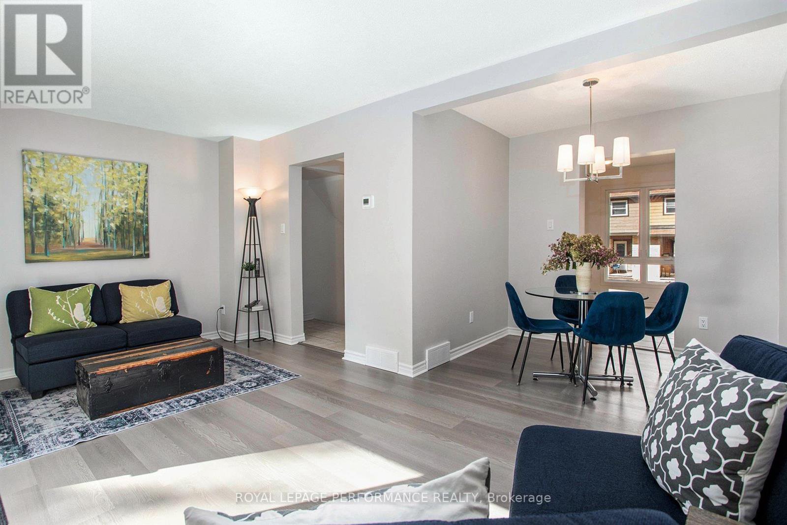This charming, freshly painted three-bedroom condo townhouse offers a fantastic opportunity for both first-time homebuyers and investors alike. Nestled on a peaceful street, it provides convenient access to the highway and the upcoming Jeanne D'Arc LRT station, along with a variety of amenities such as parks, schools, restaurants, and shopping. The main level boasts a bright, open-concept living and dining area, complete with a patio door that opens to a private backyard with no rear neighbors. The kitchen has been modernized with new stainless steel appliances and is thoughtfully designed for functionality. On the second floor, you'll find a spacious primary bedroom filled with natural light, alongside two additional bedrooms and an updated 4-piece bathroom. The finished basement adds valuable living space, featuring a family room with brand-new carpeting, a powder room, a laundry area, and plenty of storage. Additionally, you will appreciate the convenience of parking in your own front driveway. Recent updates include: Furnace and A/C (2025), Fridge/Stove/Hood fan (2025), Flooring in the Living/Dining Room (2025), Basement and stairs carpet (2025), Upstairs bathroom sink and new tub surround (2025), Basement bathroom sink (2025), Kitchen countertop (2024).