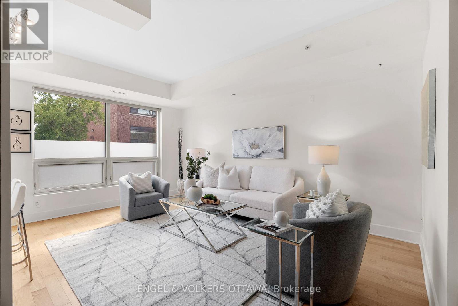 Welcome to 390 Booth Street #106 at Z6 Urban Lofts! Ideally located in Ottawa's West Centre Town, this boutique condo offers the perfect blend of modern design and vibrant city living. Steps from Little Italy, Chinatown, Hintonburg, and the Pimisi LRT station, you'll enjoy award-winning restaurants, cafes, shops, and transit right at your doorstep. This spacious one-bedroom unit features soaring 9-foot ceilings and an open-concept layout with hardwood floors throughout. The sleek kitchen is equipped with stainless steel appliances, ample counter space, and a breakfast bar that flows seamlessly into the living area perfect for entertaining or unwinding at home. The generous bedroom offers a comfortable retreat, a large closet, and a 3-piece bathroom. Additional highlights include in-unit laundry, central air, and two storage lockers. Don't miss this fantastic opportunity to experience the best of urban living in Ottawa!