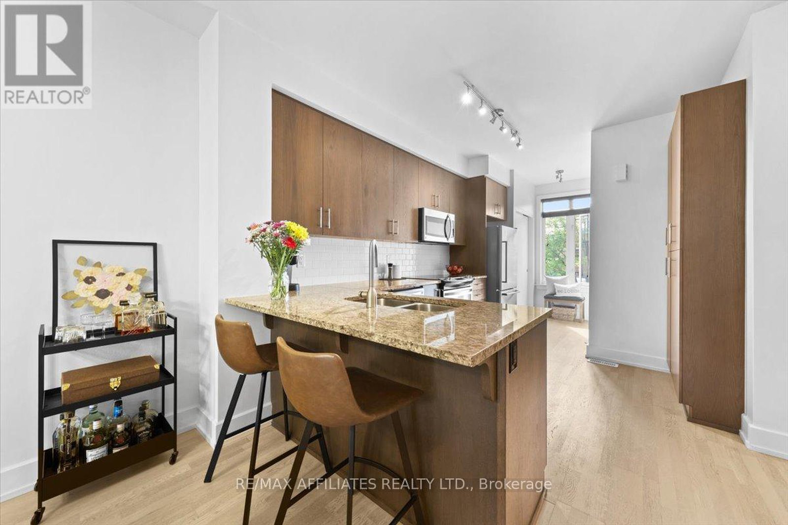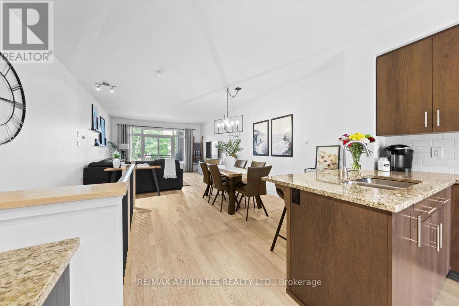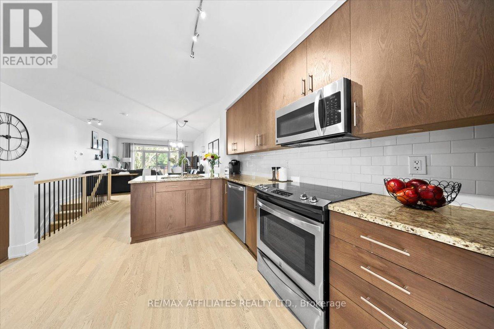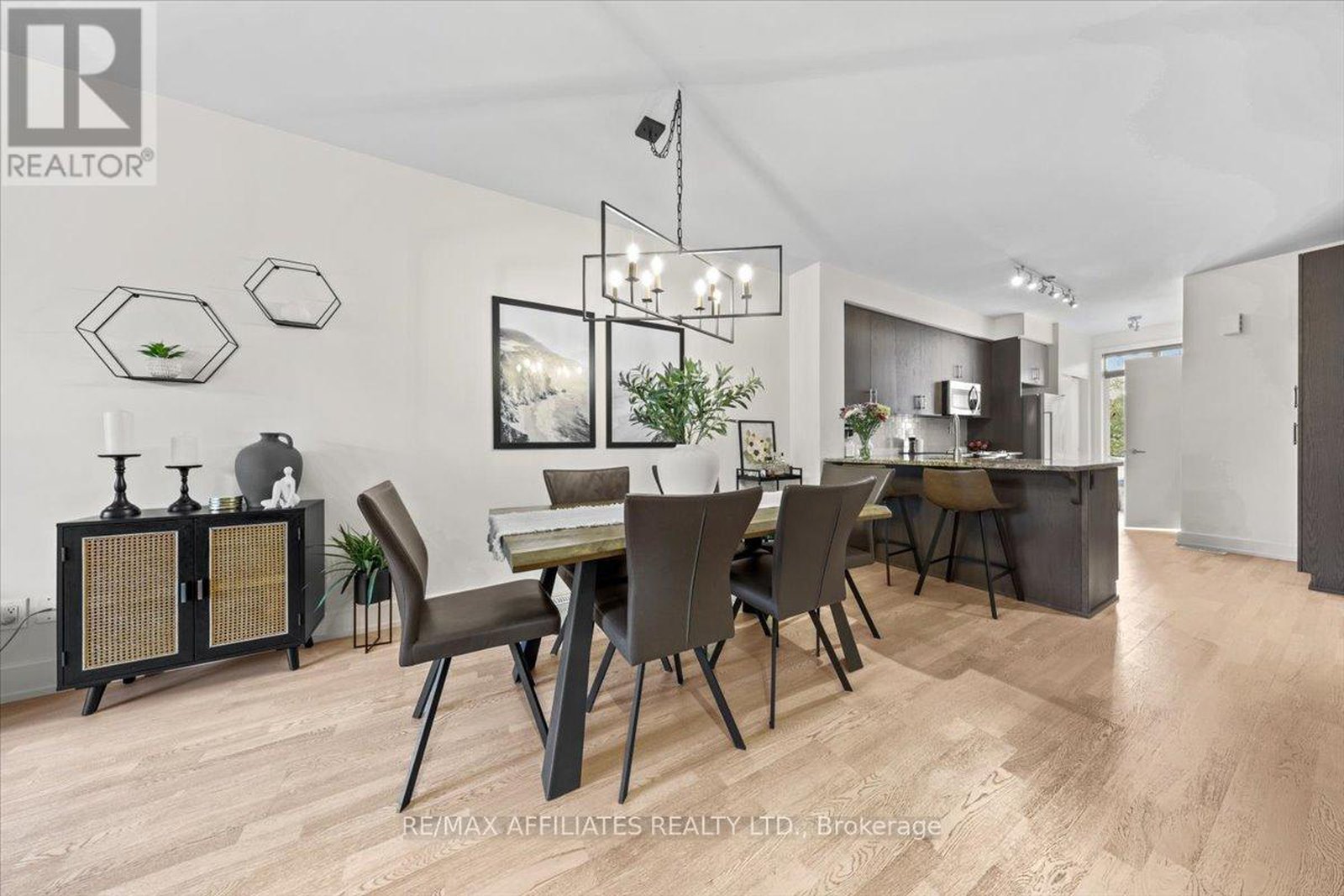 Exclusive 2 Owned parking! 2 bedroom, 2.5 bathroom walk-up style condo! Open concept main floor with 10ft ceilings, elevating the home experience. Large east-to-west-facing windows allow for ample natural light. The powder room is tucked away around the main entrance. Kitchen w/ granite counter tops, a white horizontal subway tile backsplash, stainless steel appliances, ample floor-to-ceiling cabinetry, complemented by a breakfast bar and Pantry. Open great room with ample space for hosting and entertaining, as well as dining and living areas. Patio doors onto a composite rear deck with a BBQ on a Natural-Gas Hook-Up. Both spacious bedrooms feature large closets and are designed for comfortable living. In-Unit laundry. Primary bedroom w/ a 3-piece ensuite w/ oversized vanity and glass shower. 4-piece main bathroom nearing secondary bedroom. Sought-after neighbourhood of Chapel Hill North near walking trails, dog park, transit, excellent schools, groceries and more. Built by award-winning Domicile.