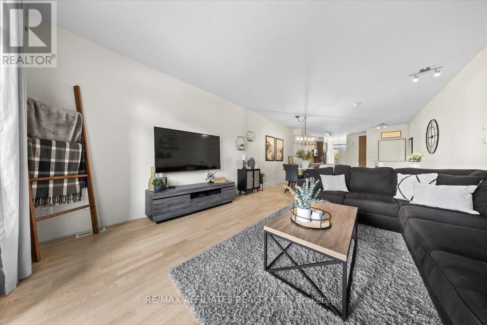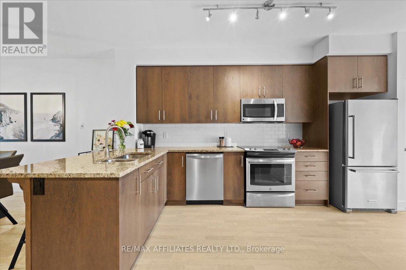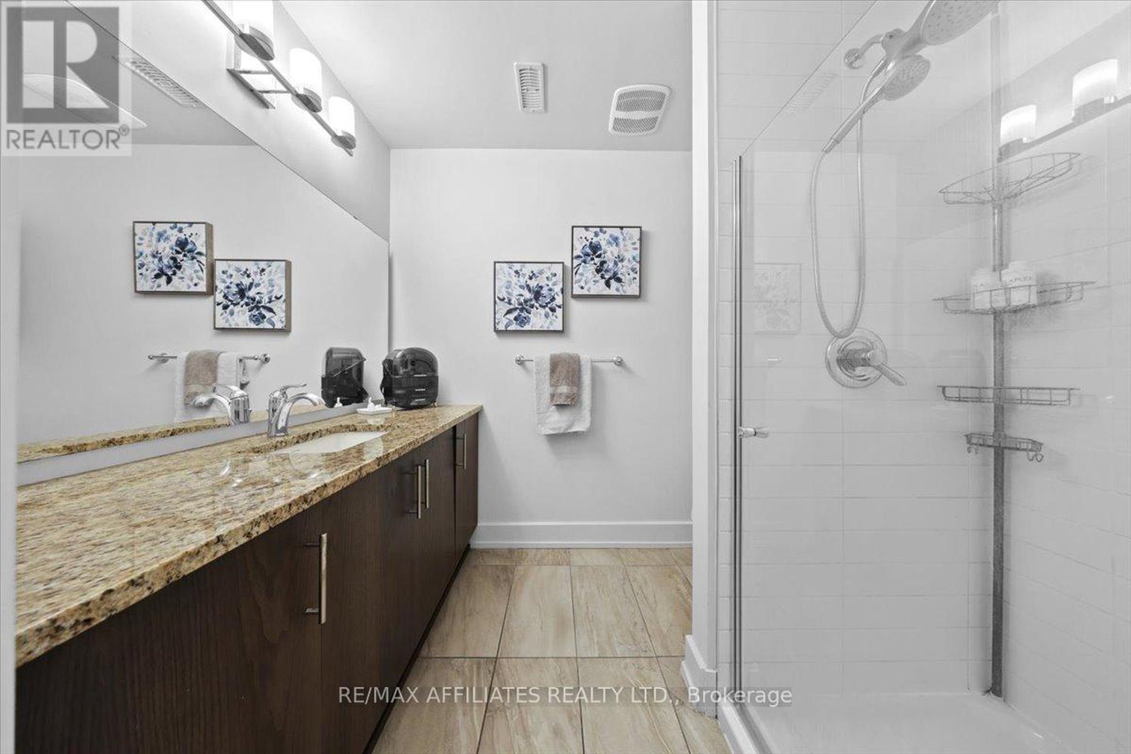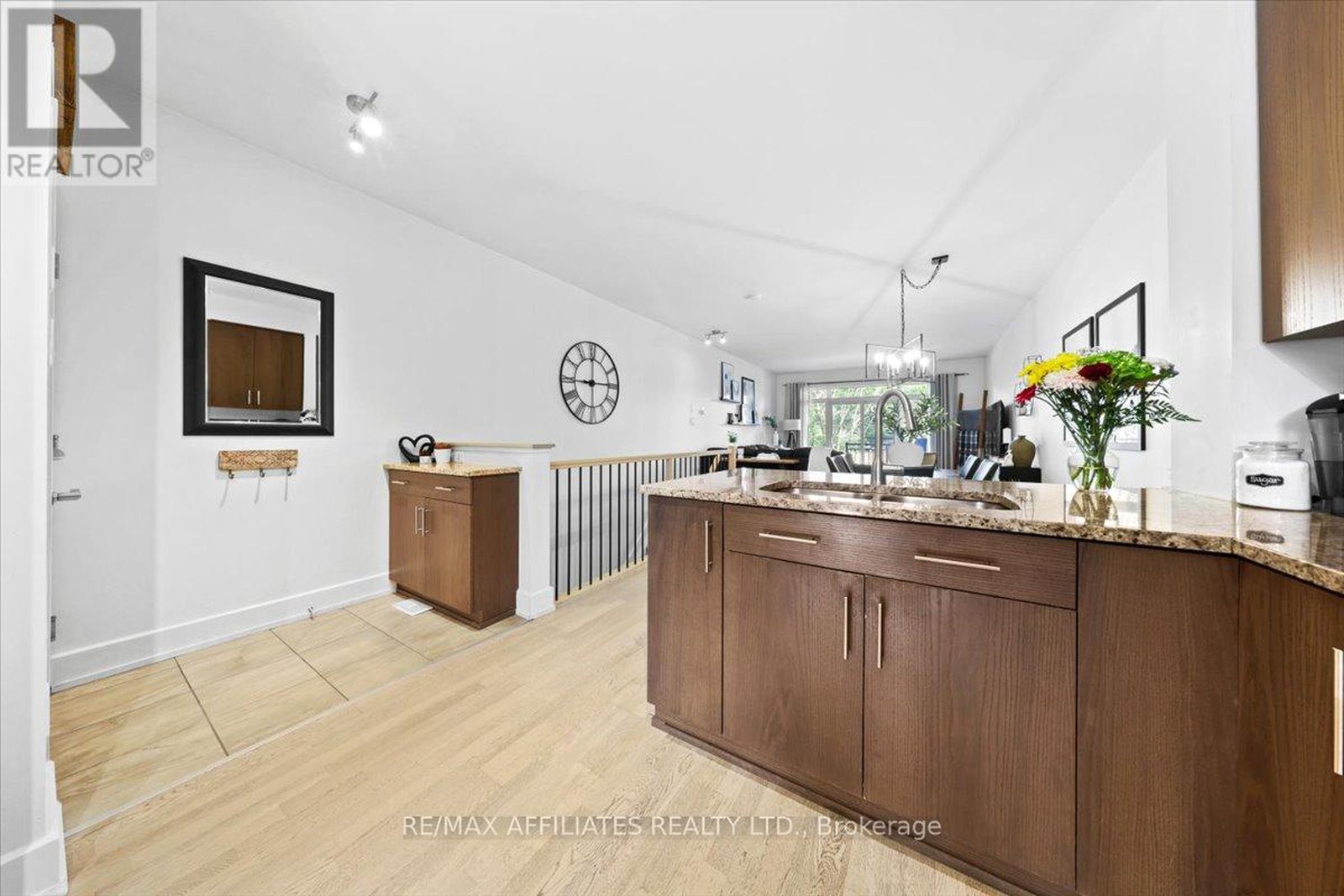 Exclusive 2 Owned parking! 2 bedroom, 2.5 bathroom walk-up style condo! Open concept main floor with 10ft ceilings, elevating the home experience. Large east-to-west-facing windows allow for ample natural light. The powder room is tucked away around the main entrance. Kitchen w/ granite counter tops, a white horizontal subway tile backsplash, stainless steel appliances, ample floor-to-ceiling cabinetry, complemented by a breakfast bar and Pantry. Open great room with ample space for hosting and entertaining, as well as dining and living areas. Patio doors onto a composite rear deck with a BBQ on a Natural-Gas Hook-Up. Both spacious bedrooms feature large closets and are designed for comfortable living. In-Unit laundry. Primary bedroom w/ a 3-piece ensuite w/ oversized vanity and glass shower. 4-piece main bathroom nearing secondary bedroom. Sought-after neighbourhood of Chapel Hill North near walking trails, dog park, transit, excellent schools, groceries and more. Built by award-winning Domicile.