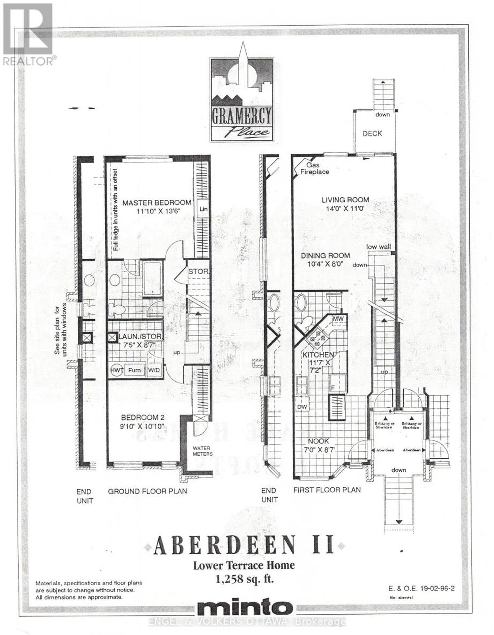 Minto built townhome with 1250 square feet over two floors, 2 bedrooms, 1.5 bathrooms. Quiet locale, in the heart of downtown Ottawa, this home has much to offer. This stylish and bright stacked urban terrace home is perfect for entertaining and everyday living. Hardwood flooring and ceramic on the main level. Sunflooded living/dining room is warmed by a gas fireplace, and sliding glass doors open to a rear terrace, perfect for summer BBQ's and or sitting out and enjoying a morning coffee. The galley style kitchen has good counter space and lots of cabinets/storage, is great for meal prep and offers a nice size separate eating area. The lower level houses the primary bedroom, with excellent closet space, another good sized bedroom and a full bathroom. Laundry room and storage is also located on this level. LRT, Elgin Street, Parliament Hill and Bank Street are all close at hand. Walk everywhere! Restaurants, shopping, grocery stores - Farm Boy and the new Food Basics are all walkable. Very low monthly condo fees. A really nice enclave of homes in a great community. Ease of ownership, low maintenance living. Freshly painted and cleaned and ready for a new owner. Low condo Fees. Floorplan attached. Enjoy urban living at its best!