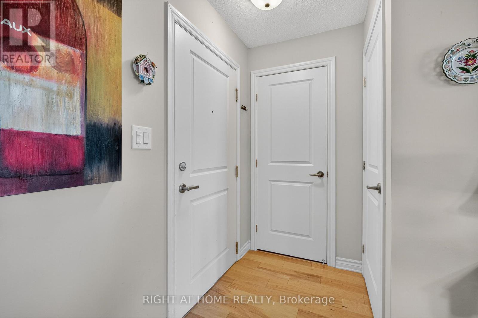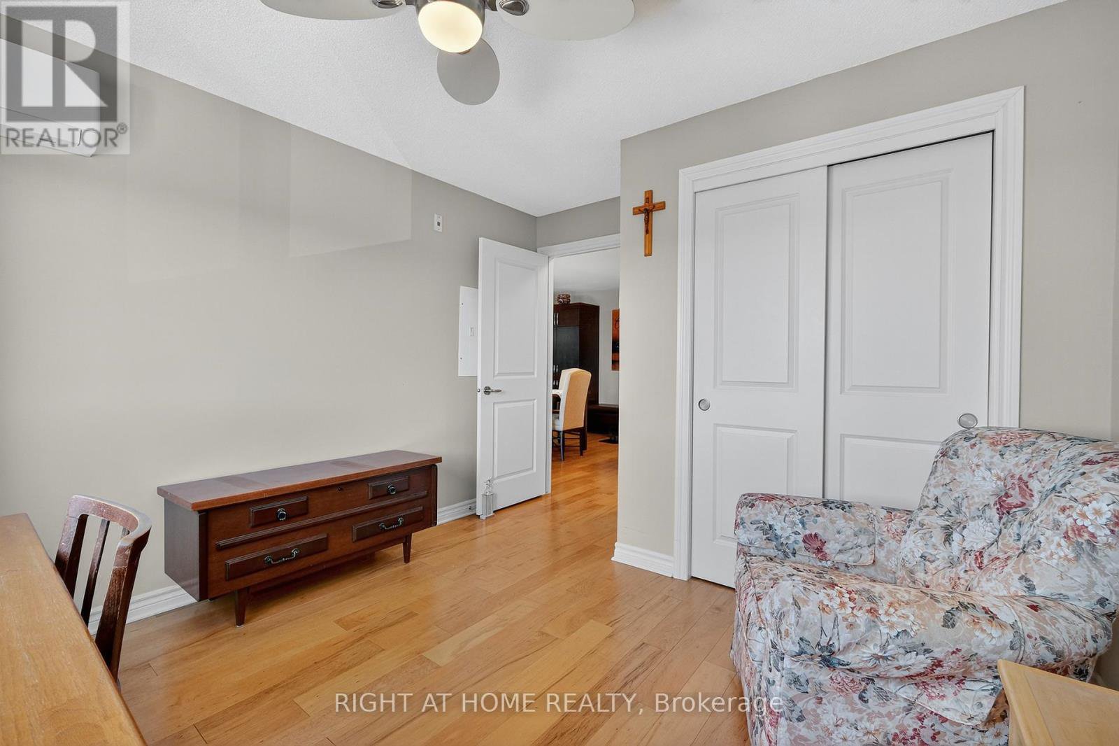 Immaculate 2 bedroom / 2 bath condo in one of the most desired buildings in Orleans, Elevator in building, heated underground parking, located on the 3rd floor 2 doors down from the elevator. Open concept living rm dining rm and Kitchen area, Wood floors-no carpet, Radiant floor heating and water included in condo fees, three (3) New AC wall units with remotes and outside main AC unit 2024, Master bedroom has an ensuite bathroom with new walk in Ceramic shower with Rainfall shower head and Glass sliding door, a large walk in closet. Both bathrooms have unique wooden storage units above the toilets. Kitchen has an additional custom extra-large and deep pantry with slider shelves, ample kitchen cabinets with Pot and pan drawers, extended countertop for breakfast bar with stools, stainless steel appliances included, built in microwave, dishwasher. Additional large storage closet in unit near main bathroom, separate laundry room in unit with stacked washer and Dryer. includes 3 ceilings fans, Balcony with patio door. Underground parking space #306 is conveniently located adjacent to elevator, the garage parking space also has an adjoining large storage room.