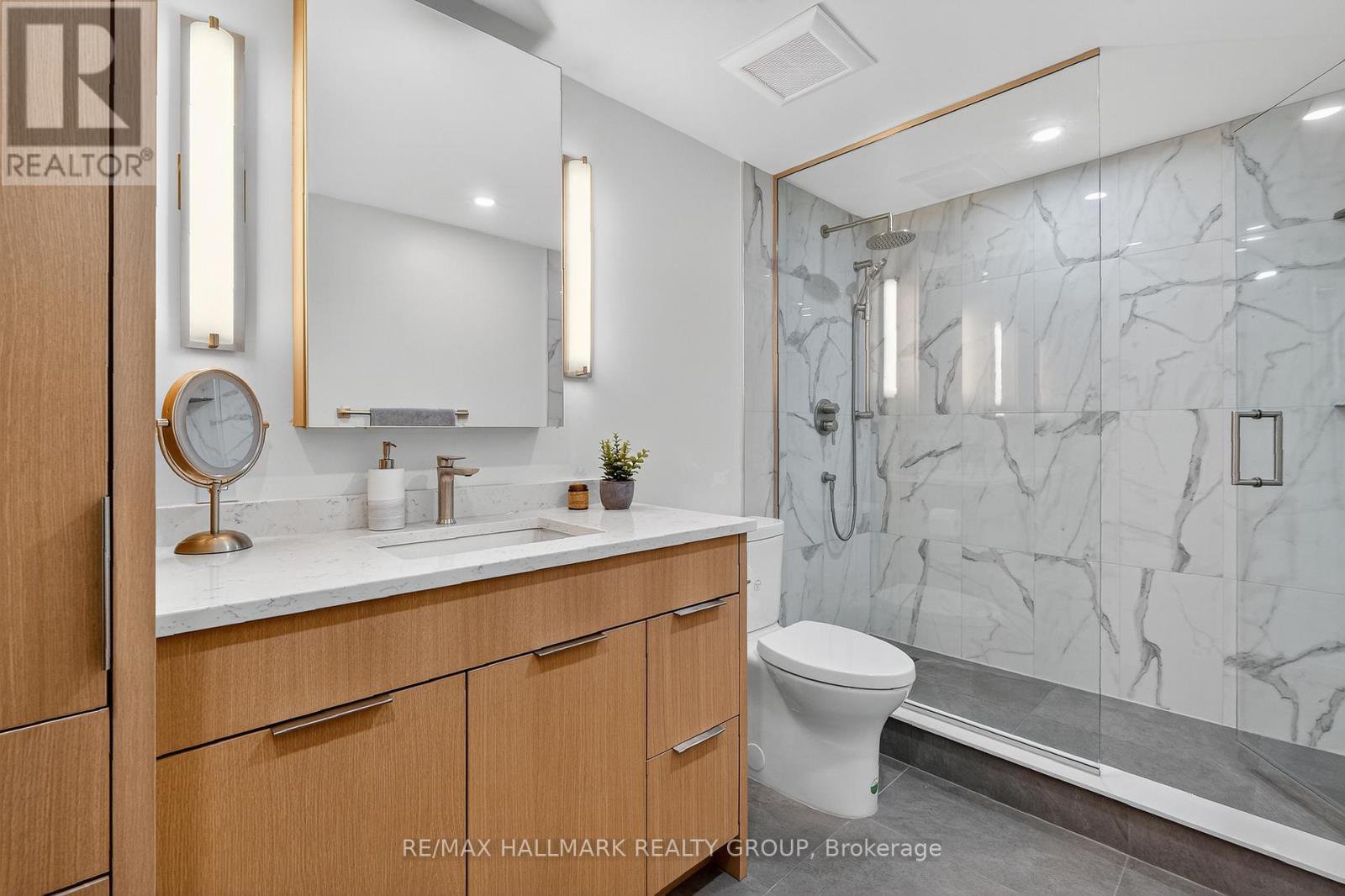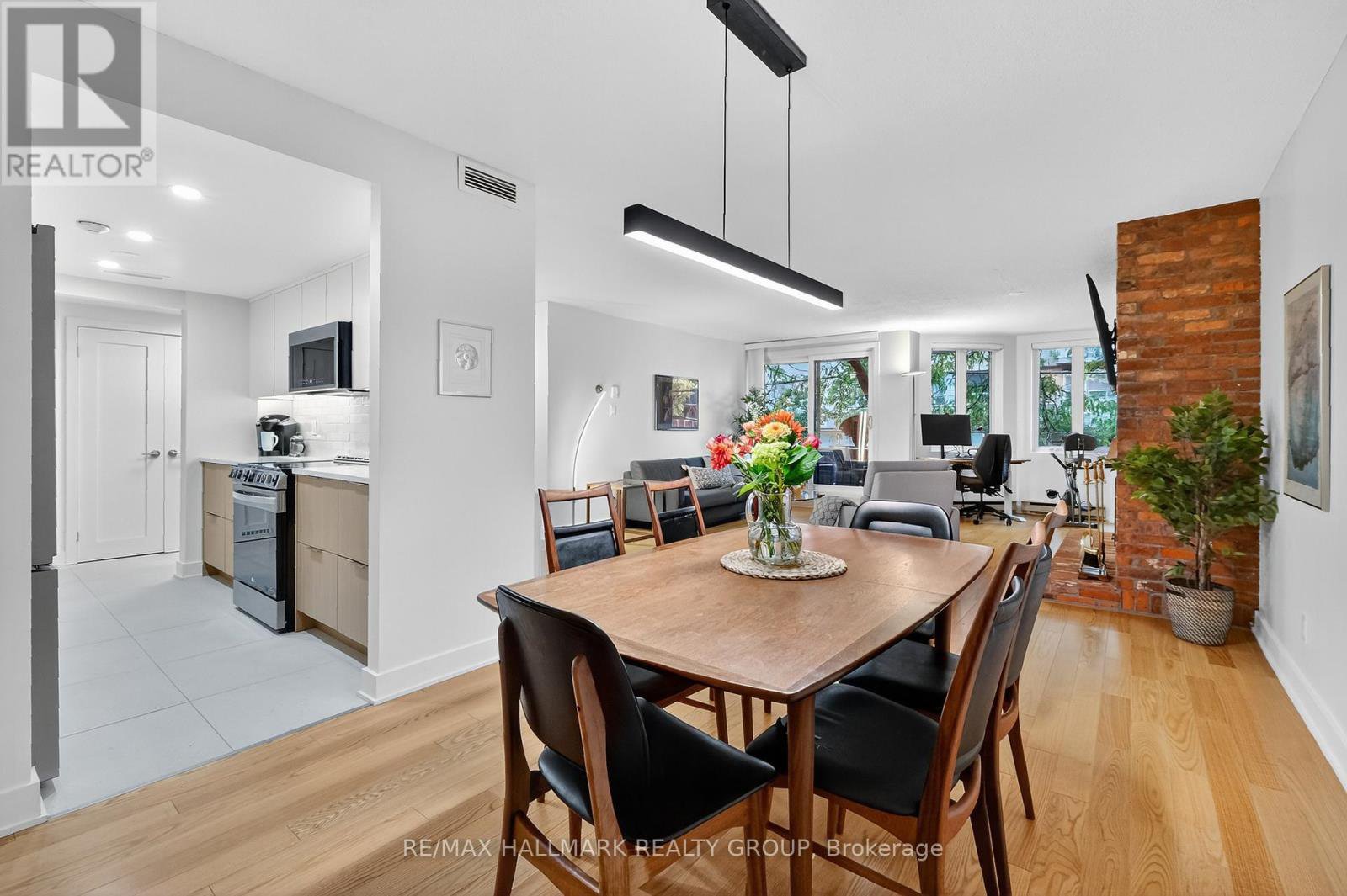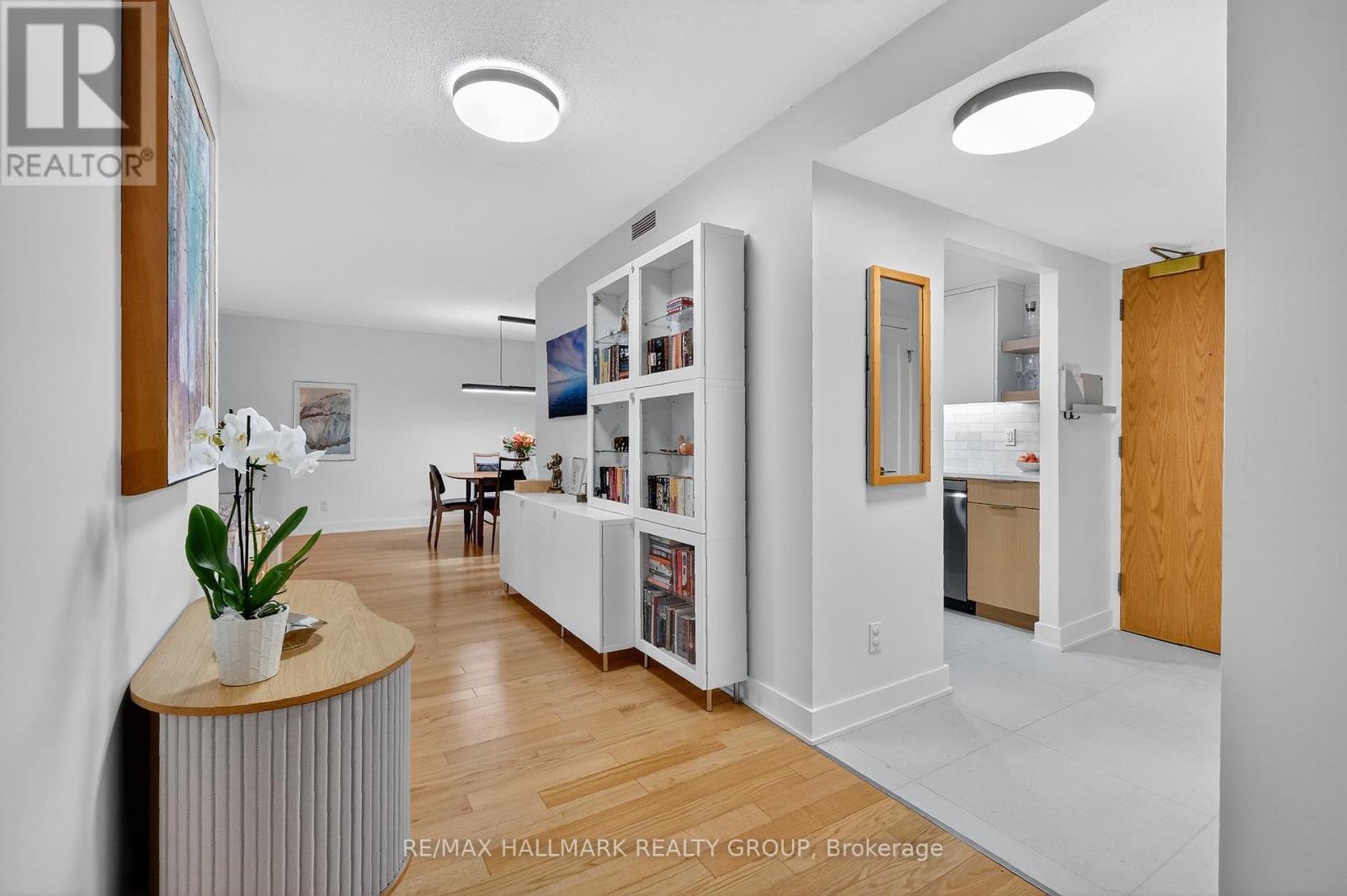 Discover a spacious, beautifully updated two-bedroom, two-bathroom Centertown condo that truly offers room to breathe. This inviting home features an expansive living and dining area, complete with a cozy reading or office nook tucked beside a charming wood-burning fireplace the perfect spot to unwind with a good book. Step into a welcoming foyer that opens to a completely renovated galley-style kitchen, showcasing contemporary finishes, sleek cabinetry, and excellent counter space. The primary ensuite bathroom has also been fully updated, featuring modern fixtures and elegant design details that bring a touch of luxury to everyday living. Both bedrooms are generously sized, easily accommodating your bed, dressers, and nightstands. . Ideally located next to Jack Purcell Park and within easy walking distance of Elgin Street, Bank Street, and the Rideau Canal, this home combines space, style, and urban convenience in one exceptional package.