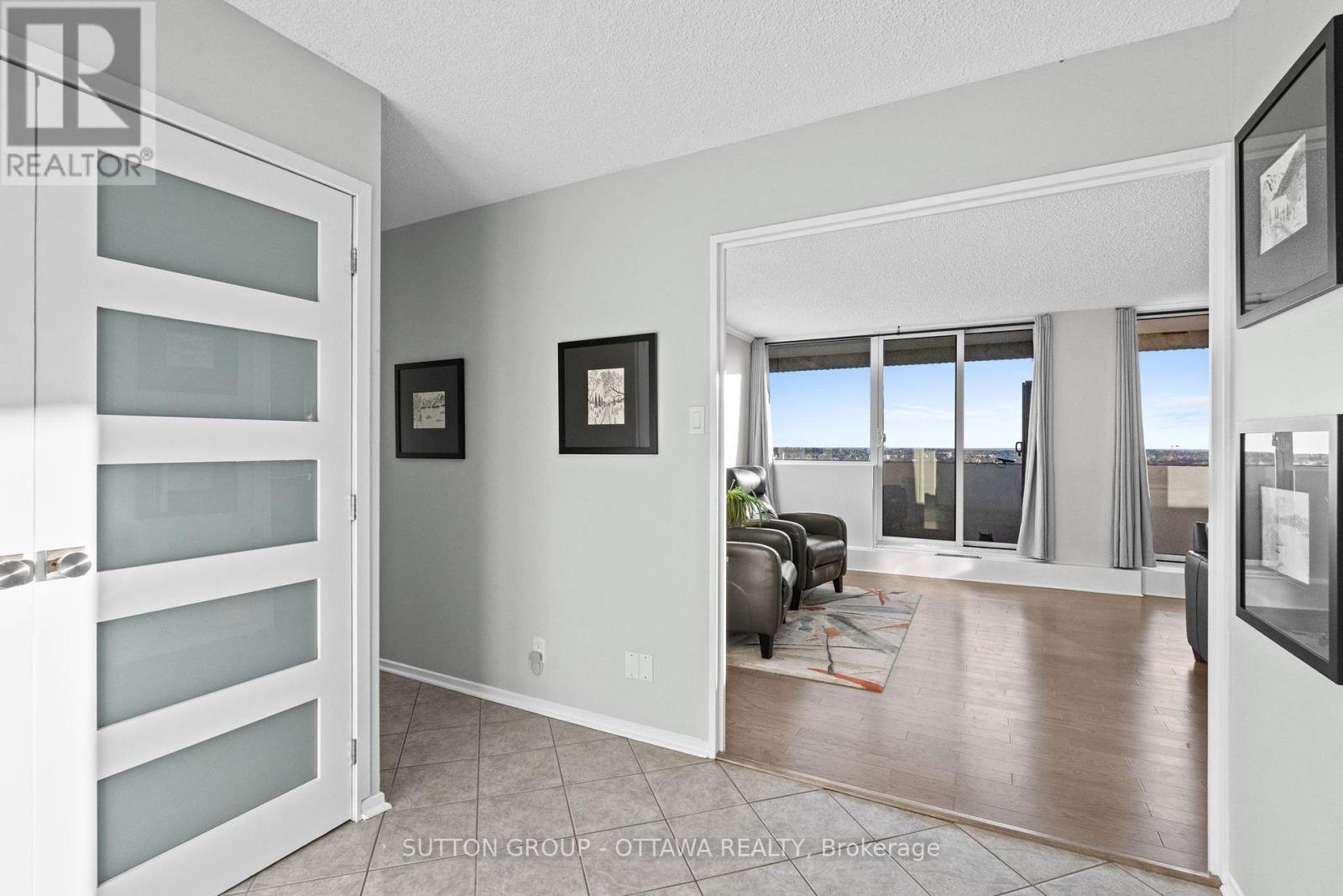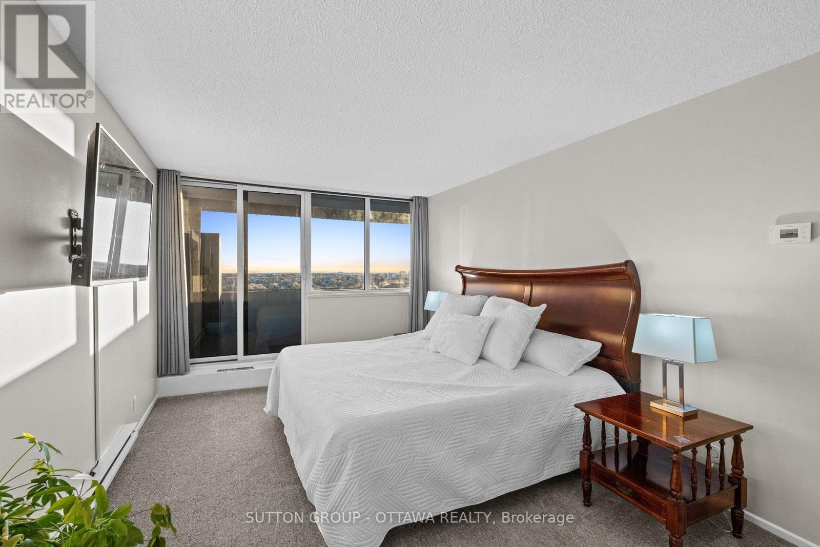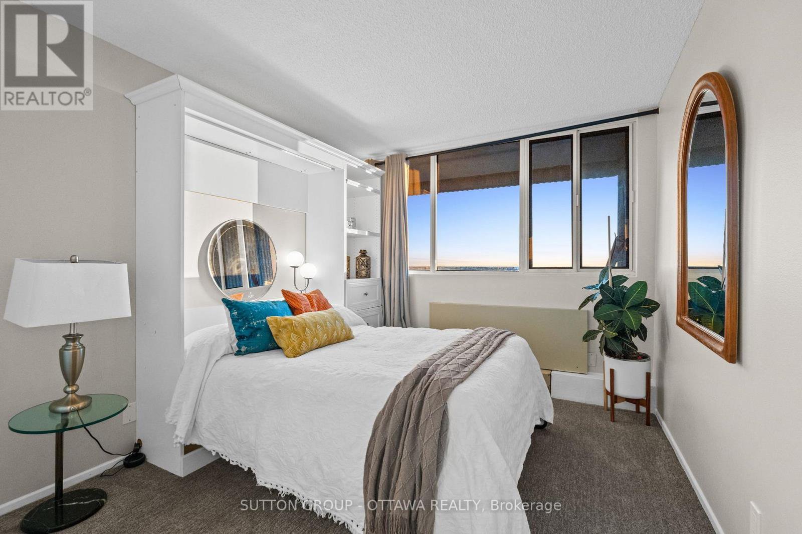Welcome to true penthouse living an expansive 1750 sq.ft. skyline residence offering the space and comfort of a medium-sized home, without the hidden costs, upkeep, or stress of traditional ownership. A rare, oversized suite of this caliber in this condition is virtually impossible to find. Attainable luxury when you consider the scale, and inclusions in this sought after building. Everything is relative and this penthouse lifestyle delivers unmatched value. Enjoy $30,000 in upgraded sound-deadening windows and patio doors, wall to wall glass across a stunning open-concept living area, and three private balconies totalling 250 sq.ft. of outdoor space. The modern finishes, stylish appliances, and natural light create a refined yet relaxed atmosphere perfect for entertaining or quiet evenings above the city. This is a quiet, well-managed, high-security building with long-term owners and strong financials. Fees include heat, A/C, hydro, water, sewage, 24/7 on-site superintendents, garbage, storage, and two preferred parking spaces providing true cost certainty and ease of budgeting. Amenities feature a heated pool, sauna, guest suites, workshop, party/meeting room, and guest parking. Ideally located within walking distance to shops, dining, and transit (O-train rail and bus to downtown, the airport, and beyond).Penthouse living means peace of mind and freedom no snowblowers, roof repairs, or surprise maintenance just time and energy to invest in what matters most. Luxury, lifestyle, and lasting value all in one extraordinary penthouse. Pets under 25LBS allowed.