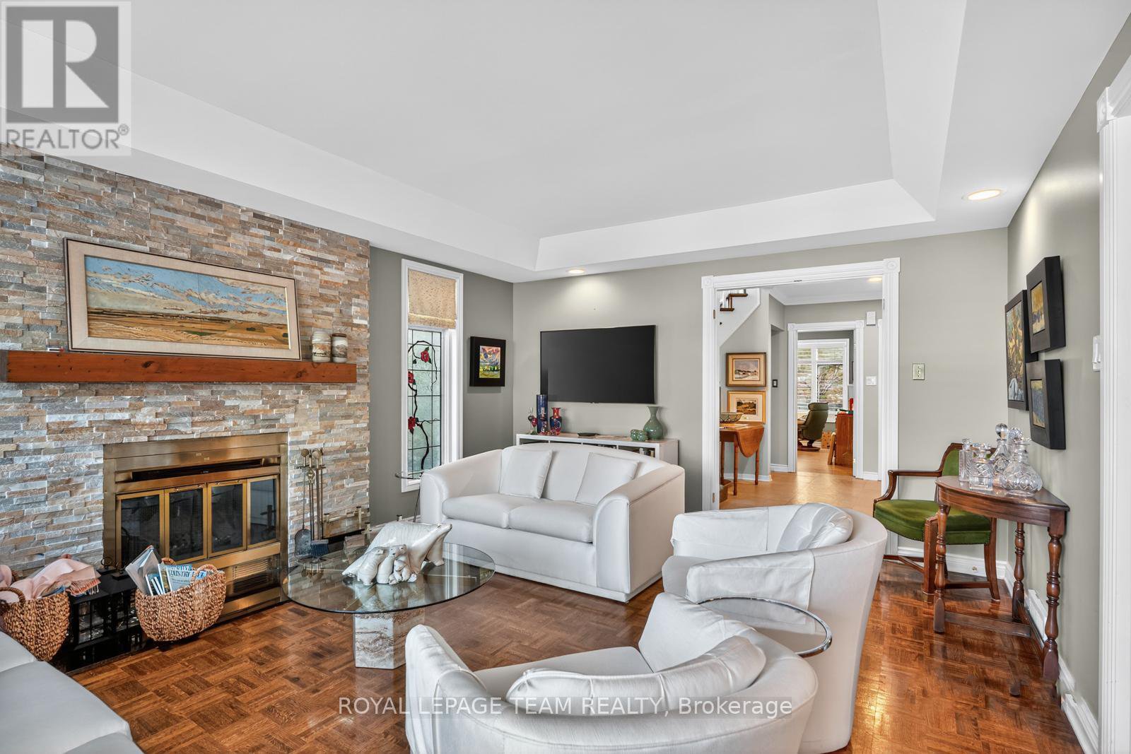 Set along a quiet, tree-lined court in Rockcliffe Park, 19 Bittern Court is a home of quiet sophistication where classic architecture, natural light, and cultivated tranquility converge. Steps from MacKay Lake, conservation area and the pond beyond, this elegant end-unit offers privacy, proportion, and timeless design. A sweeping circular staircase, stained-glass details, hardwood floors, and a wood-burning fireplace set a tone of understated grace. The main floor office provides calm versatility, while the dining room opens to a large covered terrace surrounded by treetops perfect for morning coffee or candlelit evenings.The bright kitchen blends pale cabinetry with granite counters; upstairs, three serene bedrooms include a tranquil primary suite with walk-in closet and ensuite bath.With beautifully maintained grounds and easy access to Beechwood Village, MacKay Lake trails, and good schools, 19 Bittern Court embodies impeccable luxury in Ottawas most distinguished enclave.