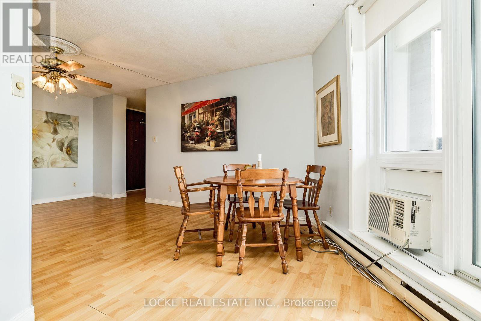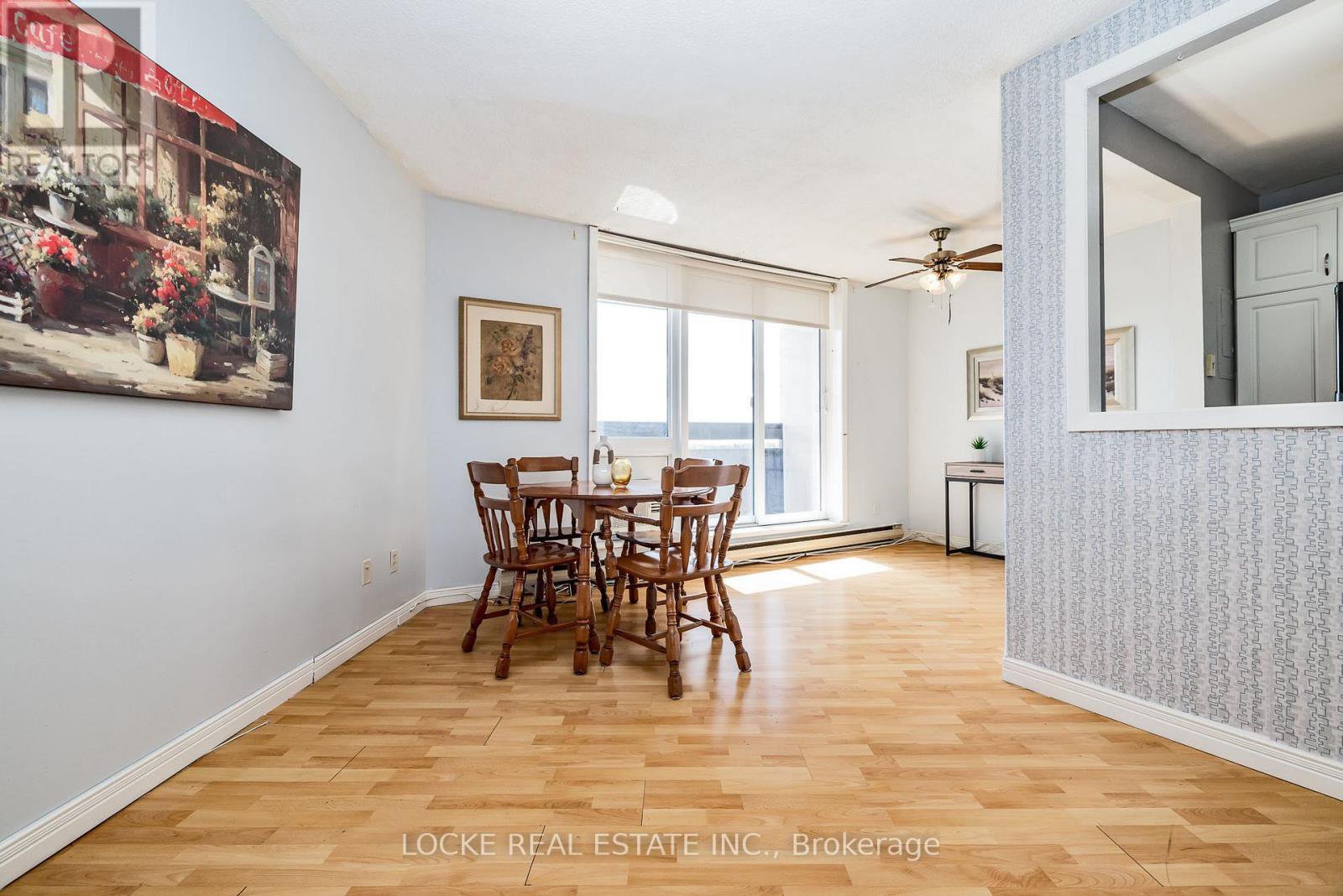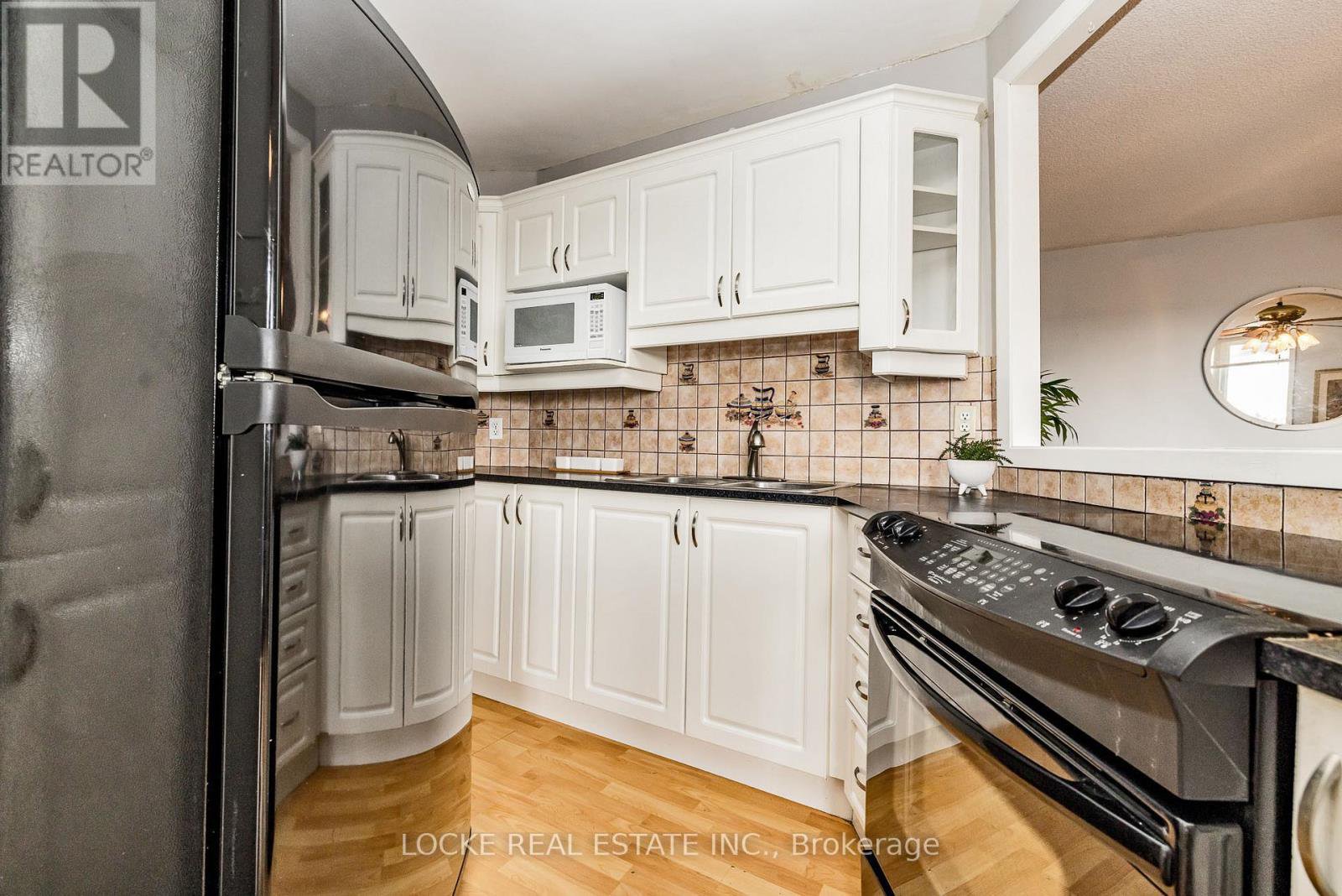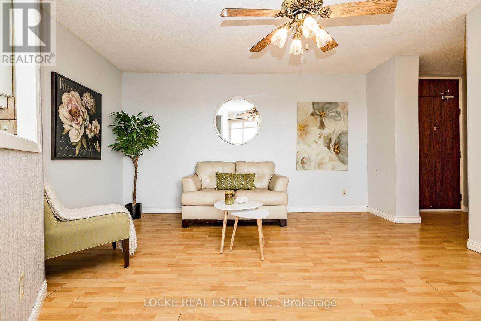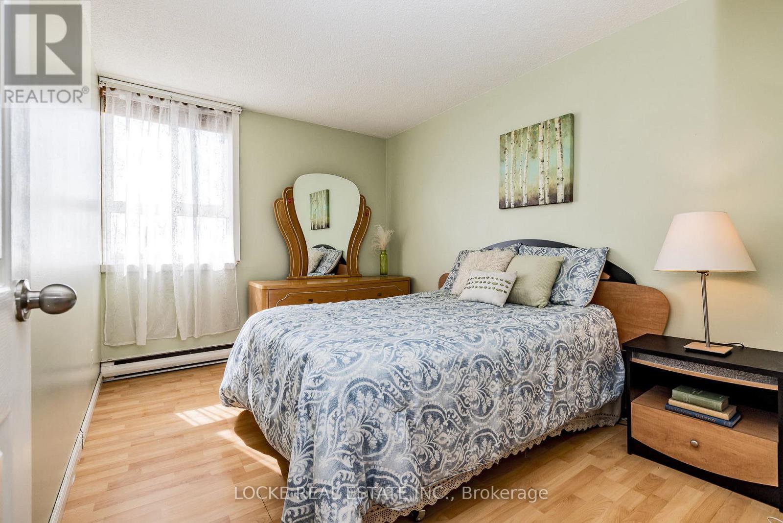 Welcome to this charming, south-facing 2-bed, 1-bath condo on the 9th floor, offering incredible value! Step out onto the spacious balcony and take in the views of mature trees. This bright and airy unit features vinyl flooring throughout and a renovated kitchen with ample cabinet space. Both bedrooms are generously sized, complete with roomy closets for all your storage needs. The unit also boasts an additional large storage room in the hallway equipped with built-in shelving for ultimate organization. The bathroom is both functional and spacious, offering plenty of storage options. Parking space is also included. This well-maintained building includes an indoor pool, sauna, exercise room, party room, tennis court, and more. Ideally located just steps away from public transit, Costco, a movie theatre, shopping, restaurants, and nearby greenspace, perfect for a relaxing walk. This condo is the perfect entry point into the market. Don't miss out on this fantastic opportunity!