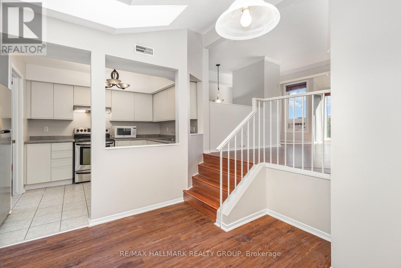 Welcome to this bright and spacious 2-bedroom upper-unit condo townhome in Nepean, offering a comfortable and convenient lifestyle in a fantastic location. Large windows fill the home with natural light, while laminate flooring flows throughout the space for a clean, cohesive look. The inviting living room features a wood-burning fireplace, crown moulding, and pot lights, creating a warm and welcoming atmosphere. A separate dining area provides plenty of room for family meals or casual entertaining. The well-equipped kitchen includes all appliances and has a handy laundry/utility room just off to the side for added convenience. The primary bedroom offers cheater access to the main bath, while a second bedroom and a powder room complete the home. Condo fees cover water and exterior maintenance, making for easy, low-maintenance living. Two parking spaces are also included. Perfectly located just minutes from public transit, walking paths, parks, the Nepean Sportsplex, Costco, Ottawa Hunt & Golf Club, Algonquin College, and a wide variety of shops, restaurants, and recreational options. Immediate possession available - move in and enjoy this bright and welcoming home today!