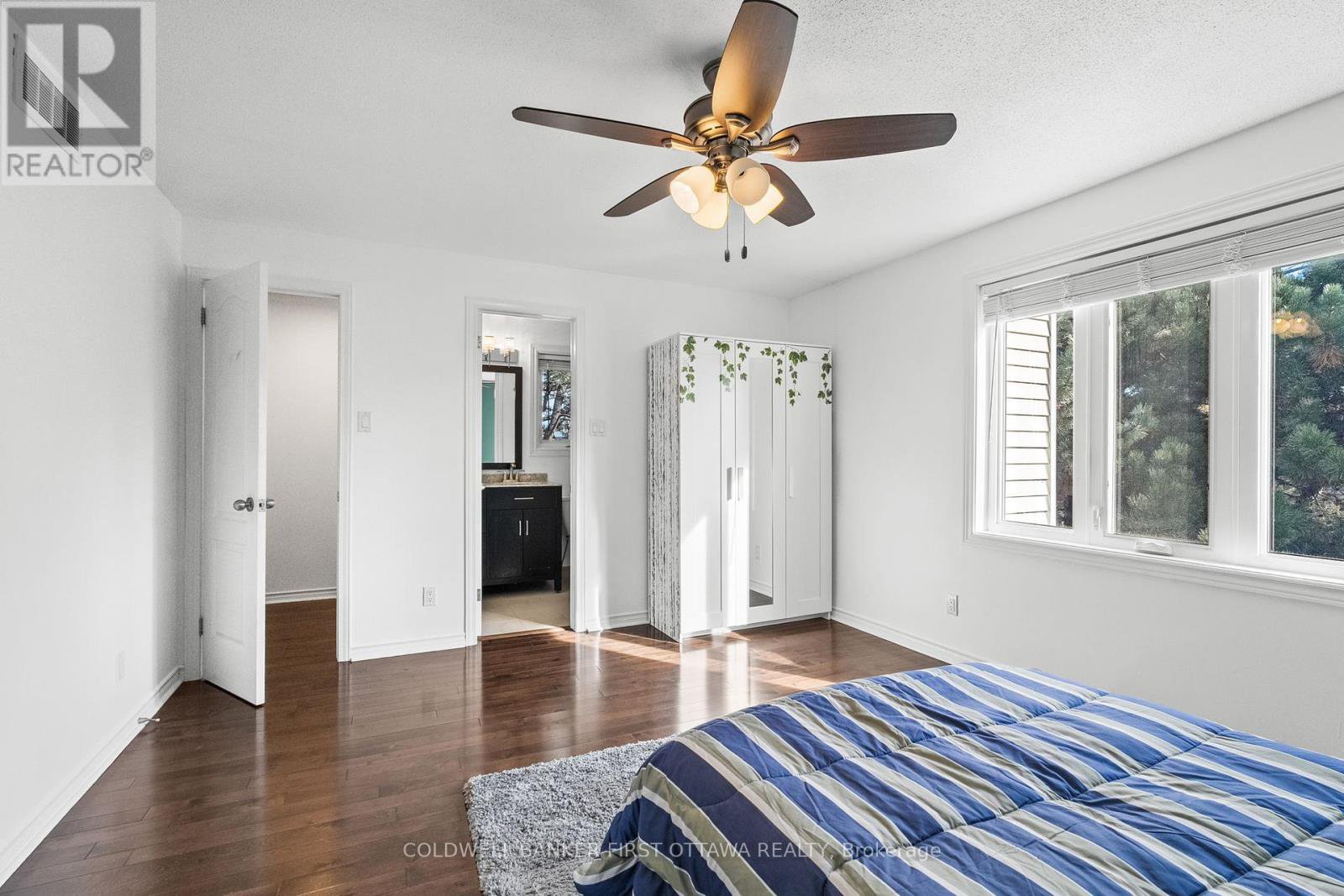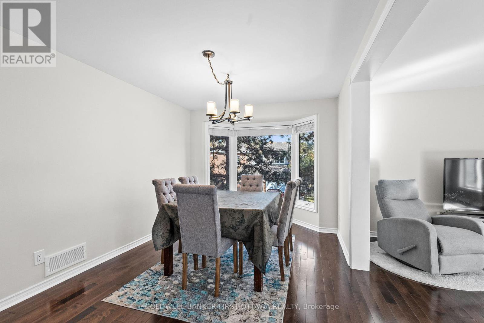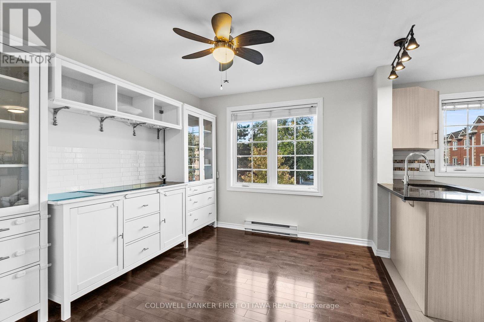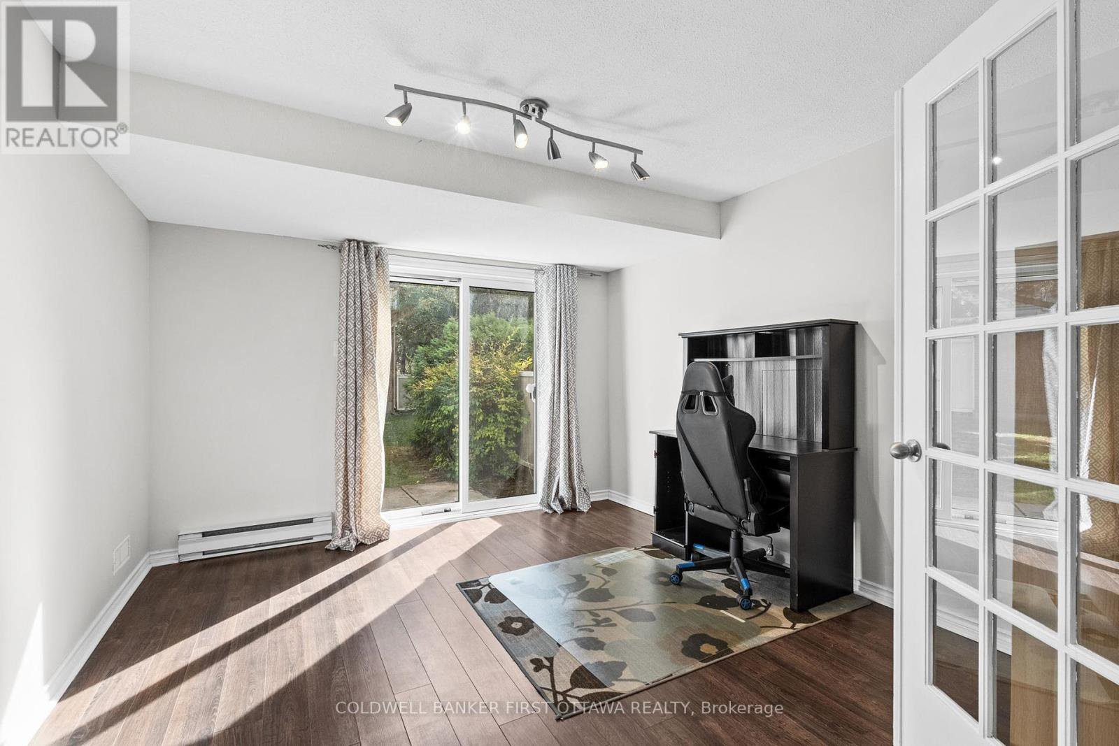 Welcome to this bright and beautifully maintained 3-bed, 3-bath condo townhouse located in the very central and always popular Centrepointe area! Tucked in on a quiet crescent, this END UNIT offers the perfect blend of comfort, convenience, and value, and is located close to Algonquin College, all the amenities of College Square, transit, and parks - including one just steps from the front door! The ground level has a big tiled foyer with an equally large closet, inside access to the garage, a convenient powder room and a den with french doors which works perfectly as a home office. You'll also find the furnace room with ample storage space and access to the tree covered yard space, perfect for entertaining and enjoying the seasons as they change. The hardwood stairs lead to the second level with a great open-concept living and dining area, also with hardwood floors, and filled with natural light from the big bay window. The updated eat-in kitchen features granite counters, SS appliances, convenient laundry closet, and a cozy breakfast nook with added storage. Upstairs, you'll find three spacious bedrooms (also with hwd floors - NO carpet anywhere here!), including a primary with a walk-in closet and 3pc ensuite with glass shower, and an updated full main bath. Not only will you enjoy the space and finishes offered inside, you'll love the location with everything you need just minutes away from your front step!