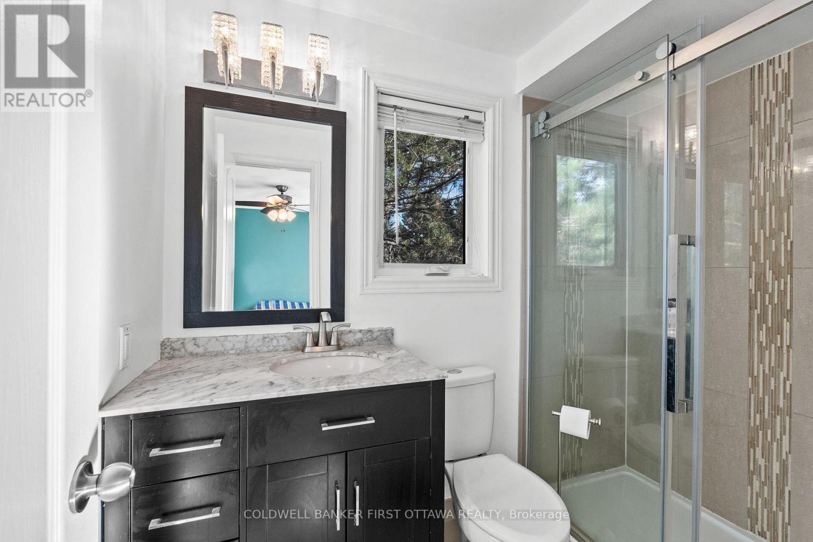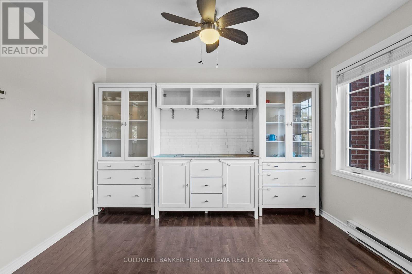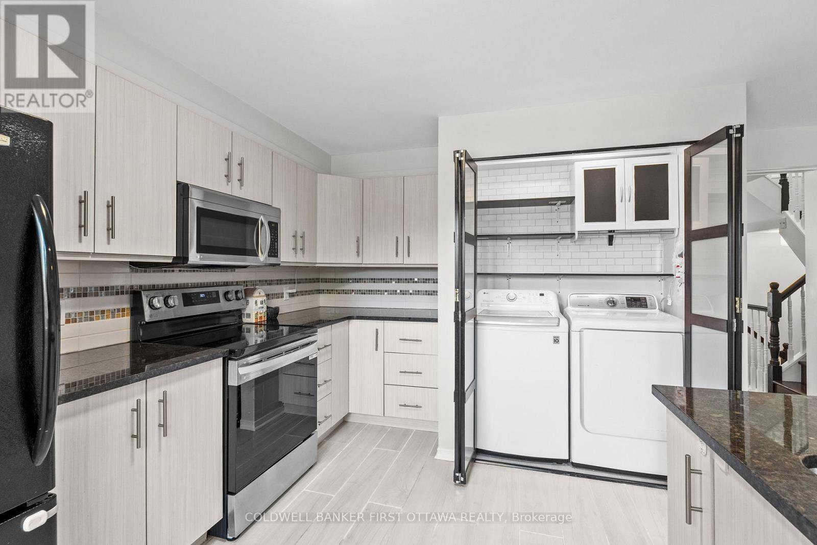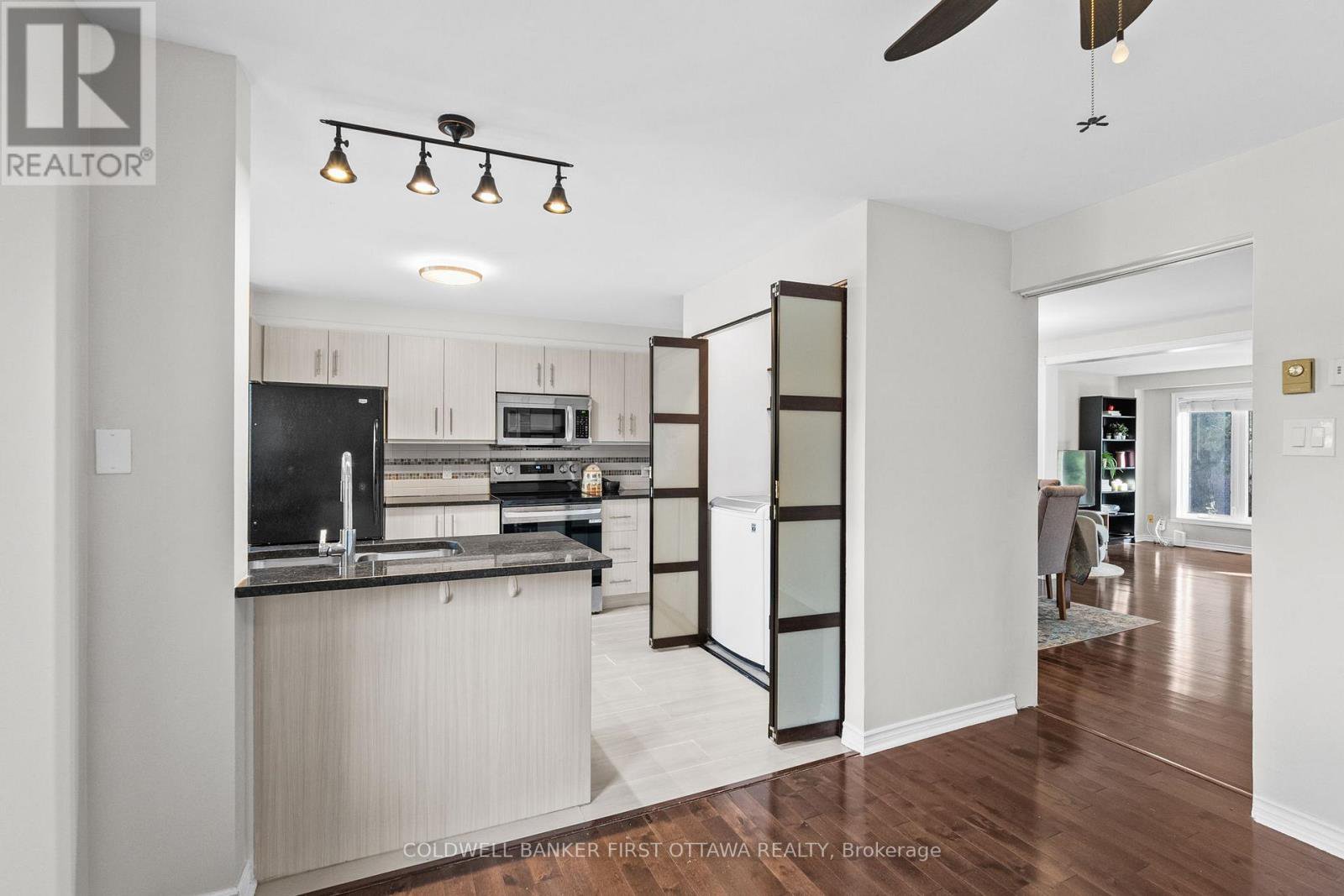Welcome to this bright and beautifully maintained 3-bed, 3-bath condo townhouse located in the very central and always popular Centrepointe area! Tucked in on a quiet crescent, this END UNIT offers the perfect blend of comfort, convenience, and value, and is located close to Algonquin College, all the amenities of College Square, transit, and parks - including one just steps from the front door! The ground level has a big tiled foyer with an equally large closet, inside access to the garage, a convenient powder room and a den with french doors which works perfectly as a home office. You'll also find the furnace room with ample storage space and access to the tree covered yard space, perfect for entertaining and enjoying the seasons as they change. The hardwood stairs lead to the second level with a great open-concept living and dining area, also with hardwood floors, and filled with natural light from the big bay window. The updated eat-in kitchen features granite counters, SS appliances, convenient laundry closet, and a cozy breakfast nook with added storage. Upstairs, you'll find three spacious bedrooms (also with hwd floors - NO carpet anywhere here!), including a primary with a walk-in closet and 3pc ensuite with glass shower, and an updated full main bath. Not only will you enjoy the space and finishes offered inside, you'll love the location with everything you need just minutes away from your front step!