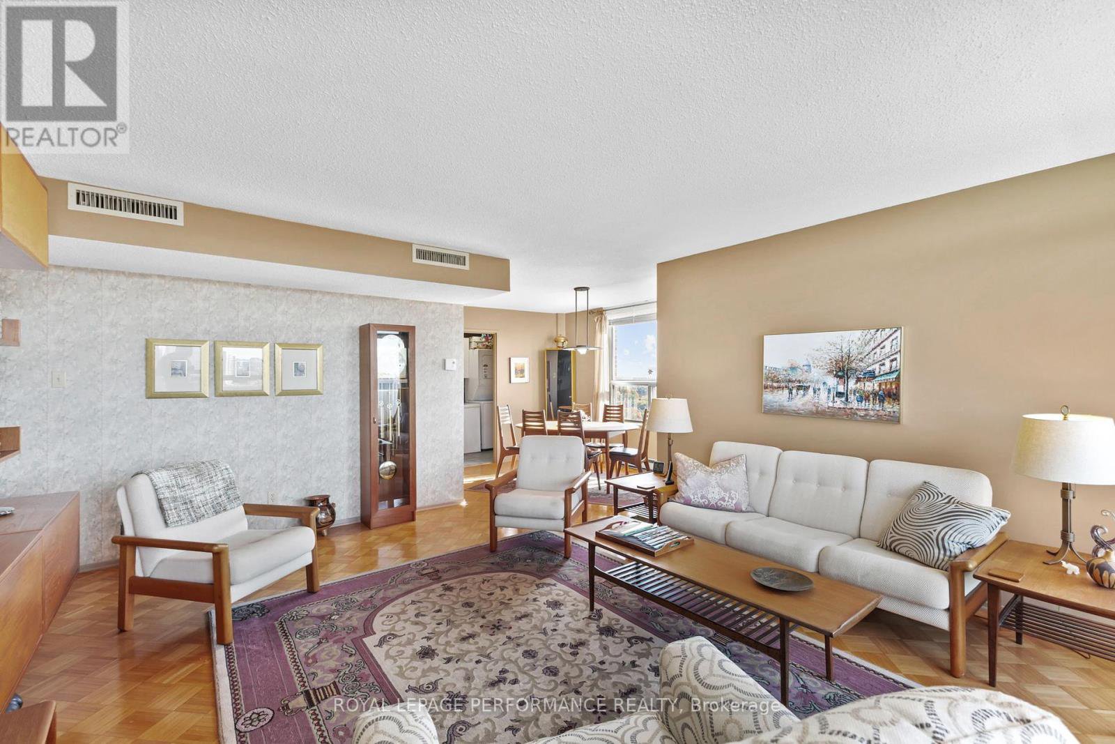 Wow! A move in ready condo that has been maintained with lots of pride of ownership. This 16th floor corner unit benefits from stunning southern & western exposure, allowing for plenty of natural light to flood the space for the majority of the day. As you step into the unit, you will be greeted by a spacious entrance that naturally flows into the updated kitchen that offers plenty of cabinetry & counter space. The dining and living rooms have been tastefully decorated in neutral tones and are both large spaces that are ready to host friends & family alike. As you head to the primary bedroom, you will be impressed with the size of the bedroom and amount of storage space. The ensuite bathroom has been updated to include a quality accessible/walk in bathtub. The secondary bedroom can be used whichever way you please, whether that is as a guest room, second living room, office or otherwise. The second bathroom has also been updated. The balcony is full depth for the entire width - a trait that is not very common in this building. You'll be able to enjoy your summer nights with a beautiful view of the sunsets on the balcony. | The unit has the exclusive use of TWO lockers, and one of the most convenient parking spaces that is just a few steps away from the parking garage access | The building offers very nice amenities such as an indoor pool, party room & rooftop terrace | Located just steps from the building, you will find public transit, park, groceries & more | Ensuite tub jets are sold "as is" as they have not been used in 10+ years. They were previously working, but have just not been used, therefore cannot be warranted.