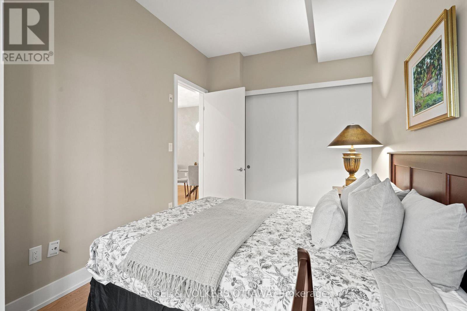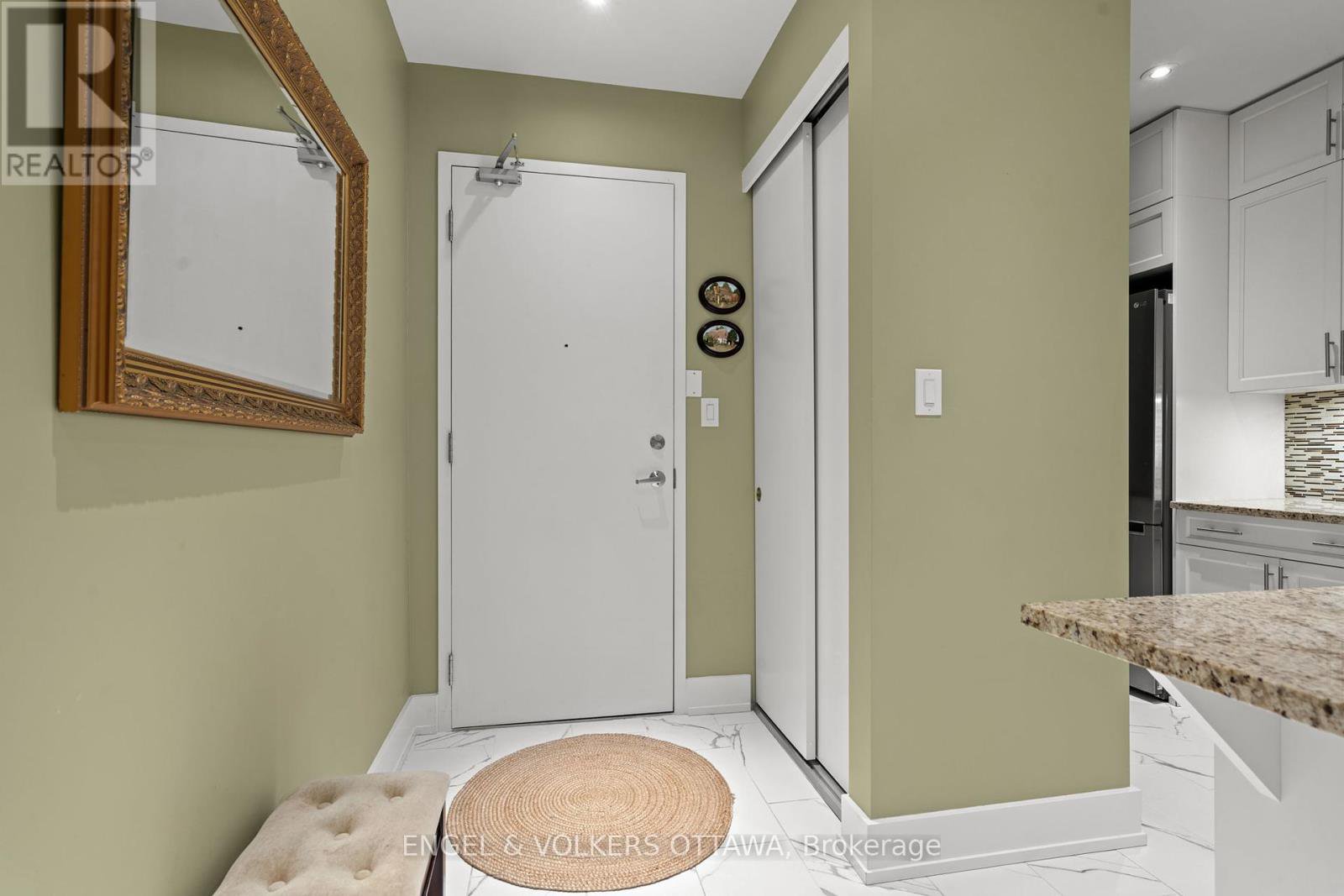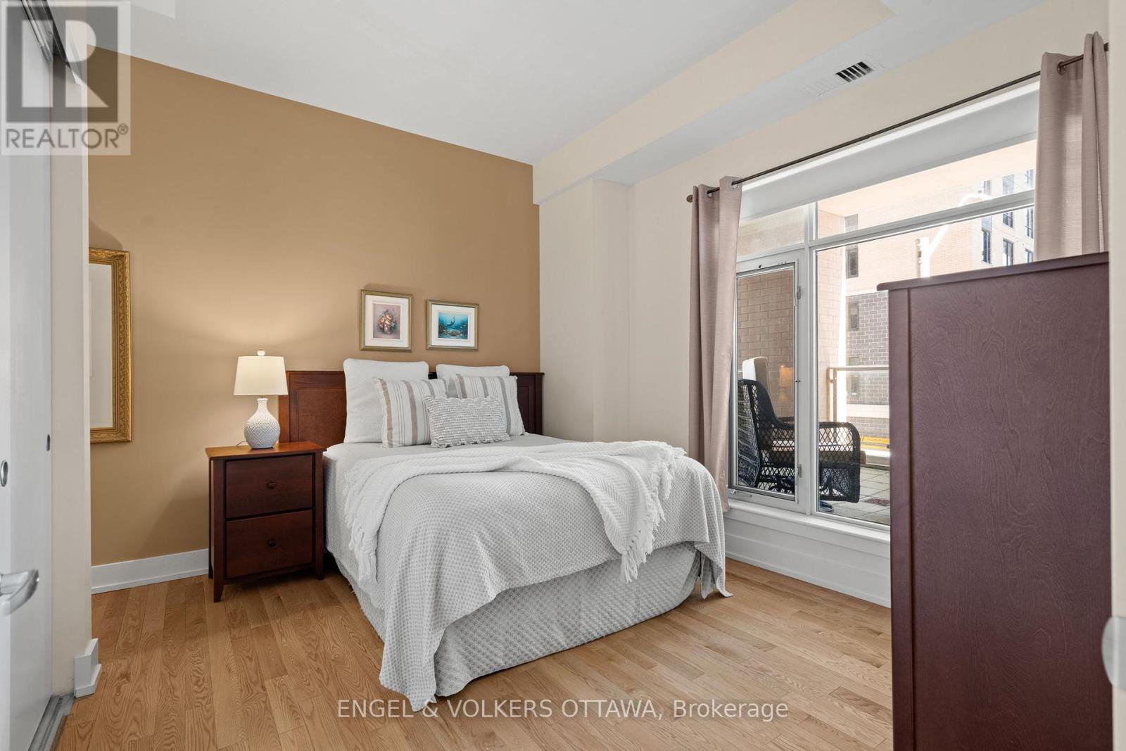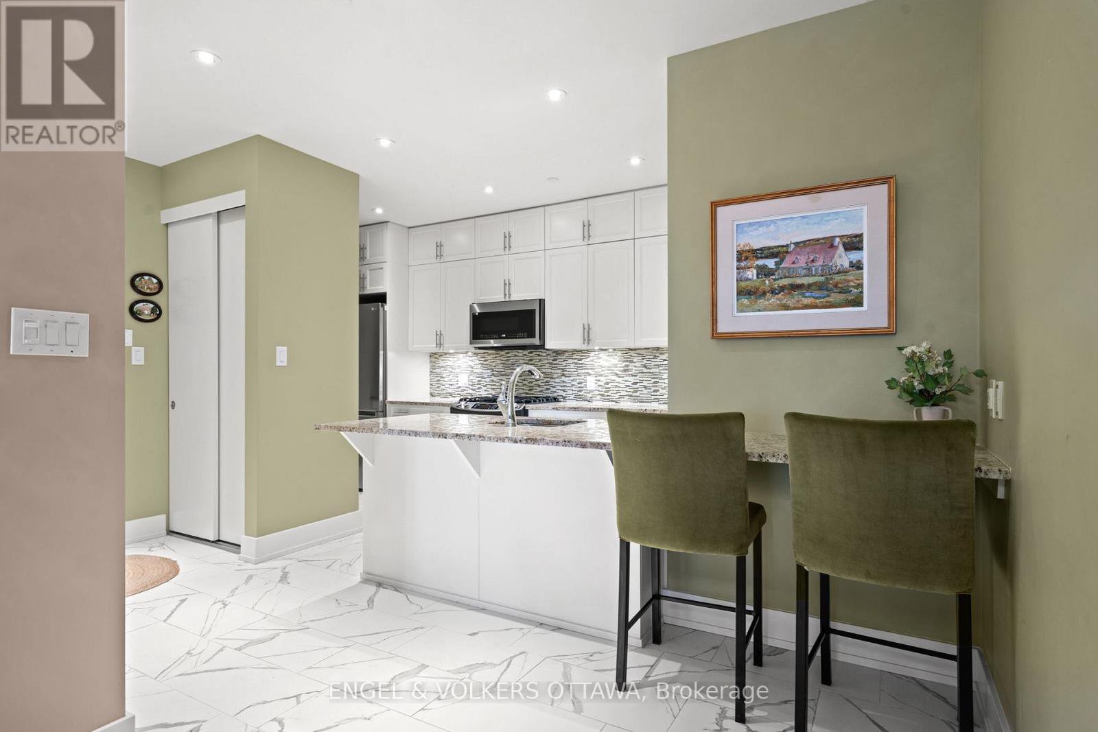 Experience upscale urban living in one of the largest suites in the building. This stunning 2-bedroom plus den, 2-bath residence combines generous proportions with 10-foot ceilings, two private balconies, and a coveted second-floor location offering convenient street access. Inside, the open-concept layout features a spacious kitchen with upgraded cabinetry, granite counters, stainless steel appliances, and a breakfast bar perfect for casual dining. The living and dining areas easily accommodate full-size furnishings, while the den offers an ideal home office or reading nook. Beautiful hardwood flooring flows throughout, complemented by upgraded tile in the foyer. The bedrooms are thoughtfully separated for privacy, and both bathrooms showcase classic contemporary finishes. Offering two balconies, the larger balcony featuring a gas line for BBQ. Located in one of Ottawa's most sought-after urban neighbourhoods, steps from Dows Lake and the Rideau Canal, residents enjoy easy access to scenic walking and cycling paths, paddle and skate rentals, and year-round recreation. The Civic Hospital and Carleton University are minutes away, making this an ideal location for professionals, medical staff, or academics seeking convenience without compromise. Stroll to Preston Street, the heart of Little Italy, and experience some of Ottawa's best restaurants, cafés, and boutiques. The O-Train station nearby ensures quick access to downtown, Lansdowne, and beyond, while nearby green spaces and the Experimental Farm provide a serene contrast to urban life. A rare opportunity to enjoy refined condo living with exceptional walkability and modern convenience.