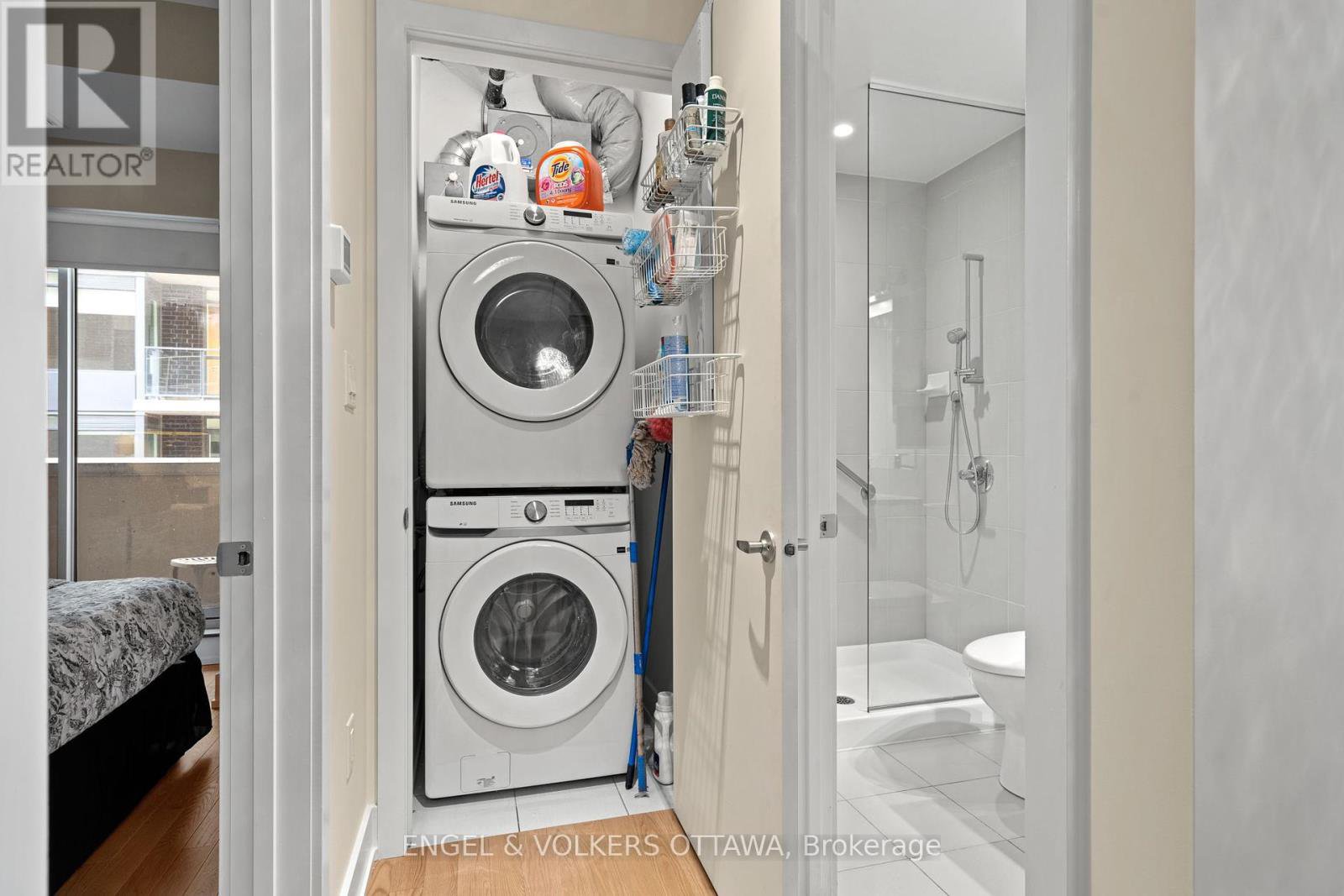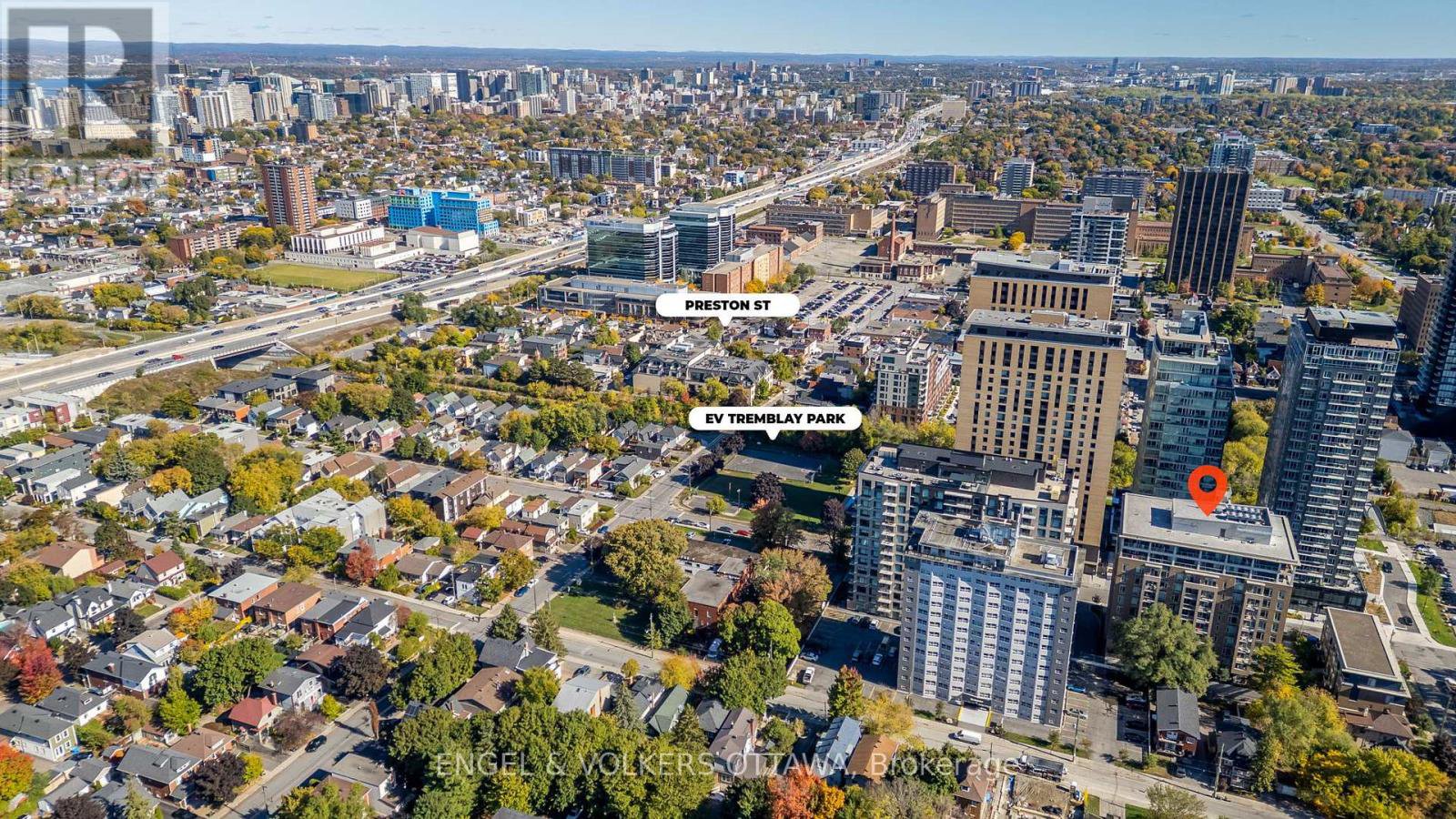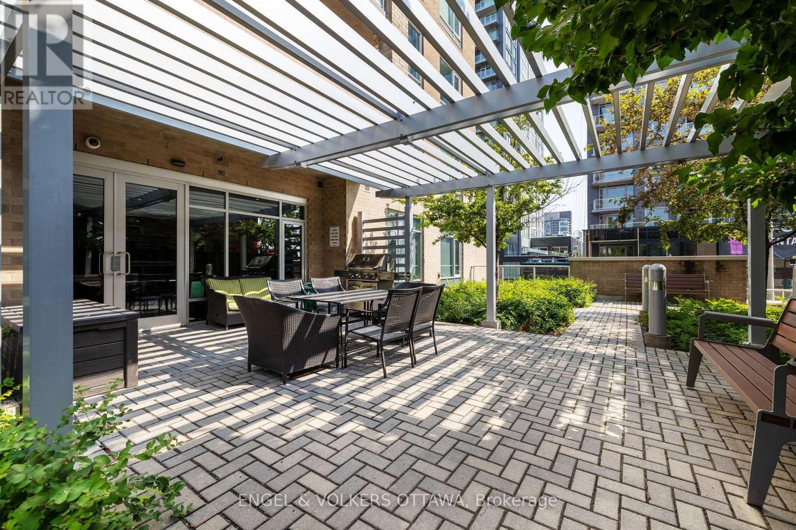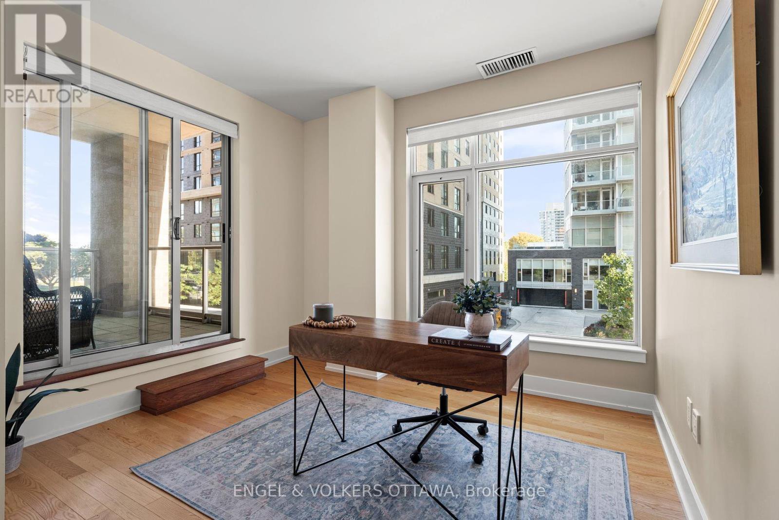 Experience upscale urban living in one of the largest suites in the building. This stunning 2-bedroom plus den, 2-bath residence combines generous proportions with 10-foot ceilings, two private balconies, and a coveted second-floor location offering convenient street access. Inside, the open-concept layout features a spacious kitchen with upgraded cabinetry, granite counters, stainless steel appliances, and a breakfast bar perfect for casual dining. The living and dining areas easily accommodate full-size furnishings, while the den offers an ideal home office or reading nook. Beautiful hardwood flooring flows throughout, complemented by upgraded tile in the foyer. The bedrooms are thoughtfully separated for privacy, and both bathrooms showcase classic contemporary finishes. Offering two balconies, the larger balcony featuring a gas line for BBQ. Located in one of Ottawa's most sought-after urban neighbourhoods, steps from Dows Lake and the Rideau Canal, residents enjoy easy access to scenic walking and cycling paths, paddle and skate rentals, and year-round recreation. The Civic Hospital and Carleton University are minutes away, making this an ideal location for professionals, medical staff, or academics seeking convenience without compromise. Stroll to Preston Street, the heart of Little Italy, and experience some of Ottawa's best restaurants, cafés, and boutiques. The O-Train station nearby ensures quick access to downtown, Lansdowne, and beyond, while nearby green spaces and the Experimental Farm provide a serene contrast to urban life. A rare opportunity to enjoy refined condo living with exceptional walkability and modern convenience.