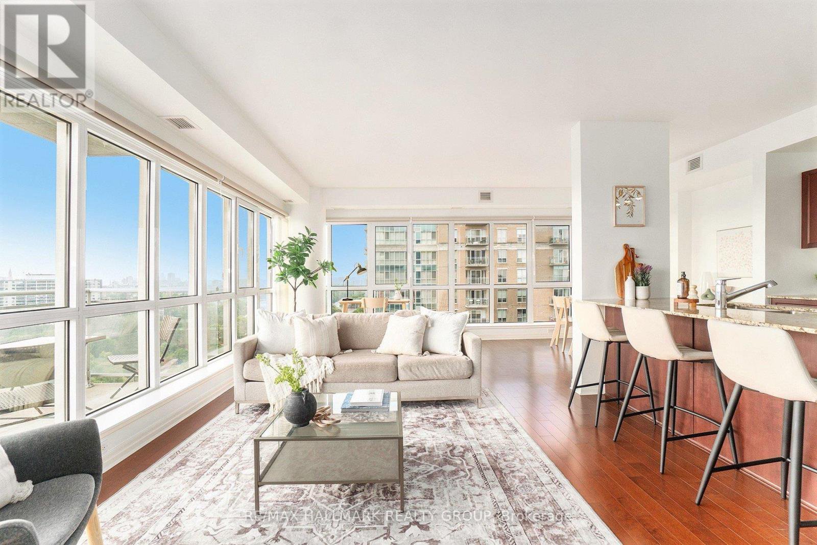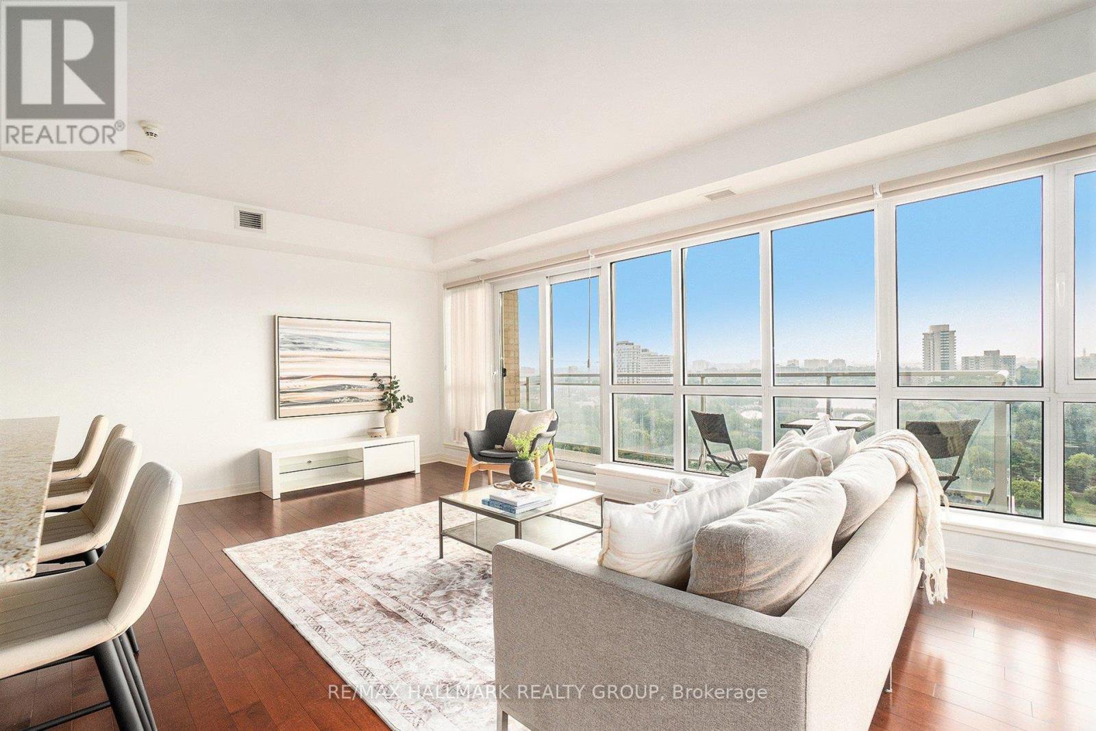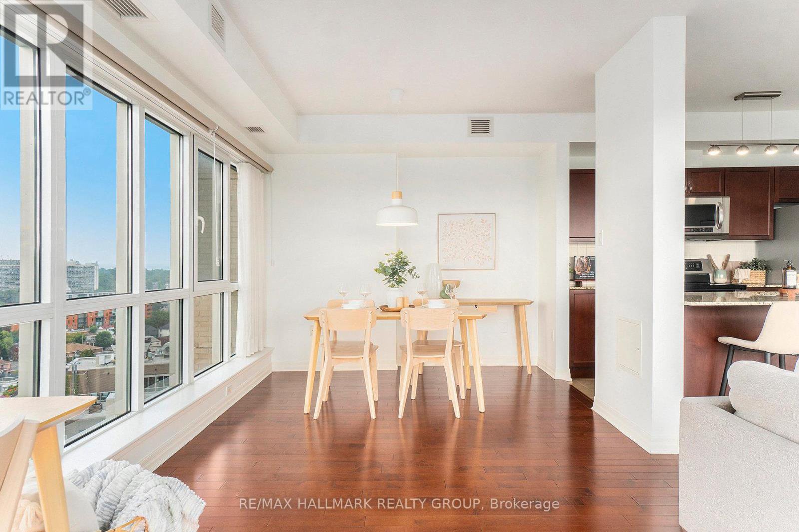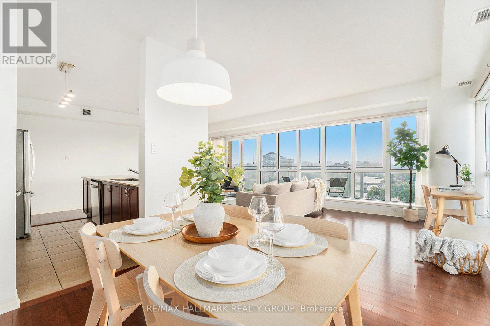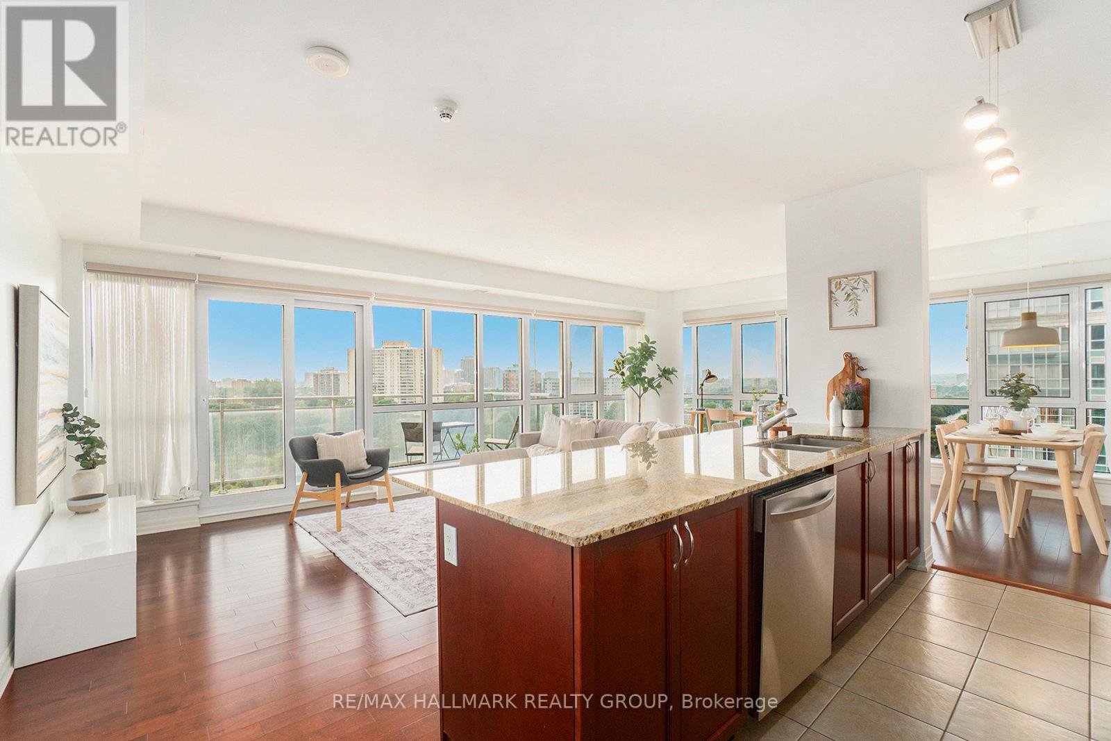 OPEN HOUSE - SUNDAY, OCTOBER 19th, 2 to 4pm. Welcome to 1602-90 Landry Street - a bright and spacious corner-unit condo boasting panoramic views of the Rideau River and downtown Ottawa. This 2-bedroom, 2-bathroom suite offers 1,185 sq ft (per MPAC) of thoughtfully designed living space with hardwood and tile flooring throughout. The open-concept kitchen features granite countertops, stainless steel appliances, and a peninsula perfect for casual dining or entertaining. Floor-to-ceiling windows flood the living/dining area with natural light, while the large balcony invites you to enjoy stunning city and river views. The primary bedroom includes a walk-in closet and a private ensuite, while the second bedroom is served by a full bathroom. Added conveniences include in-unit laundry, underground parking with a Level 2 EV charger, and a storage locker. Enjoy access to premium amenities including an indoor pool, fitness center, and recreation room. Ideally located in a walkable, amenity-rich neighborhood - just 400m to Metro, with Beechwood/MacKay and Vanier/Meilleur bus stops nearby. Kingsview Park and Ashbury College (1 km) add to the appeal of this exceptional location. Experience a perfect blend of comfort, lifestyle, and convenience in this sought-after Ottawa community. A rare opportunity not to be missed.
