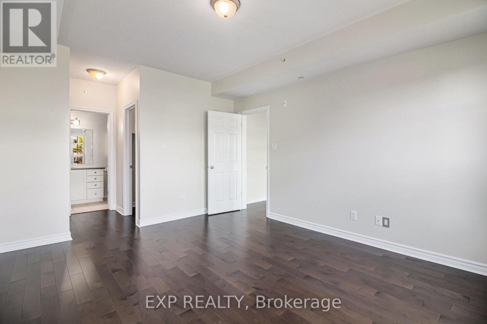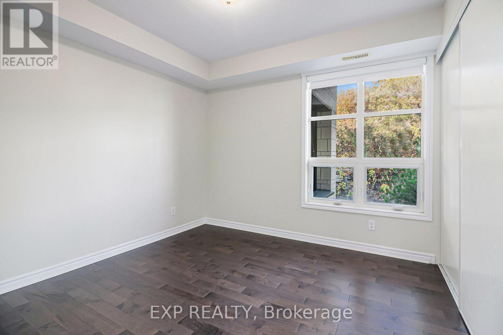Experience premium single-level living in sought-after Quarry Glen! This turnkey 2 bedroom + den, 2 bath condo (with 2 parking spots!) combines style, comfort, and convenience in an unbeatable location and view - just a 3-minute drive to the O-Train station and offering quick access to Highway 174. The open-concept layout features a bright, welcoming living area that extends to a covered private balcony, perfect for relaxing outdoors. The kitchen boasts quartz countertops, backsplash, ample cabinetry, stainless steel appliances and an island with breakfast bar - ideal for both everyday living and entertaining. The spacious primary bedroom includes a walk-in closet and a 3 pc ensuite. A second bedroom and a versatile den provide flexible space for guests or a home office, complemented by a 4pc bathroom. Additional highlights include in-suite laundry, two parking spaces (1 in shared garage and 1 surfaced) and hardwood and ceramic flooring throughout - no carpet! Added bonus of an exclusive storage space in shared garage. Located in a building with elevator access, this condo offers easy maintenance free living. Enjoy nearby walking and cycling trails, parks, and all major amenities - Place d'Orléans Mall, Shenkman Arts Centre, restaurants, transit and more. Immediate occupancy available - move in and enjoy urban convenience!