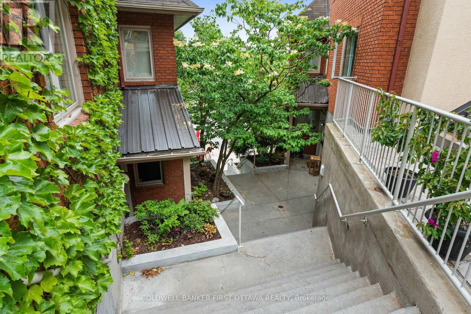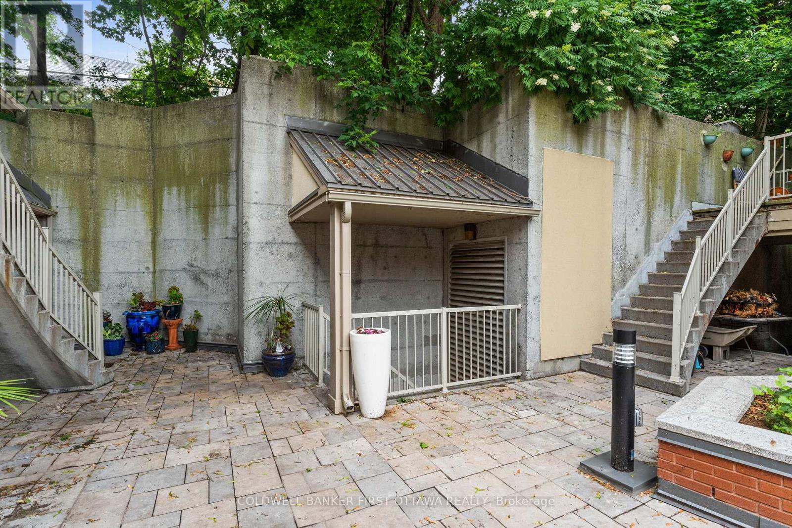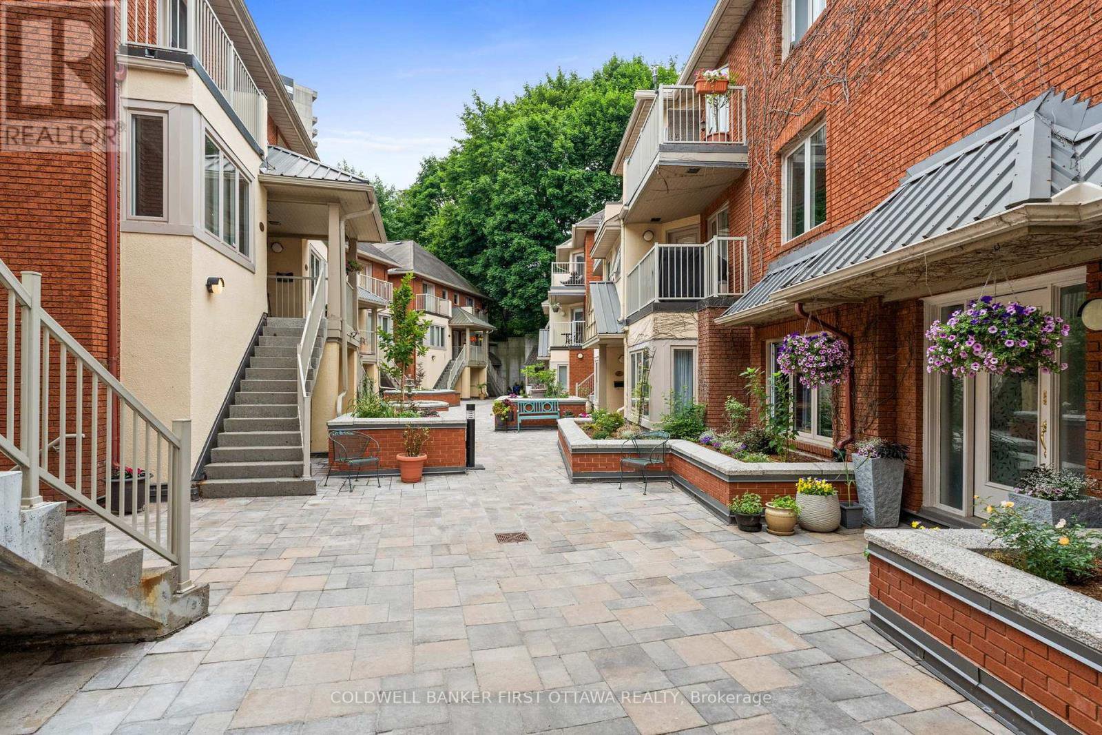 Welcome to The River Villa on Fountain! This stylish & spacious 1,401 sq ft 2 lvl condo is nestled in a Mediterranean-inspired courtyard, just steps from Rideau River. This unique, upper lvl unit offers privacy & charm w/ a semi-private entrance shared by only one neighbour & access to the beautifully updated (2024) communal courtyard, feat. new planters, upgraded drainage membrane, garage ceiling & custom fountain (on order). Ideal for outdoor enthusiasts, enjoy direct river access via the courtyard, perfect for kayaking, paddle boarding or relaxing by the water. Walk, run or cycle the nearby trails that connect to paths throughout the city. Inside, this well-maintained condo unit has been professionally painted (2025) & updated w/ luxury vinyl plank flooring on both levels (2020), LED lighting (2025) & front-entry privacy film (2025). The tiled foyer leads to a 2pc powder room & opens into a massive living/dining area w/ wood-burning fireplace, oversized windows overlooking trees/shrubs & no rear neighbours. The bright kitchen offers laminate counters, white upper/lower cabinets & access to a main lvl patio w/ room for seating and enjoying morning coffee & evening cocktails. Appliances incl.: Jenn-Air dishwasher, Whirlpool stove, GE fridge. A closet w/ wooden doors houses the Broan furnace & Rheem HWT. Second level, the spacious primary bed boasts 2 double closets, a 4pc ensuite w/ dual vanity, whirlpool tub & private toilet cubby, plus a walkout to a private deck w/ tranquil courtyard & river views. The 2nd bed w/ double closet is perfect for guests or a home office. The 3pc main bath incl. a tile surround shower & pedestal sink. Whirlpool stacked washer/dryer in hall w/ nearby linen closet for convenience. Walkable to UOttawa, ByWard Market, RCMP, Global Affairs, Strathcona Park, Rideau Sports Centre, Farm Boy, Metro, Loblaws, Shawarma Palace & more. Right on the Rideau River, a rare find offering character, lifestyle & location. A true Gem in heart of Ottawa!