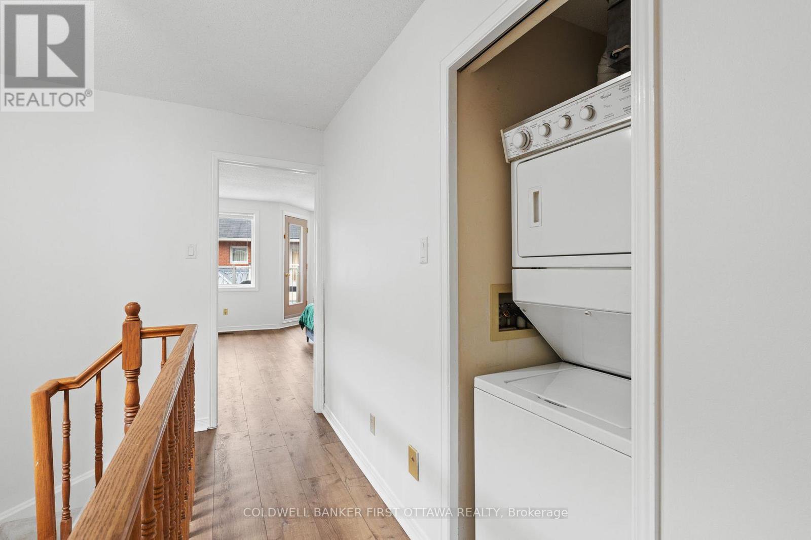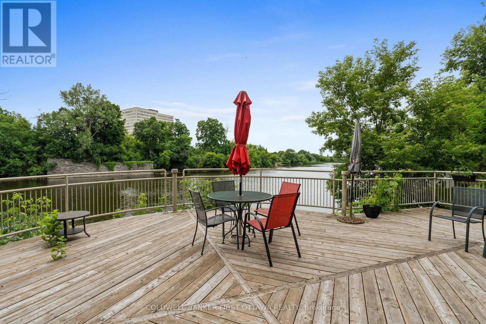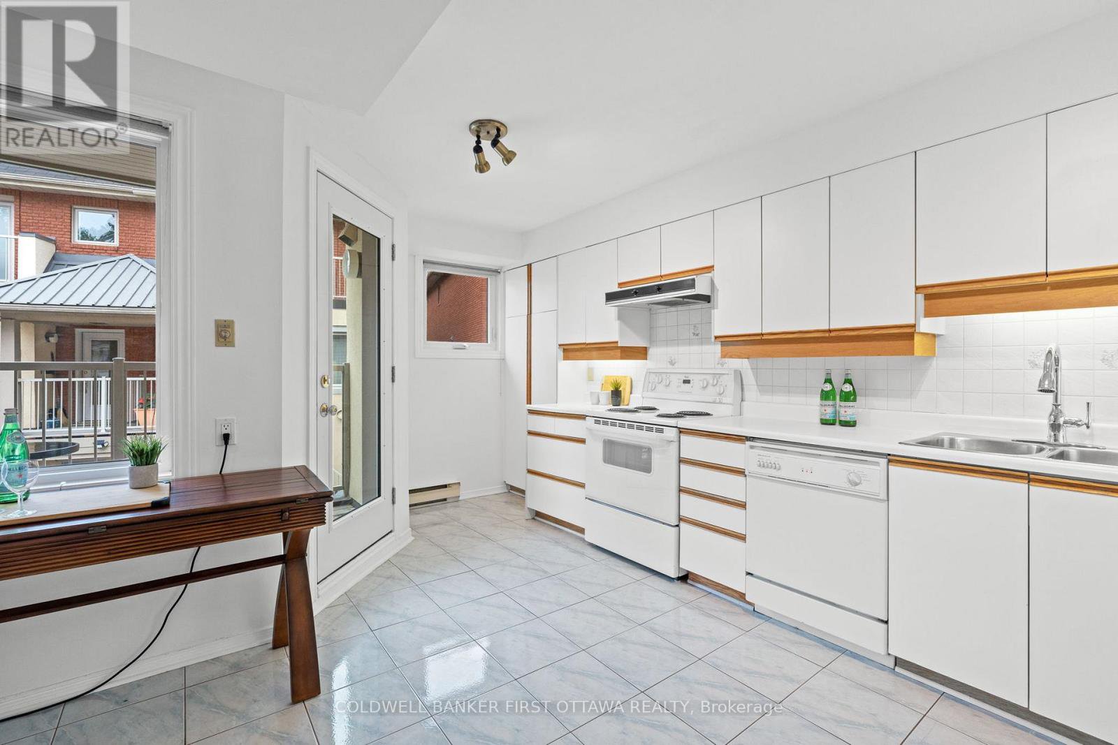 Welcome to The River Villa on Fountain! This stylish & spacious 1,401 sq ft 2 lvl condo is nestled in a Mediterranean-inspired courtyard, just steps from Rideau River. This unique, upper lvl unit offers privacy & charm w/ a semi-private entrance shared by only one neighbour & access to the beautifully updated (2024) communal courtyard, feat. new planters, upgraded drainage membrane, garage ceiling & custom fountain (on order). Ideal for outdoor enthusiasts, enjoy direct river access via the courtyard, perfect for kayaking, paddle boarding or relaxing by the water. Walk, run or cycle the nearby trails that connect to paths throughout the city. Inside, this well-maintained condo unit has been professionally painted (2025) & updated w/ luxury vinyl plank flooring on both levels (2020), LED lighting (2025) & front-entry privacy film (2025). The tiled foyer leads to a 2pc powder room & opens into a massive living/dining area w/ wood-burning fireplace, oversized windows overlooking trees/shrubs & no rear neighbours. The bright kitchen offers laminate counters, white upper/lower cabinets & access to a main lvl patio w/ room for seating and enjoying morning coffee & evening cocktails. Appliances incl.: Jenn-Air dishwasher, Whirlpool stove, GE fridge. A closet w/ wooden doors houses the Broan furnace & Rheem HWT. Second level, the spacious primary bed boasts 2 double closets, a 4pc ensuite w/ dual vanity, whirlpool tub & private toilet cubby, plus a walkout to a private deck w/ tranquil courtyard & river views. The 2nd bed w/ double closet is perfect for guests or a home office. The 3pc main bath incl. a tile surround shower & pedestal sink. Whirlpool stacked washer/dryer in hall w/ nearby linen closet for convenience. Walkable to UOttawa, ByWard Market, RCMP, Global Affairs, Strathcona Park, Rideau Sports Centre, Farm Boy, Metro, Loblaws, Shawarma Palace & more. Right on the Rideau River, a rare find offering character, lifestyle & location. A true Gem in heart of Ottawa!
