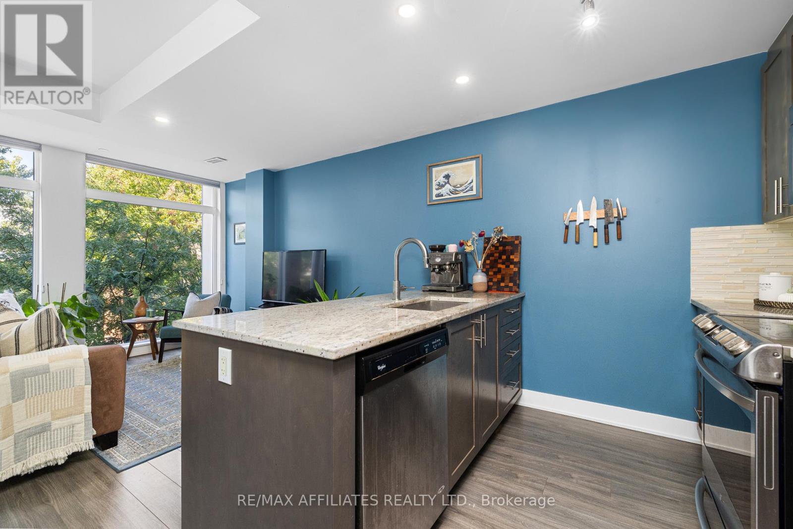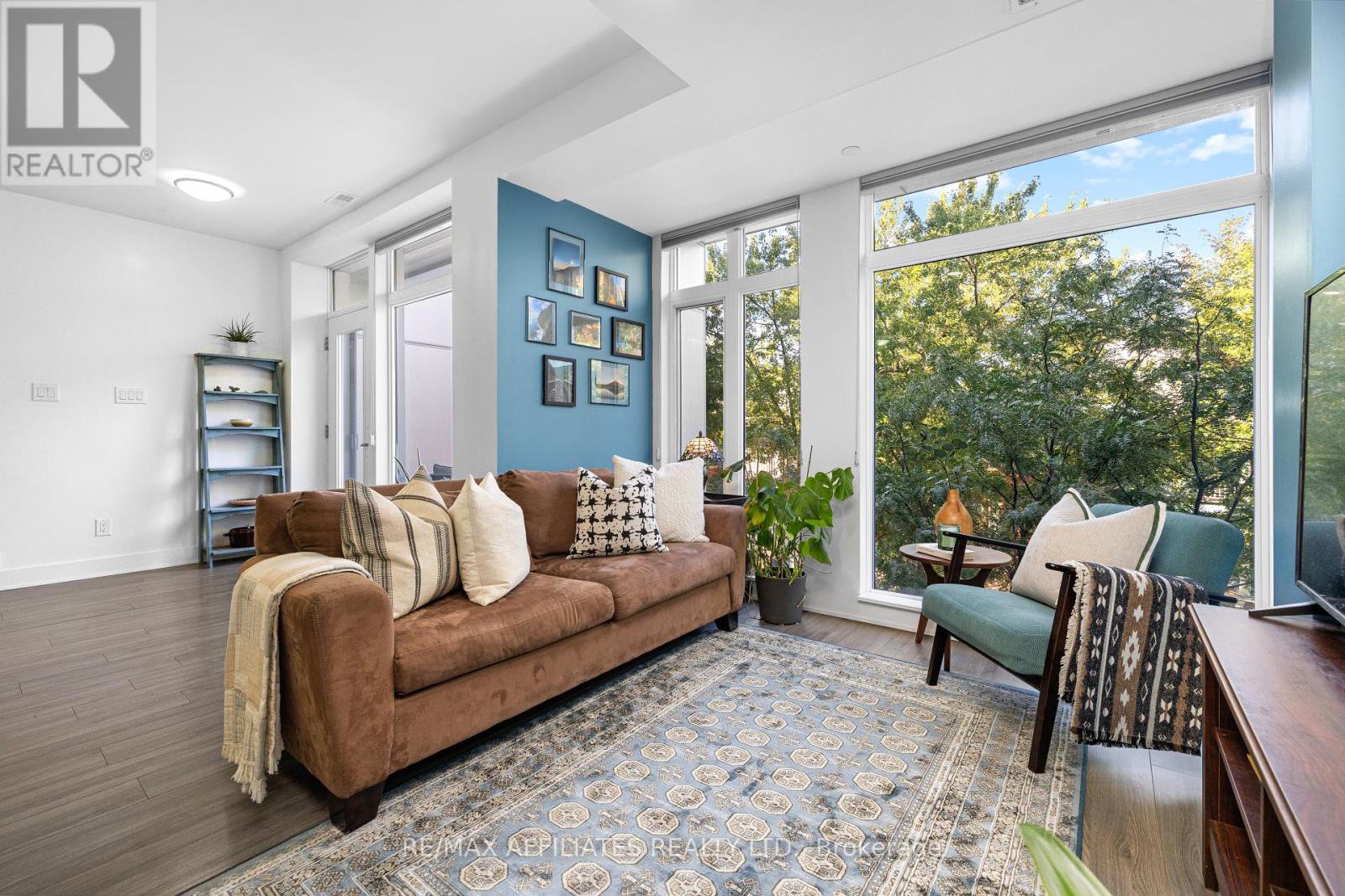 Welcome to 104 Holmwood Avenue, where urban energy meets everyday ease in the heart of The Glebe. Tucked quietly behind the treetops and backing directly onto Lansdowne Park, this rarely offered, light-filled upper-unit townhome offers a front-row seat to one of Ottawa's most iconic neighbourhoods - vibrant, walkable, and endlessly connected.Inside, discover two bedrooms, two and a half bathrooms, and a bright open-concept layout designed for modern living. The chef's kitchen, floor-to-ceiling windows, and spacious balcony create a seamless flow of light and air, framed by lush, seasonal greenery that brings privacy and beauty year-round.Step outside and experience the Glebe lifestyle - stroll the Rideau Canal, enjoy Lansdowne Park's concerts, farmers markets, and community events, or explore the area's award-winning restaurants, boutiques, and cafés just moments from your door. This walker's paradise offers unmatched convenience with grocery stores, schools, daycares, fitness centres, pharmacies, and medical clinics all nearby. Bike paths connect you across the city, while quick transit options make getting downtown, to the airport, or anywhere beyond effortless. Additional features include underground parking with EV infrastructure, secure bike storage, and low condo fees that cover snow removal and landscaping - so you can enjoy a truly low-maintenance lifestyle. Perfectly positioned for the future, the home sits near the site of the new Ottawa Hospital Civic Campus, with Old Ottawa South, Old Ottawa East, and Centretown all close by. This rare offering delivers the ultimate blend of comfort, convenience, and connection - in one of Ottawa's most beloved communities.