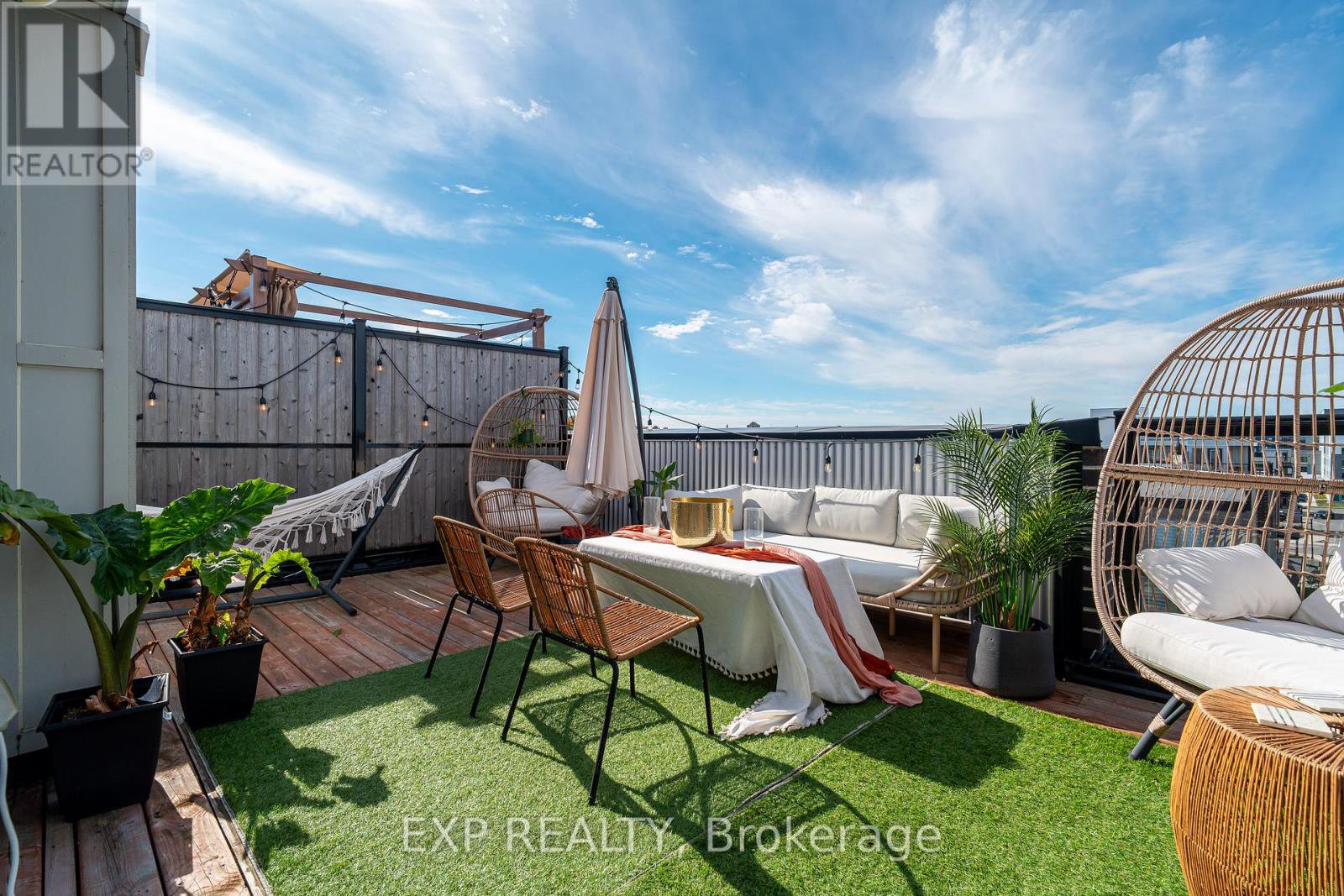 Welcome to your new happy place, a bright, modern 2019 2 bed, 2 bath upper-level corner unit in one of Ottawa's most vibrant communities. Steps from Parks, Nature Trails & Paths on Ottawa River, Montfort, CSE, CSIS, CMHC, LRT, Costco, plus just minutes to prestigious private schools: Ashbury College and Elmwood School. With over $60K in upgrades, this home features smooth ceilings, custom lighting, upgraded luxury vinyl plank flooring, and a sun-filled open layout. The kitchen shines with quartz counters, pristine white cabinetry, upgraded charcoal matching appliances, and a spacious eat-at island. Upstairs, enjoy a private balcony off the primary bedroom, a versatile second bedroom with TONS of light (perfect as gym, studio, office or warm bedroom), and a sleek full bath with his and hers sinks set in a quartz counter and complimentary gleaming tile work. Top it all off with your own private rooftop terrace that once you step into, the views of the skyline will make you fall in love. The terrace is ideal for BBQ socials (equipped with gas bbq hookup) , sun-soaked peaceful afternoons, or starry evenings. If you haven't been to Water Ridge Village, this will be your perfect intro. Common Element fees include: Building Insurance, Garbage Removal, General Maintenance and Repair, Landscape, Management Fee, Reserve Fund Allocation, Snow Removal