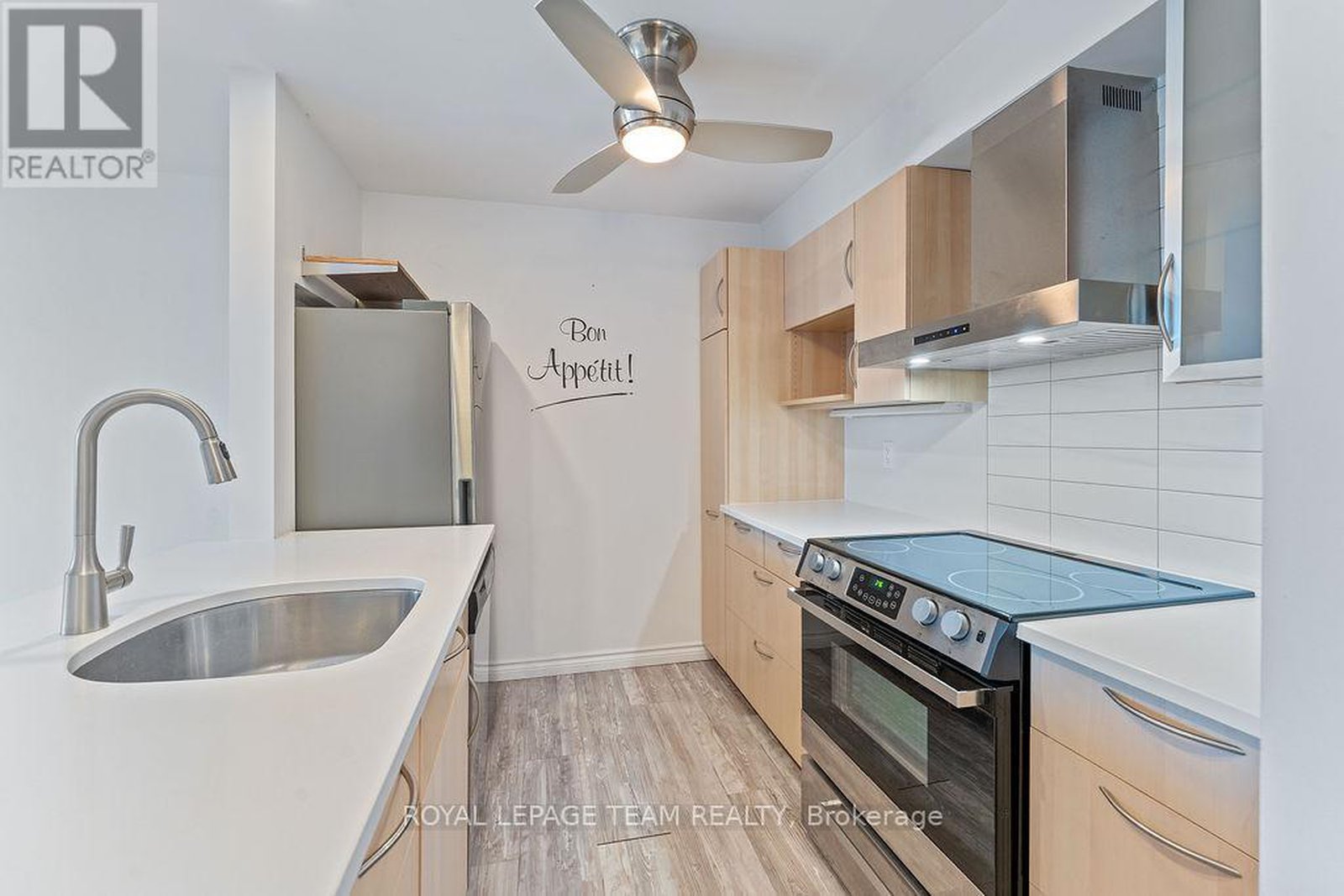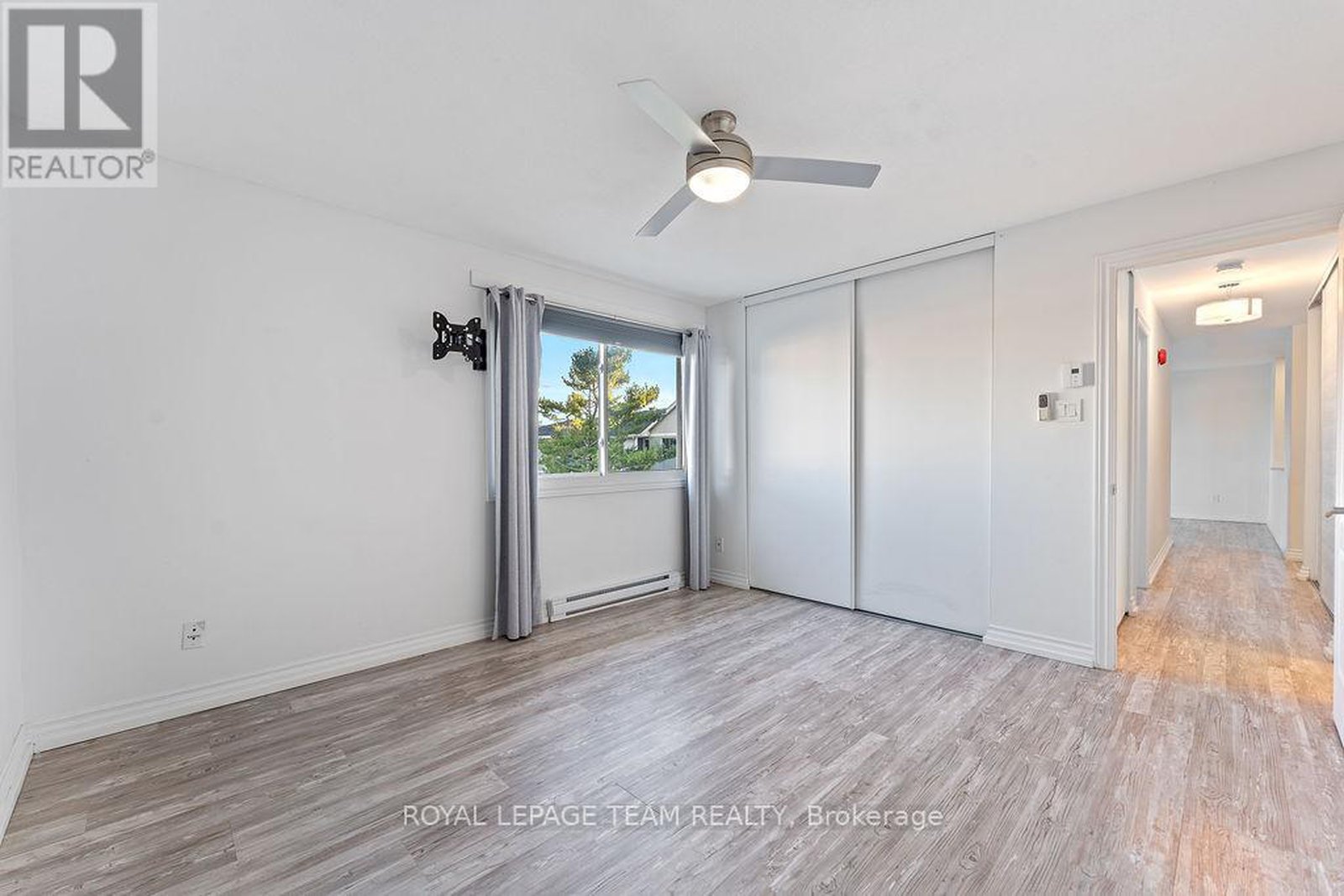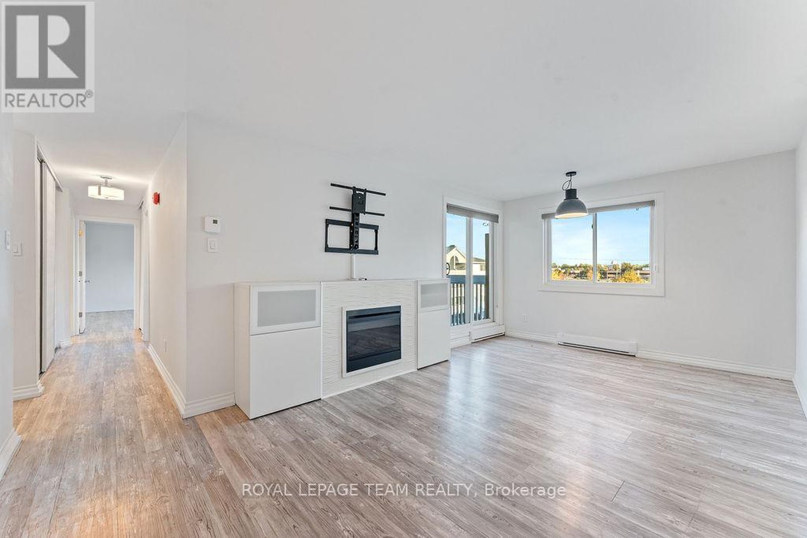 Stylish, sun-filled top-floor condo in quiet 4 storey building with elevator in Viewmount Woods! This beautifully updated unit offers the perfect combination of modern comfort and tranquillity. Enjoy a fully equipped custom galley-style kitchen with quartz countertops and smart storage, flowing seamlessly into a bright living and dining room combination featuring an electric fireplace. The unit includes two spacious bedrooms, a spa-inspired bathroom with heated tile floors, in-unit laundry, and luxury vinyl/tile flooring throughout. Step out onto the oversized balcony to take in unobstructed views of the scenic Nepean Creek trails. Additional features include one assigned parking spot and ample in-unit storage. Perfect for couples, professionals, or downsizers seeking comfort, convenience, and a peaceful setting. Located just steps from transit, shops, parks, and schools. Top-rated schools nearby include Merivale High School with the International Baccalaureate (IB) program and RCMP headquarters on Merivale Road. Immediate occupancy available. No pets and no smoking in the building, per condo rules.
