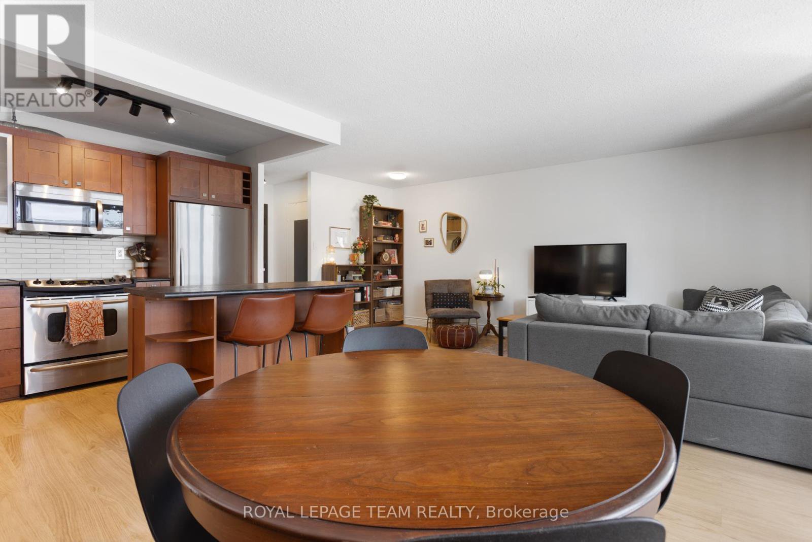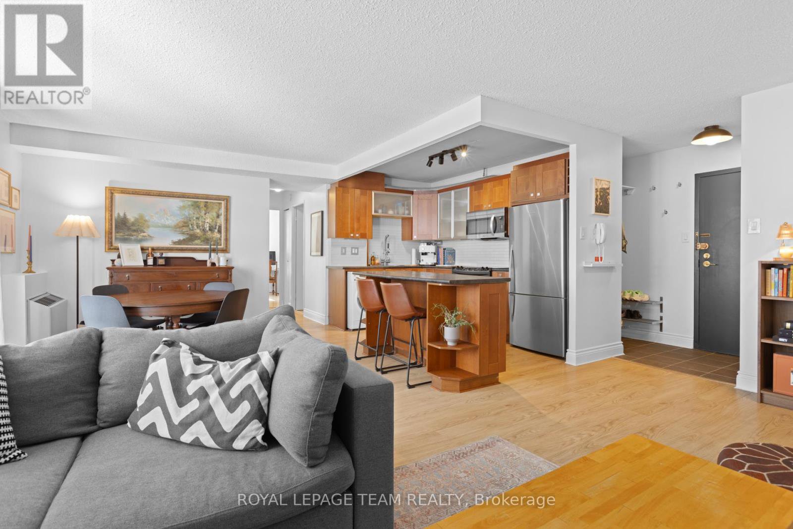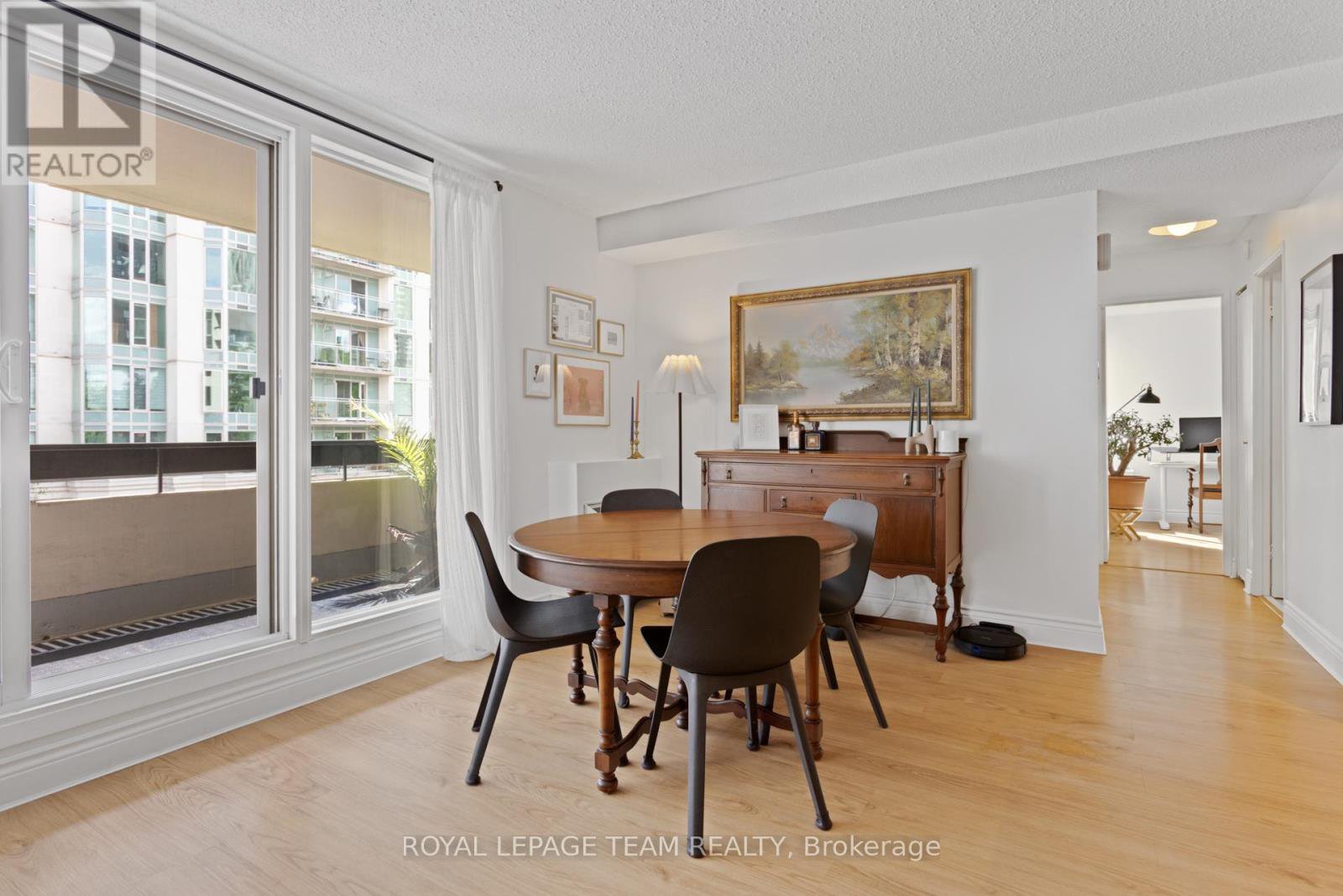 OPEN HOUSE TUES OCT 21st 4-6 PM. Nestled between Elgin Street and the Canal, this updated 2-bedroom, 1.5-bath home offers 818 sq ft of well-designed living space in Ottawa's desirable Golden Triangle. The open-concept kitchen, living, and dining area extends to a spacious south-facing balcony, perfect for relaxing or entertaining. The kitchen features stainless steel appliances, wood cabinetry, and a functional island. The primary bedroom includes a wall of closets and a 2-piece ensuite, while the second bedroom is ideal as an office, TV room, or guest space. The full bath (updated 2016) features a tub/shower with classic subway tile. Added convenience with in-unit large storage room-and a covered ground-level parking space. Condo fees include HEAT, HYDRO, and WATER, plus access to a range of amenities: exercise room, rec room, meeting room, sauna, visitor parking, and bike storage. Steps to restaurants, shops, entertainment, and just 650m to the LRT. Freshly painted with new baseboard heaters and light fixtures (2024). Status certificate available.